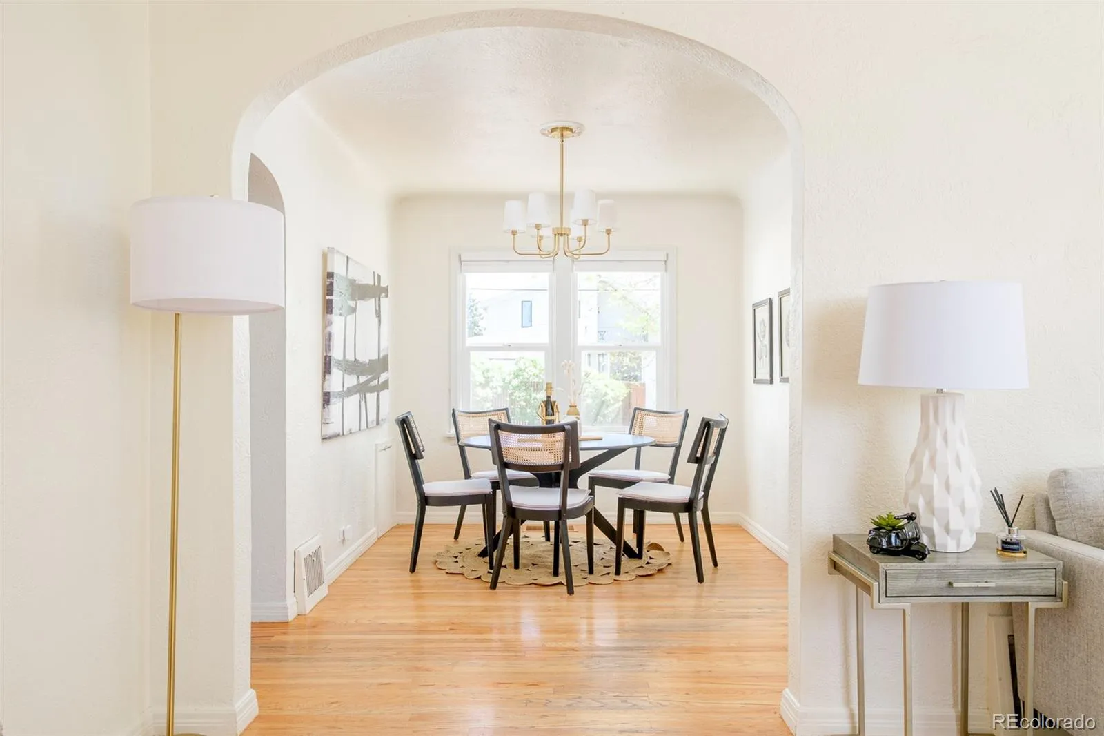 This beautifully refreshed Virginia Village residence offers a perfect balance of comfort, style and exceptional outdoor living. A welcoming exterior with new siding and paint introduces a light-filled interior, where a spacious living area flows through a graceful curved doorway into a dining room accented by a classic chandelier. The kitchen is both warm and functional, featuring wood cabinetry, granite countertops and stainless steel appliances. The home offers three bedrooms and two updated baths, including a serene primary suite with a dual vanity and walk-in shower. A finished basement adds valuable living space with a rec room and flexible layout. Significant upgrades include a new detached garage with its own subpanel, new HVAC system with two-stage heating and heat pump and a tankless water heater. Outdoors, the expansive yard is a true highlight, complete with mature trees, raised garden beds, xeriscaping, irrigation and a new fence — creating a beautifully curated retreat.