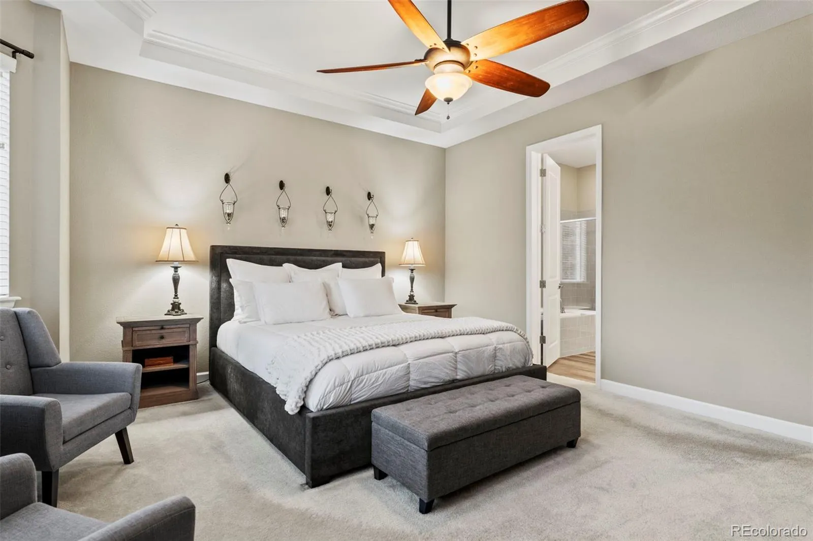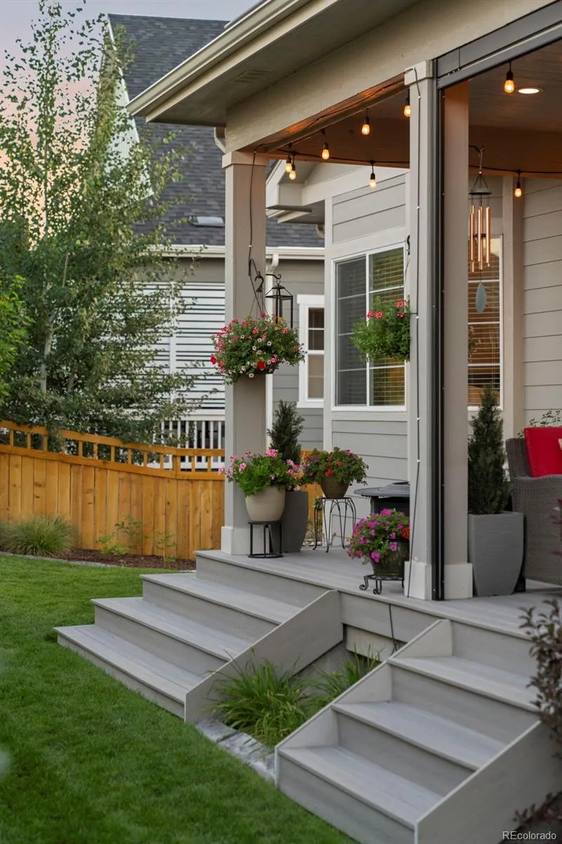 Welcome to your new home in The Meadows of Castle Rock, where thoughtful design, luxury upgrades, and exceptional outdoor living set this property apart. Motivated seller due to relocation, creating a unique opportunity for buyers seeking value in a highly desirable community. From the moment you arrive, the professionally landscaped yard creates curb appeal with custom mow curbing, low-voltage lighting, and a full SMART powered irrigation and drip system. Situated on a beautifully treed lot with 19 mature trees including Autumn Blaze Maples, Blue Spruce, and Ponderosa Pines, this home offers privacy and a park-like setting. Permanent Jellyfish exterior lighting enhances the home year-round, while a color-matched Tuff Shed adds additional storage. A connecting walkway leads seamlessly from the front yard to the backyard, enhancing both flow and functionality. Inside, a modern three-panel glass front door opens to an airy floor plan filled with natural light from a wall of windows overlooking the backyard. The gourmet kitchen features quartz countertops, high-end appliances, reverse osmosis, instant hot water, and ample prep space for entertaining. The finished basement offers a large recreation room, guest suite, and a versatile fifth bedroom or home gym, plus over 1,000 square feet of unfinished storage for future expansion or customization. Step outside to your private outdoor retreat with a custom kitchen, natural gas grill with rotisserie, side burner, and Primo XL smoker perfect for year-round entertaining and Colorado outdoor living. Additional features include epoxy-coated garage floors, tall ceilings, a Level 2 EV charger, and over $200,000 in professionally designed exterior upgrades. Hunter Douglas hardwired blinds with sheer and blackout options and exterior Sun Saver electric shades (weather- and wind-rated) are included. This is a move-in-ready, fully upgraded home offering luxury, privacy, and seamless indoor-outdoor living.