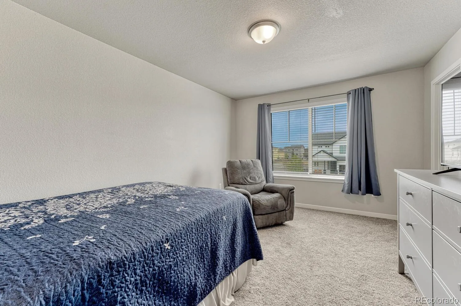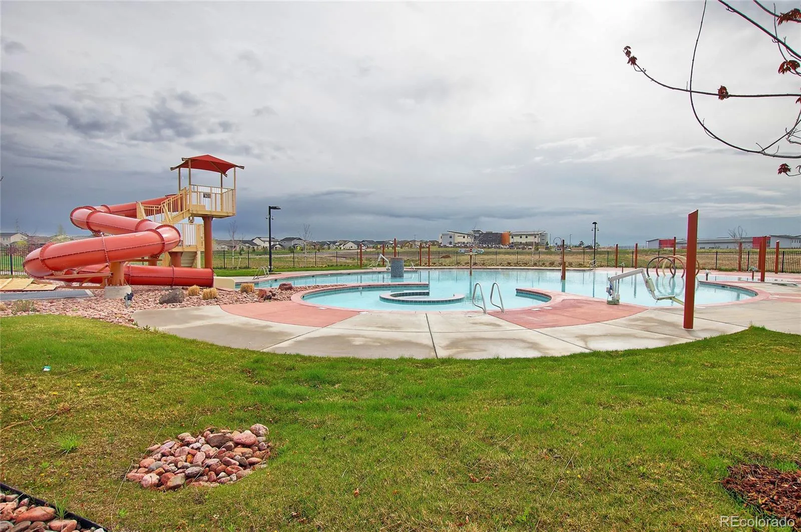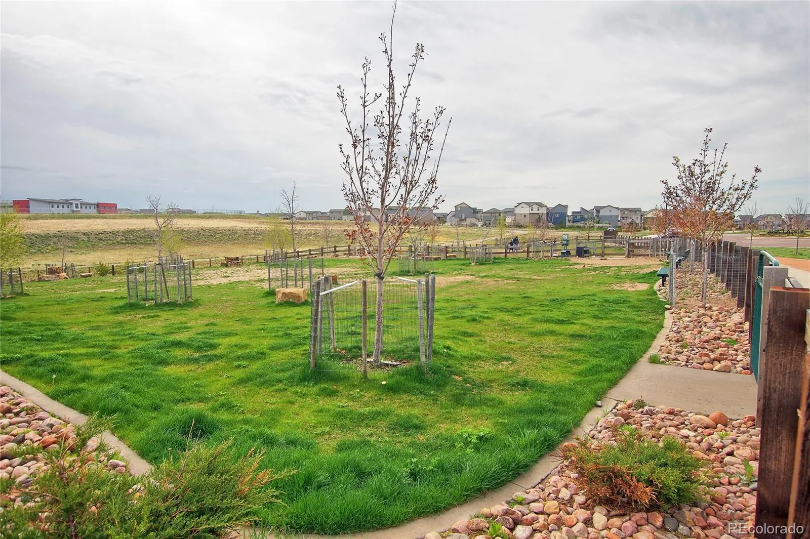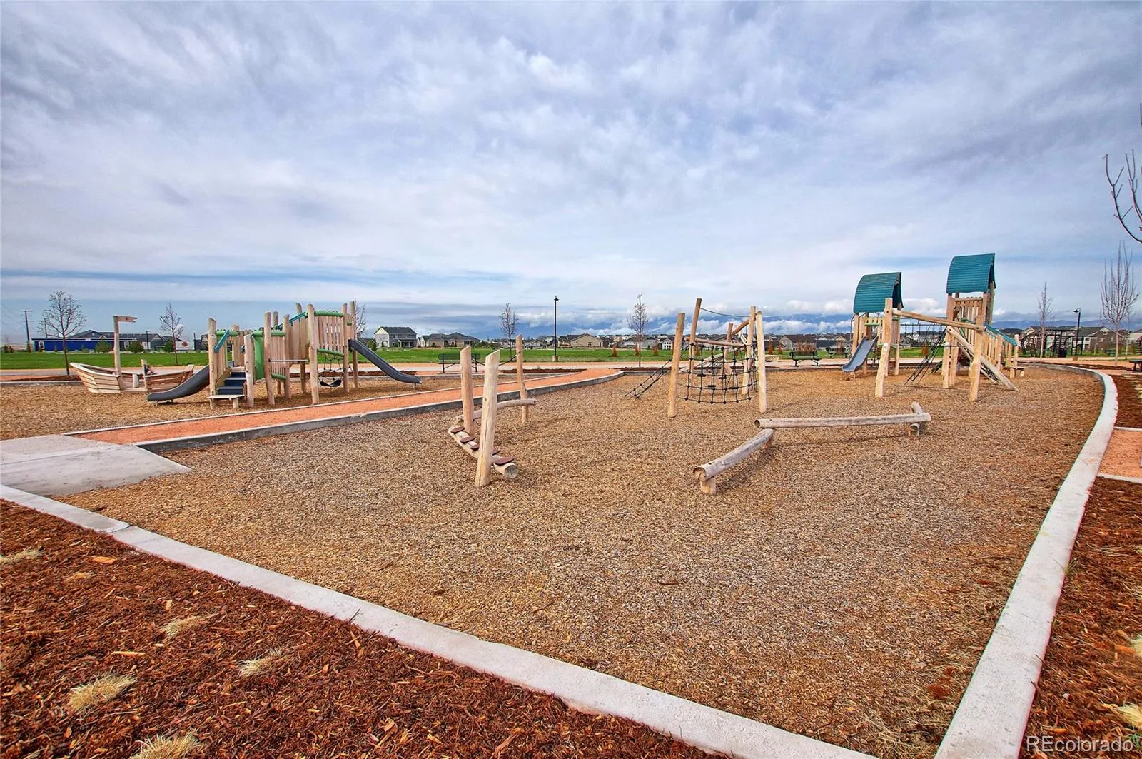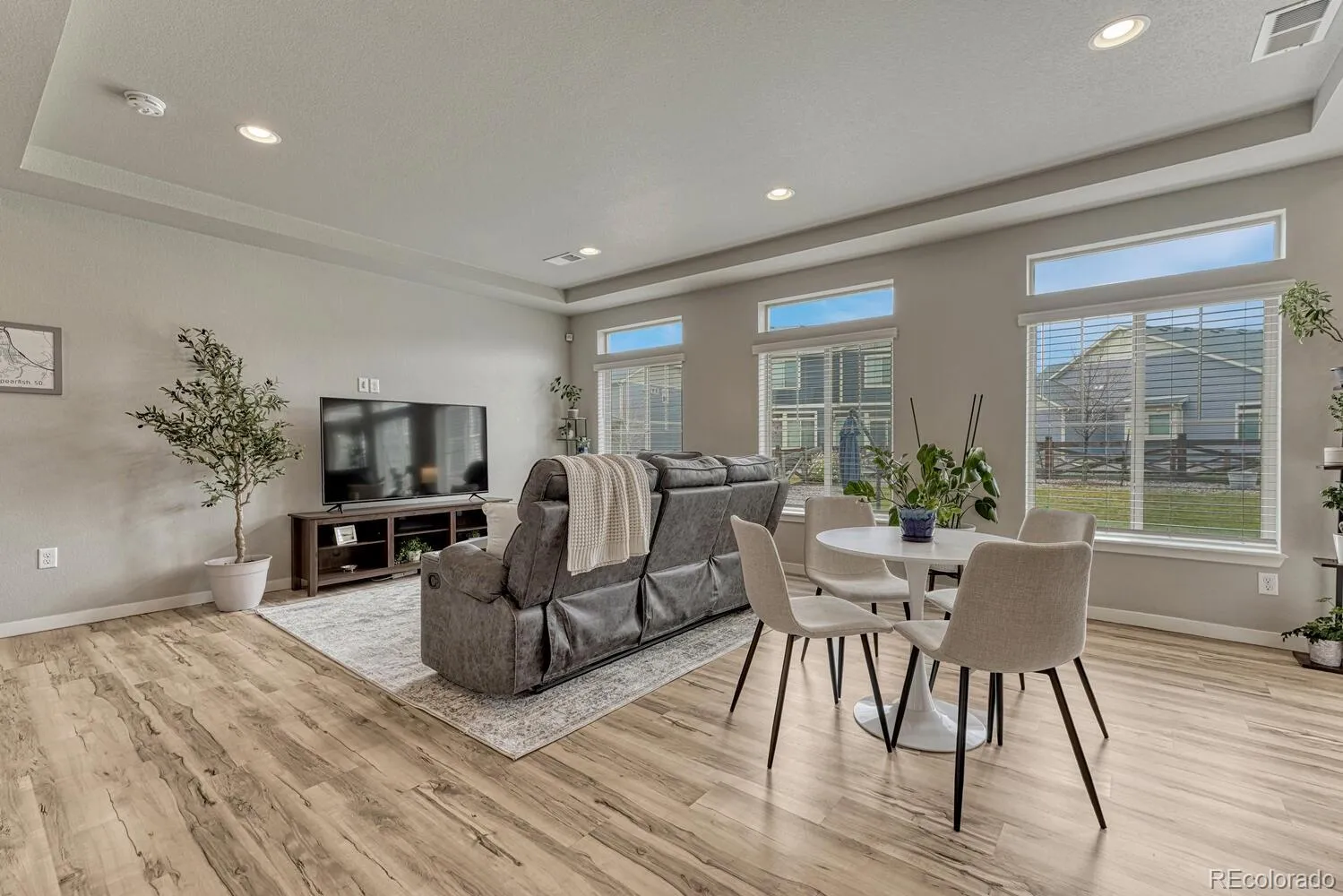 Beautifully maintained 3BR, 3BA, 2-story home offering 1,805 sf of comfortable living space & a 2-car attached garage. Located on a fenced 0.11-acre lot in the popular community of Banning Lewis Ranch. This home has great curb appeal, featuring clean, low-maintenance landscaping & an inviting covered front porch. Inside, enjoy a bright & open floor plan with beautiful LVP flooring throughout most of the main level & abundant windows that flood the home with natural light. All window blinds, curtains, & rods are included. Central air & heat provide year-round comfort. There is a convenient powder bathroom off the entry. The spacious Great Room has a wall of windows overlooking the backyard & flows seamlessly into the Dining Area & Kitchen, great for entertaining family & friends. The Dining Area is positioned adjacent to the Kitchen for easy serving & cleanup. The Island Kitchen is a delight for any home chef, offering a pantry, breakfast bar, pendant lighting, wood cabinetry, & attractive granite countertops. Stainless steel appliances incl a gas range oven, built-in microwave, dishwasher, & side-by-side refrigerator. The upper level hosts a Laundry Room with a window, 3 carpeted BRs, & 2BAs. The expansive Primary Suite serves as a private retreat with space for a sitting or desk area, a walk-in closet, & ensuite bathroom featuring an extended dual-sink vanity, mirror, & an enclosed tiled shower. 2 addtl BRs share a full hall bathroom with a vanity, mirror, & tiled tub/shower. Step outside to enjoy the fenced backyard, complete with a composite patio perfect for outdoor dining & relaxation. A generous stretch of green grass is surrounded by xeriscaped planting beds, offering plenty of space for kids & pets to play. Living in Banning Lewis Ranch means enjoying community parks, trails, & a pool designed to complement an active lifestyle. With nearby shopping, dining, & entertainment options, this home offers the perfect balance of comfort, convenience, & community.