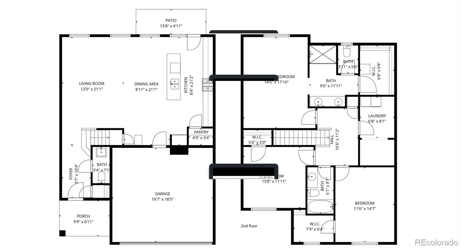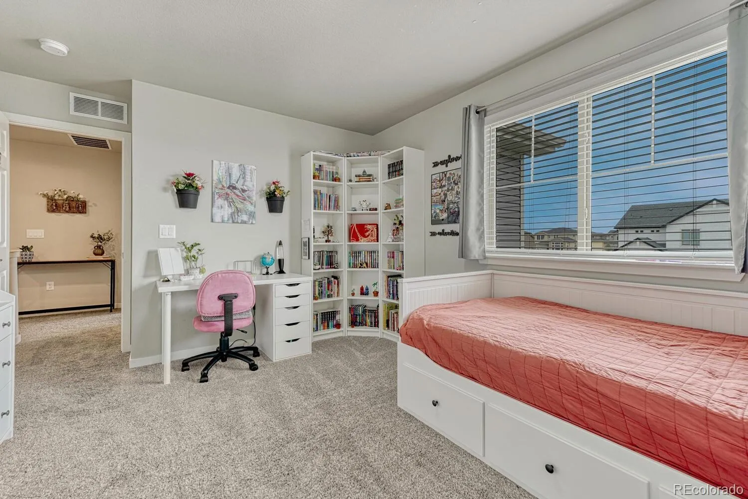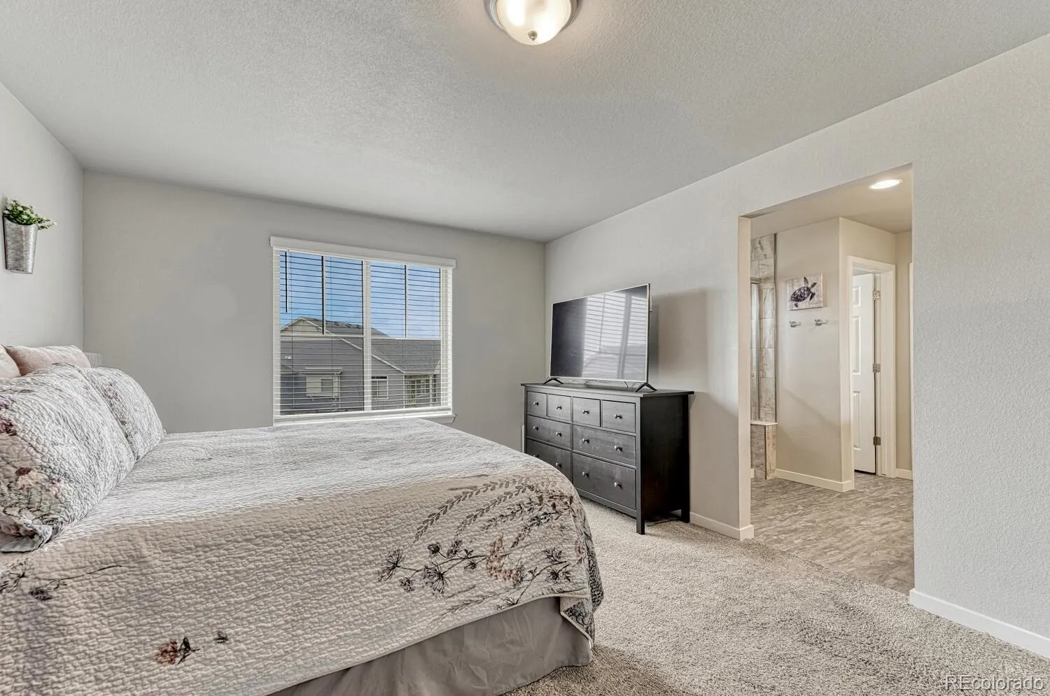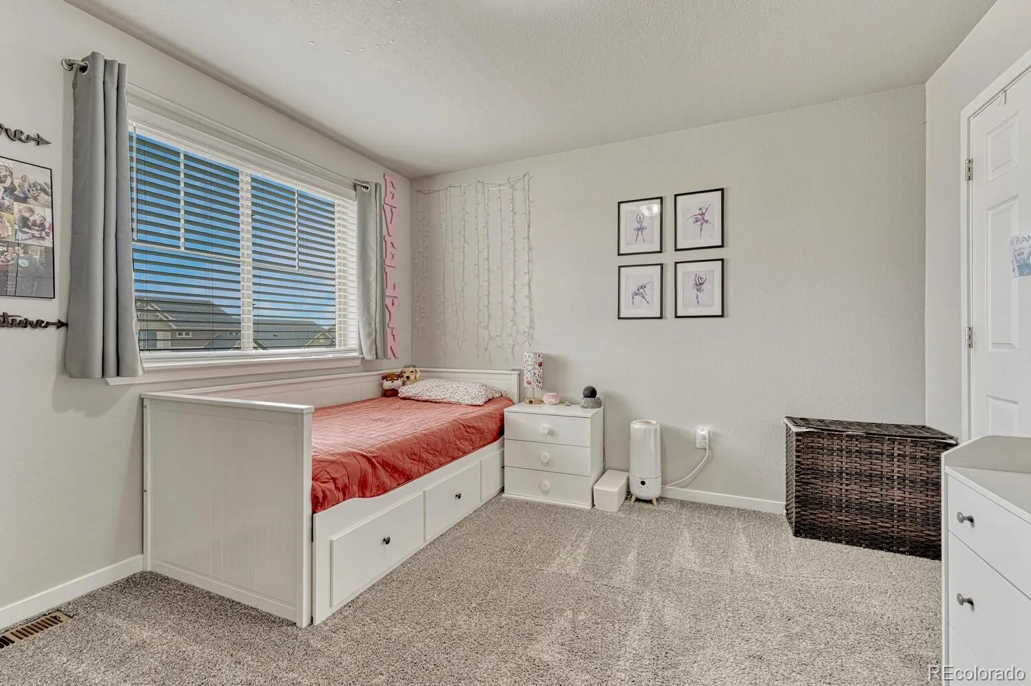 Beautifully maintained 3BR, 3BA, 2-story home offering 1,805 sf of comfortable living space & a 2-car attached garage. Located on a fenced 0.11-acre lot in the popular community of Banning Lewis Ranch. This home has great curb appeal, featuring clean, low-maintenance landscaping & an inviting covered front porch. Inside, enjoy a bright & open floor plan with beautiful LVP flooring throughout most of the main level & abundant windows that flood the home with natural light. All window blinds, curtains, & rods are included. Central air & heat provide year-round comfort. There is a convenient powder bathroom off the entry. The spacious Great Room has a wall of windows overlooking the backyard & flows seamlessly into the Dining Area & Kitchen, great for entertaining family & friends. The Dining Area is positioned adjacent to the Kitchen for easy serving & cleanup. The Island Kitchen is a delight for any home chef, offering a pantry, breakfast bar, pendant lighting, wood cabinetry, & attractive granite countertops. Stainless steel appliances incl a gas range oven, built-in microwave, dishwasher, & side-by-side refrigerator. The upper level hosts a Laundry Room with a window, 3 carpeted BRs, & 2BAs. The expansive Primary Suite serves as a private retreat with space for a sitting or desk area, a walk-in closet, & ensuite bathroom featuring an extended dual-sink vanity, mirror, & an enclosed tiled shower. 2 addtl BRs share a full hall bathroom with a vanity, mirror, & tiled tub/shower. Step outside to enjoy the fenced backyard, complete with a composite patio perfect for outdoor dining & relaxation. A generous stretch of green grass is surrounded by xeriscaped planting beds, offering plenty of space for kids & pets to play. Living in Banning Lewis Ranch means enjoying community parks, trails, & a pool designed to complement an active lifestyle. With nearby shopping, dining, & entertainment options, this home offers the perfect balance of comfort, convenience, & community.