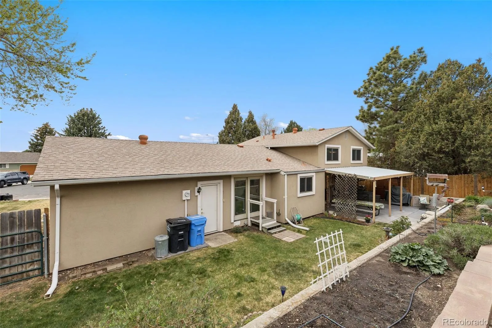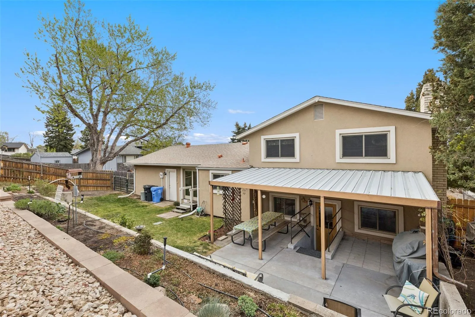 Welcome home to this charming tri-level tucked away in a quiet cul-de-sac in desirable Vista Grande Terrace! Bursting with curb appeal in a truly serene setting. Step inside to a super functional floor plan designed for comfortable everyday living. The cozy lower-level family room features a wood-burning fireplace—perfect for those chilly Colorado evenings—while the walk-out access seamlessly connects you to the backyard oasis. Outdoor lovers will fall in love with this gardener’s dream! The fully landscaped and fenced backyard showcases a beautiful, terraced garden complete with drip and spray irrigation systems, a tranquil water feature, and a charming cedar garden shed. Whether you’re planting, relaxing, or entertaining, there’s no shortage of inviting outdoor space, including a covered patio ideal for gatherings. Additional highlights include central A/C to keep you cool in the summer, a south-facing driveway to help with winter snow melt, and convenient travel trailer or camper van parking with an electric hook-up along the side yard. The garage also offers direct access to the backyard for added functionality. The lot is surrounded by mature trees for added privacy (without the maintenance on the property itself), this home blends comfort, charm, and opportunity in a wonderful location. Don’t miss your chance to make it your own!