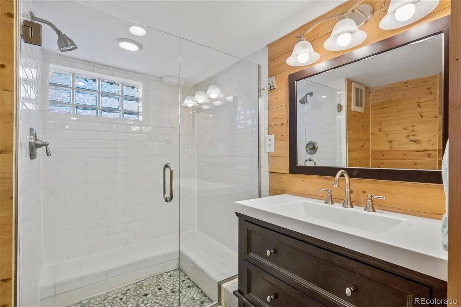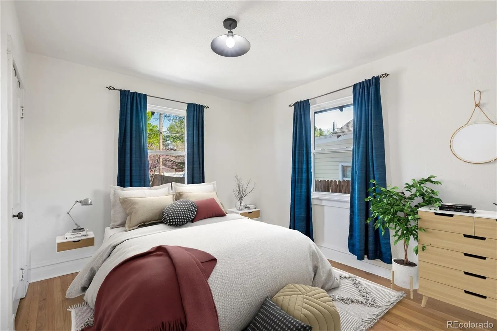 Classic charm meets modern living. Experience the quintessential Denver lifestyle in this stunning brick bungalow, perfectly situated in one of Central Denver’s most coveted neighborhoods; Belmont Place in South Park Hill. From the moment you step onto the expansive covered front porch—the perfect place for morning coffee or sunset views—you’ll feel the warmth of this home. Original historic character w/thoughtful design expands throughout the main level living & dining rooms w/sun-drenched, sophisticated living spaces. Flooded with western light through the newer (2023) windows; warm up on chilly days/evenings with the pellet stove & blower fan that distributes warm air into your living/dining room. Hardwood floors throughout the main level serve as the home’s architectural anchor including the built-in shelving. Culinary enthusiast will love creating meals in this chef-inspired kitchen which showcases a gas range; stainless appliances; stylish butcher block countertops, glass front display cabinets with abundant storage. The white farmhouse sink and signature hardware makes your kitchen a special experience. The primary bedroom and walk-in shower bath are located on the main level. The stunning subway tile on the walls & elegant flooring is bright w/glass block natural lighting! The finished basement includes a third bedroom, egress window allowing safety+natural light. An updated 3/4 bath has wood plank walls creating a warm, textured, & rustic/cozy atmosphere. Basement laundry doesn’t feel like a chore with the LG washer/dryer which is included! Need a bonus flex space? This could be ideal for a home office with a built-in desk. An outdoor oasis awaits w/a large stamped patio; pergola-covered lounge space to share w/family & friends. The detached one-car garage is oversized for storage; lawn equipment & furniture for the winter. Kentucky Coffee/Maple/Red Bud trees too! Unbeatable location is walkable to Honeyhill Cafe, Spinelli’s Market & DANG Soft Serve.