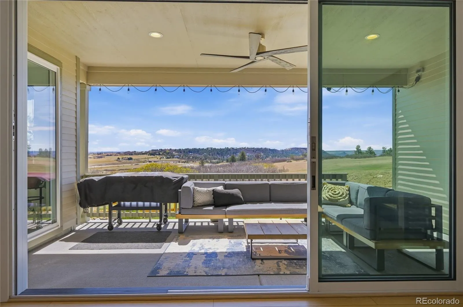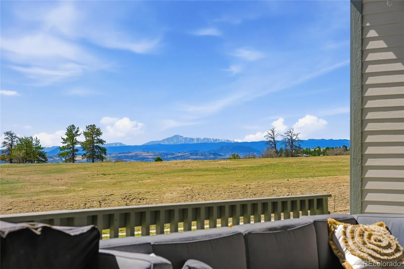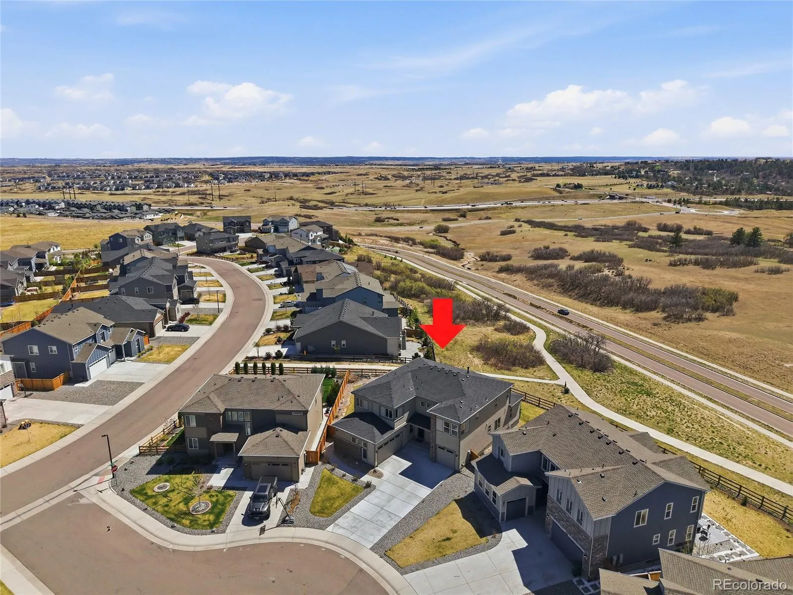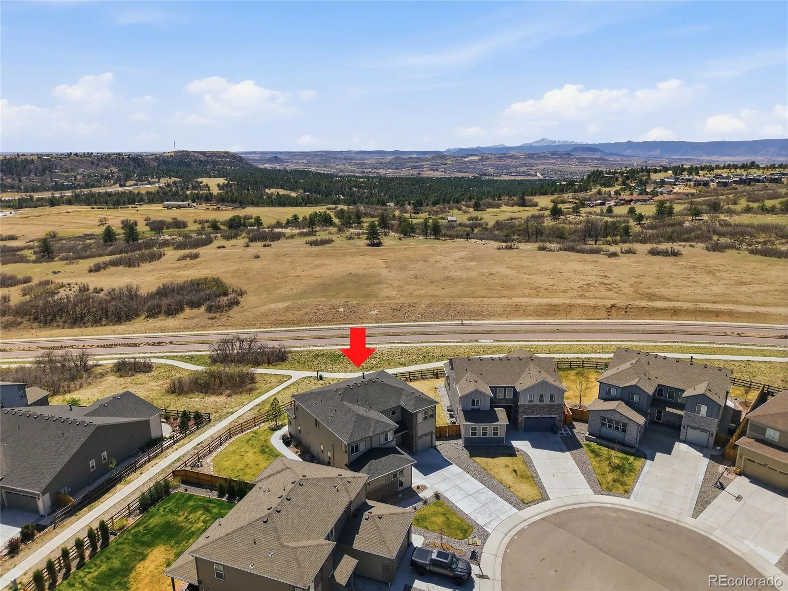 Perfectly positioned on a premium cul-de-sac lot in Skyline Ridge and backing to open space, this home is a standout builder model completed in 2022, offering 5,326 square feet of thoughtfully designed living space and sweeping, unobstructed views of Pikes Peak, Castle Rock, and shimmering city lights. When you step inside you are greeted by dramatic 19-foot ceilings, 9-foot six-panel doors, and expansive windows fill the home with natural light and frame the surrounding landscape. The open-concept main level flows effortlessly from the inviting living room—anchored by a sleek fireplace and accordion door leading to the covered balcony —into a beautifully appointed kitchen featuring two-tone cabinetry, quartz countertops, stainless steel appliances, a double convection oven, and a generous island ideal for gathering. A walk-in pantry and butler’s pantry provide both style and practicality for everyday living and entertaining. The primary suite is thoughtfully separated for privacy and offers a spa-inspired bath with a large, glass-enclosed shower wrapped in floor-to-ceiling tile and refined finishes throughout. Secondary bedrooms and baths continue the home’s modern, cohesive aesthetic. The laundry room is conveniently located upstairs near the bedrooms. Step outside to enjoy a covered balcony, extended patio, and landscaped, fenced yard complete with custom lighting and a gas line for grilling—perfect for taking in Colorado’s iconic views. Additional features include fresh interior paint, crown molding, a split 3-car garage with a 240V outlet, and an extended driveway. The unfinished walk-out basement with 9-foot ceilings presents over 1,800 square feet of opportunity to create a home gym, theater, or additional living space. With a neighborhood park just steps away and close proximity to trails, top-rated schools, and everyday conveniences, this home offers a rare combination of luxury, privacy, and lifestyle.