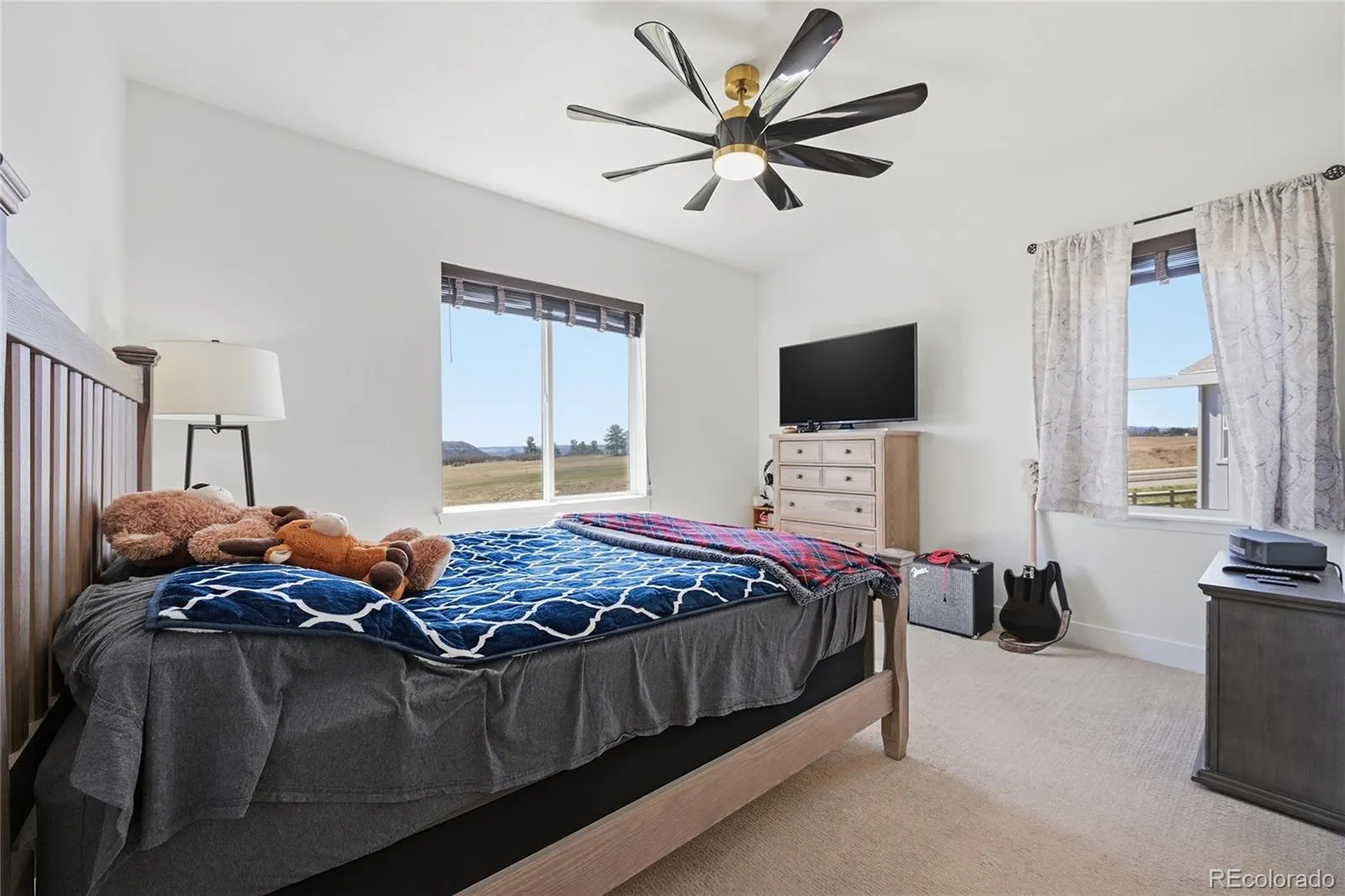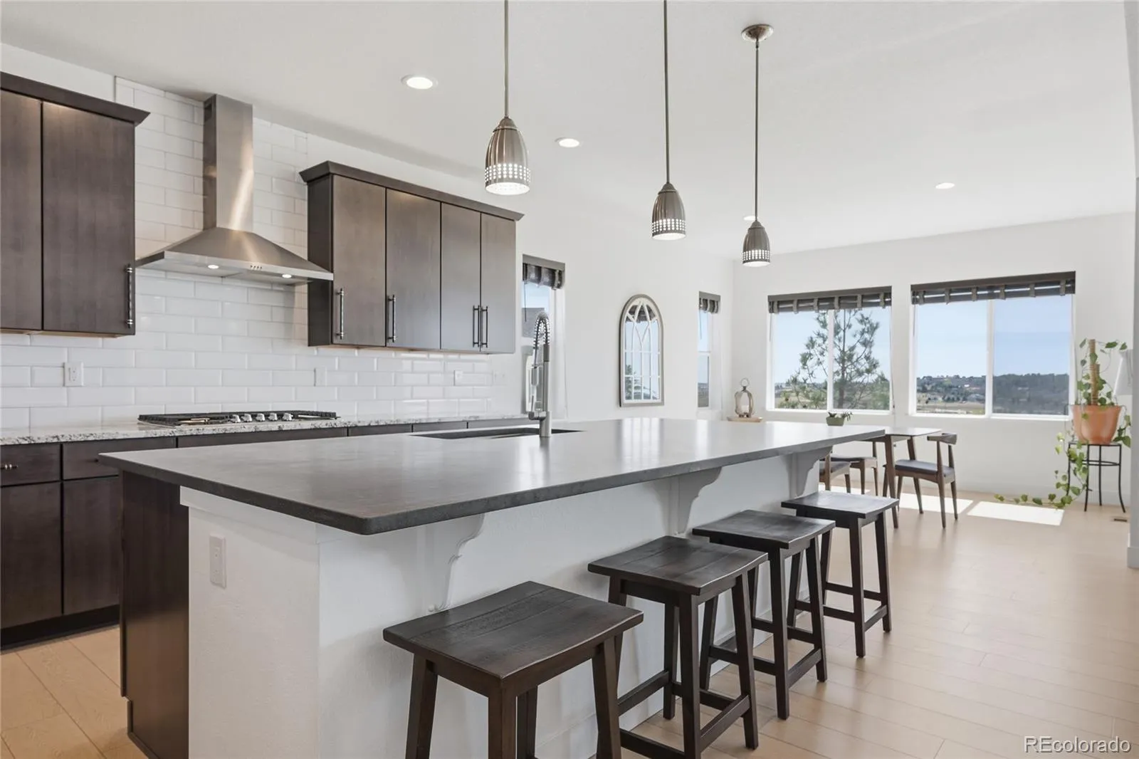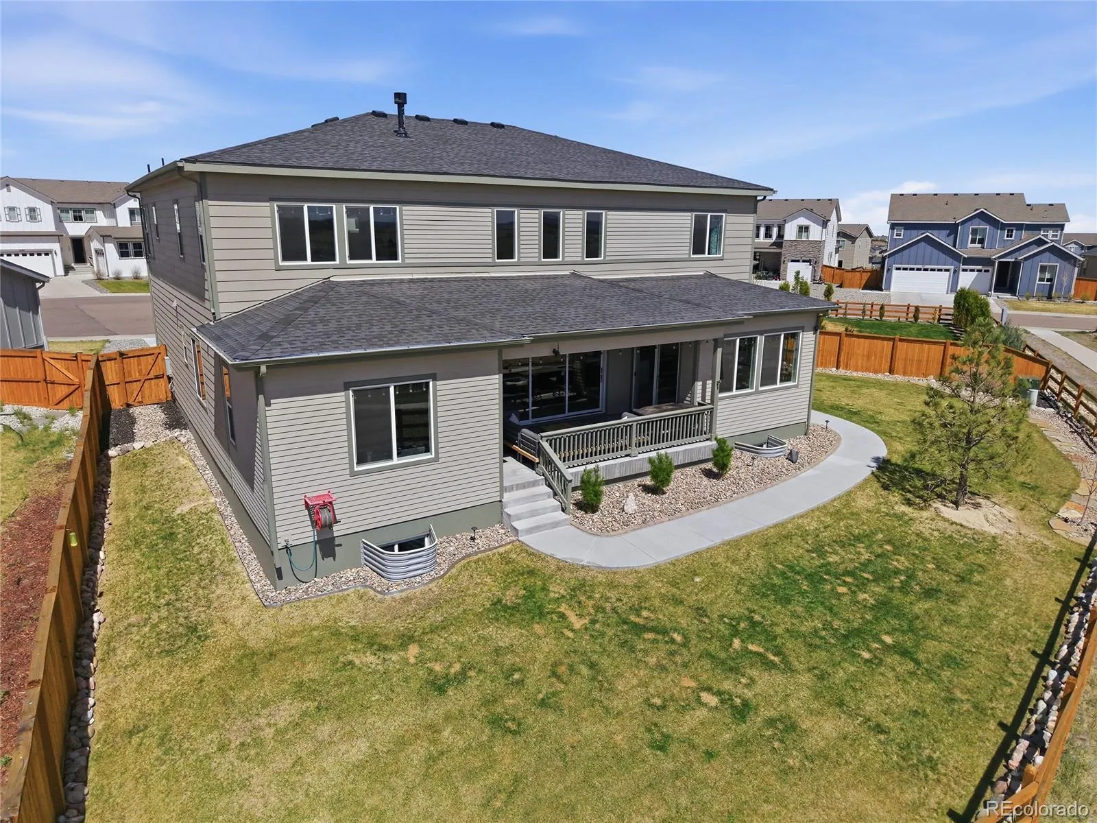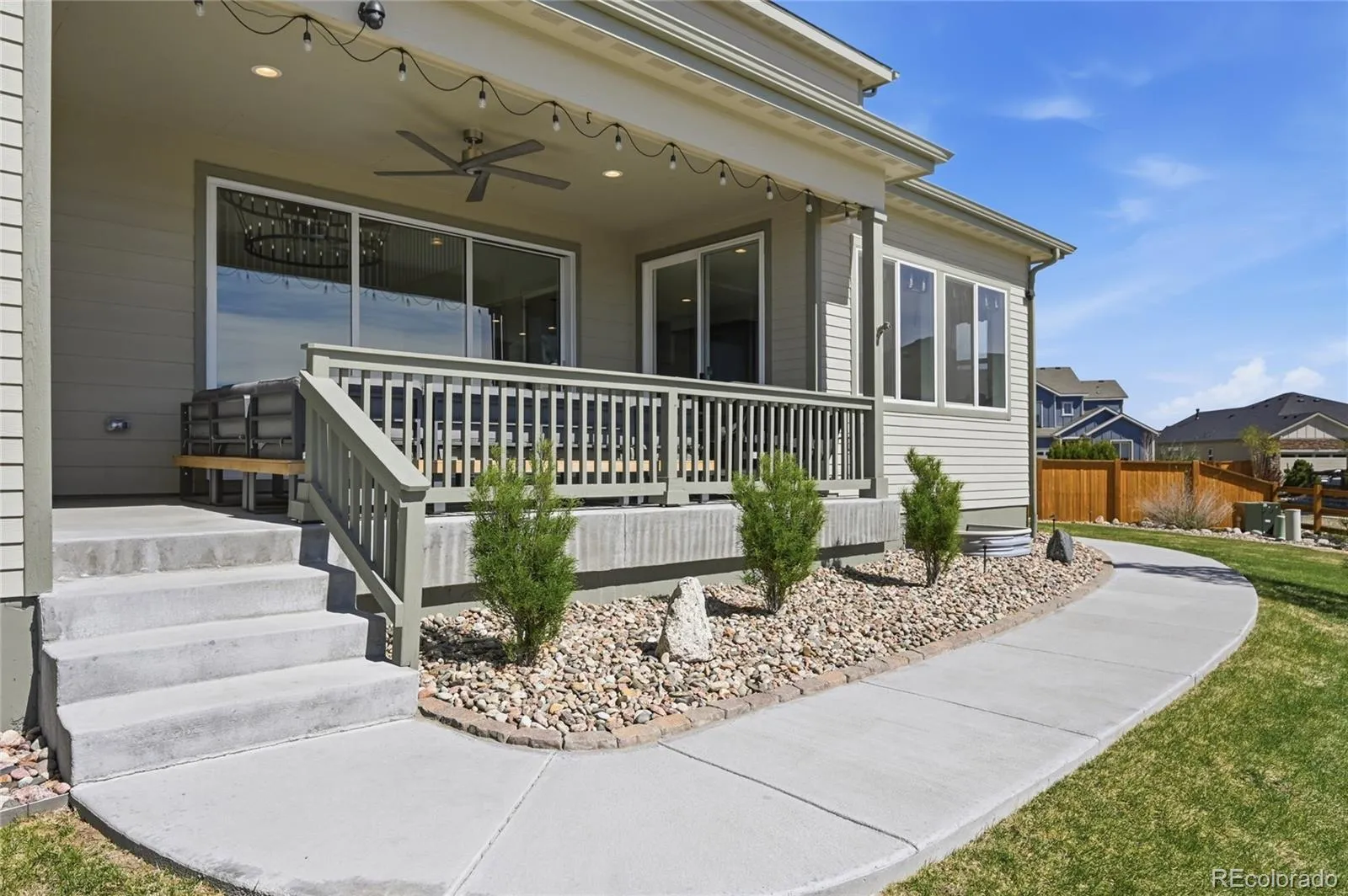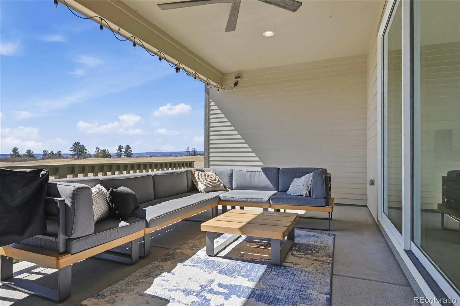 Perfectly positioned on a premium cul-de-sac lot in Skyline Ridge and backing to open space, this home is a standout builder model completed in 2022, offering 5,326 square feet of thoughtfully designed living space and sweeping, unobstructed views of Pikes Peak, Castle Rock, and shimmering city lights. When you step inside you are greeted by dramatic 19-foot ceilings, 9-foot six-panel doors, and expansive windows fill the home with natural light and frame the surrounding landscape. The open-concept main level flows effortlessly from the inviting living room—anchored by a sleek fireplace and accordion door leading to the covered balcony —into a beautifully appointed kitchen featuring two-tone cabinetry, quartz countertops, stainless steel appliances, a double convection oven, and a generous island ideal for gathering. A walk-in pantry and butler’s pantry provide both style and practicality for everyday living and entertaining. The primary suite is thoughtfully separated for privacy and offers a spa-inspired bath with a large, glass-enclosed shower wrapped in floor-to-ceiling tile and refined finishes throughout. Secondary bedrooms and baths continue the home’s modern, cohesive aesthetic. The laundry room is conveniently located upstairs near the bedrooms. Step outside to enjoy a covered balcony, extended patio, and landscaped, fenced yard complete with custom lighting and a gas line for grilling—perfect for taking in Colorado’s iconic views. Additional features include fresh interior paint, crown molding, a split 3-car garage with a 240V outlet, and an extended driveway. The unfinished walk-out basement with 9-foot ceilings presents over 1,800 square feet of opportunity to create a home gym, theater, or additional living space. With a neighborhood park just steps away and close proximity to trails, top-rated schools, and everyday conveniences, this home offers a rare combination of luxury, privacy, and lifestyle.