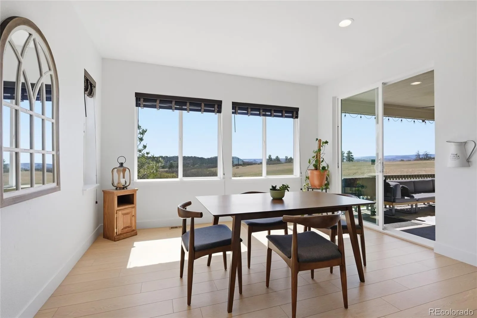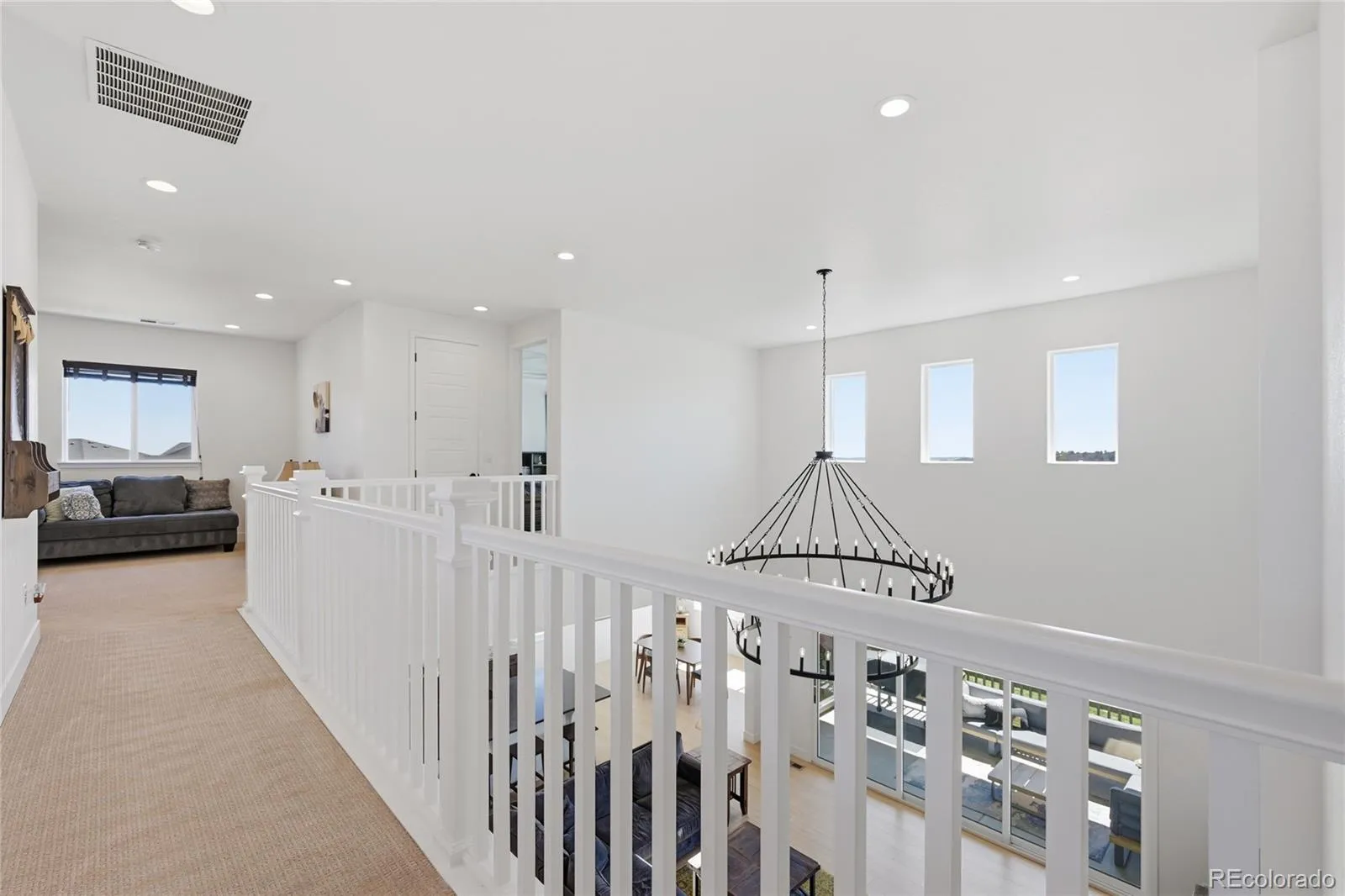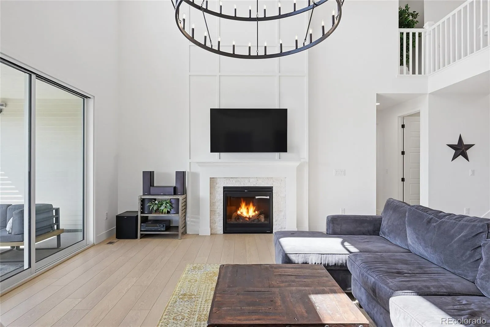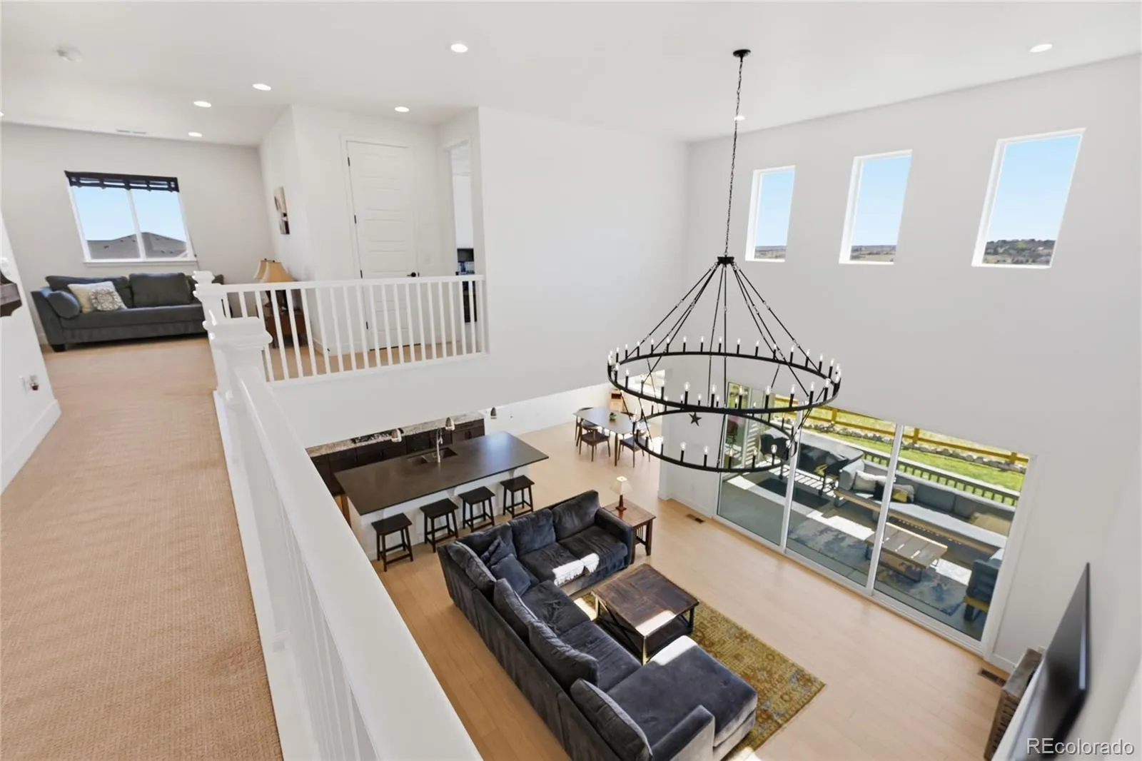 Perfectly positioned on a premium cul-de-sac lot in Skyline Ridge and backing to open space, this home is a standout builder model completed in 2022, offering 5,326 square feet of thoughtfully designed living space and sweeping, unobstructed views of Pikes Peak, Castle Rock, and shimmering city lights. When you step inside you are greeted by dramatic 19-foot ceilings, 9-foot six-panel doors, and expansive windows fill the home with natural light and frame the surrounding landscape. The open-concept main level flows effortlessly from the inviting living room—anchored by a sleek fireplace and accordion door leading to the covered balcony —into a beautifully appointed kitchen featuring two-tone cabinetry, quartz countertops, stainless steel appliances, a double convection oven, and a generous island ideal for gathering. A walk-in pantry and butler’s pantry provide both style and practicality for everyday living and entertaining. The primary suite is thoughtfully separated for privacy and offers a spa-inspired bath with a large, glass-enclosed shower wrapped in floor-to-ceiling tile and refined finishes throughout. Secondary bedrooms and baths continue the home’s modern, cohesive aesthetic. The laundry room is conveniently located upstairs near the bedrooms. Step outside to enjoy a covered balcony, extended patio, and landscaped, fenced yard complete with custom lighting and a gas line for grilling—perfect for taking in Colorado’s iconic views. Additional features include fresh interior paint, crown molding, a split 3-car garage with a 240V outlet, and an extended driveway. The unfinished walk-out basement with 9-foot ceilings presents over 1,800 square feet of opportunity to create a home gym, theater, or additional living space. With a neighborhood park just steps away and close proximity to trails, top-rated schools, and everyday conveniences, this home offers a rare combination of luxury, privacy, and lifestyle.