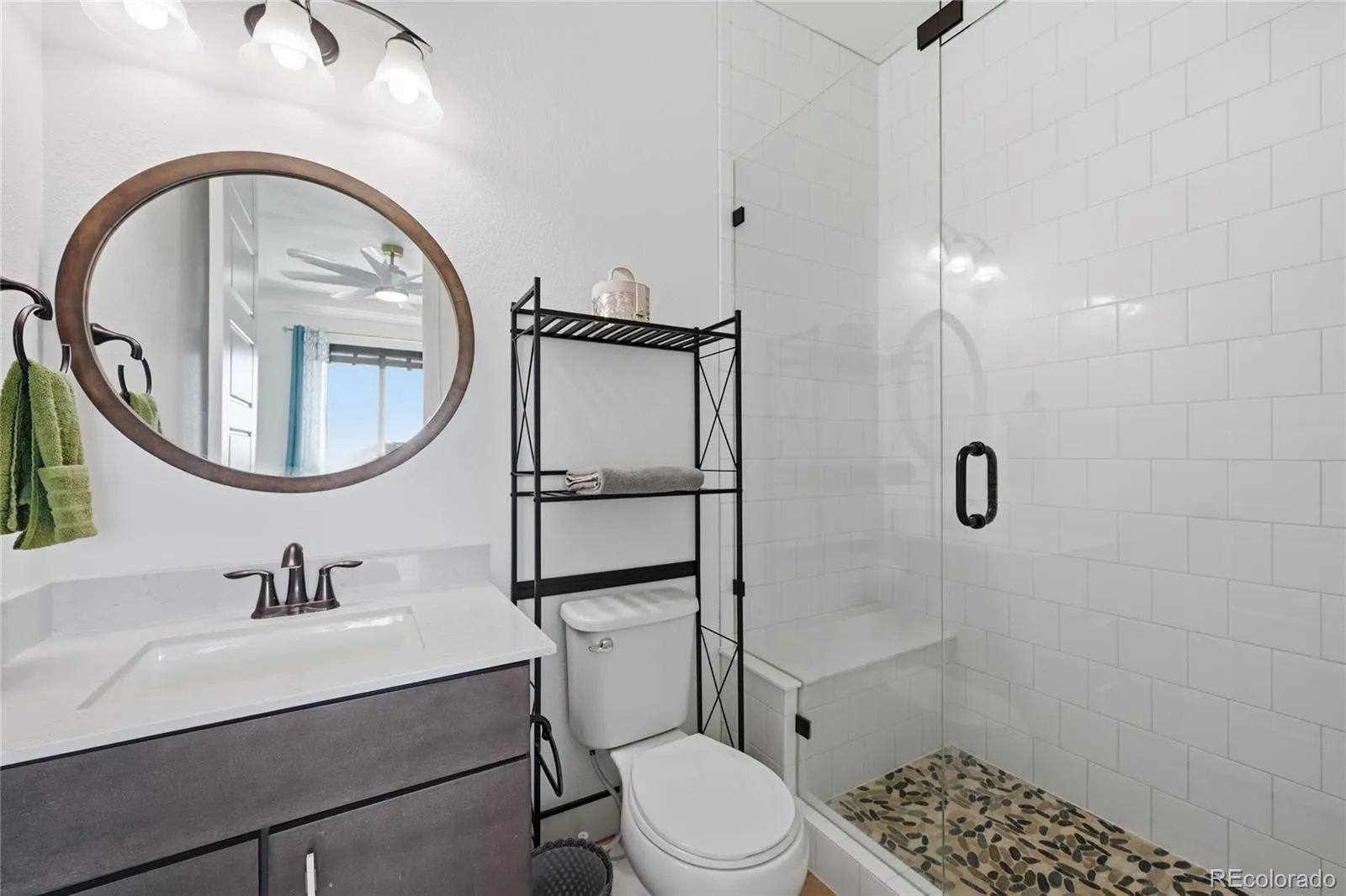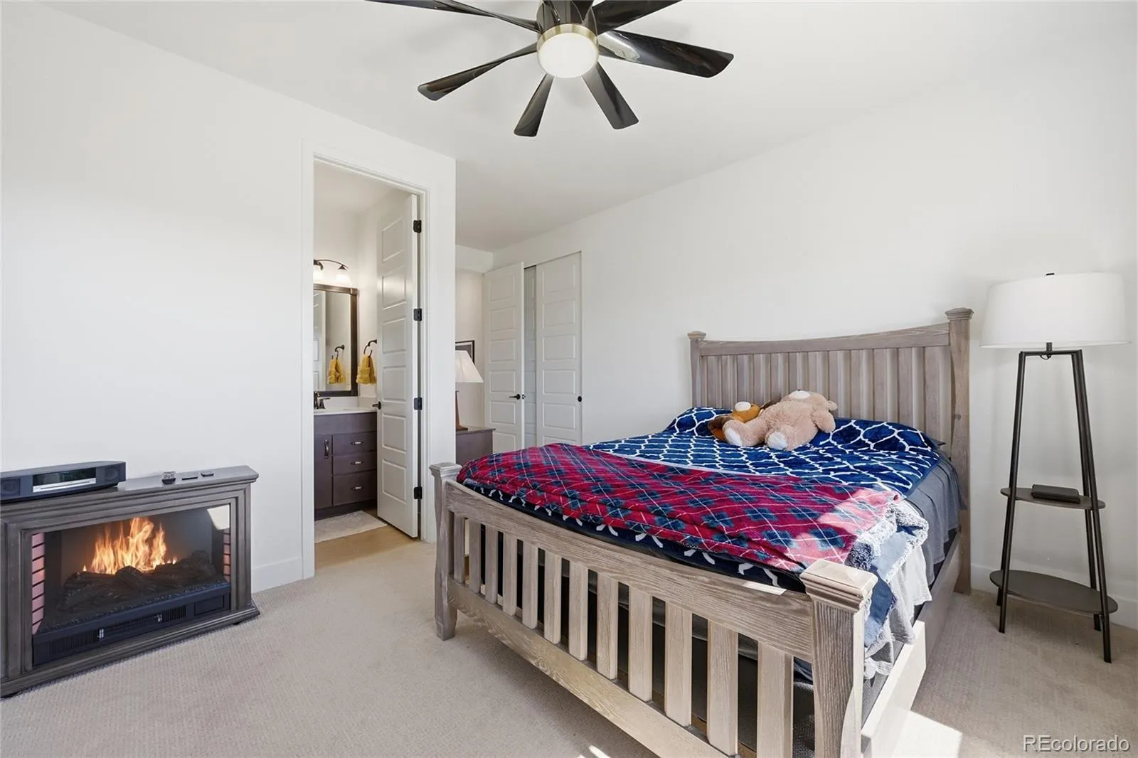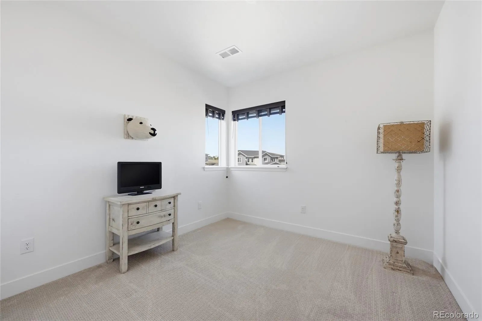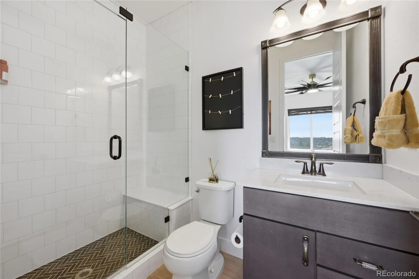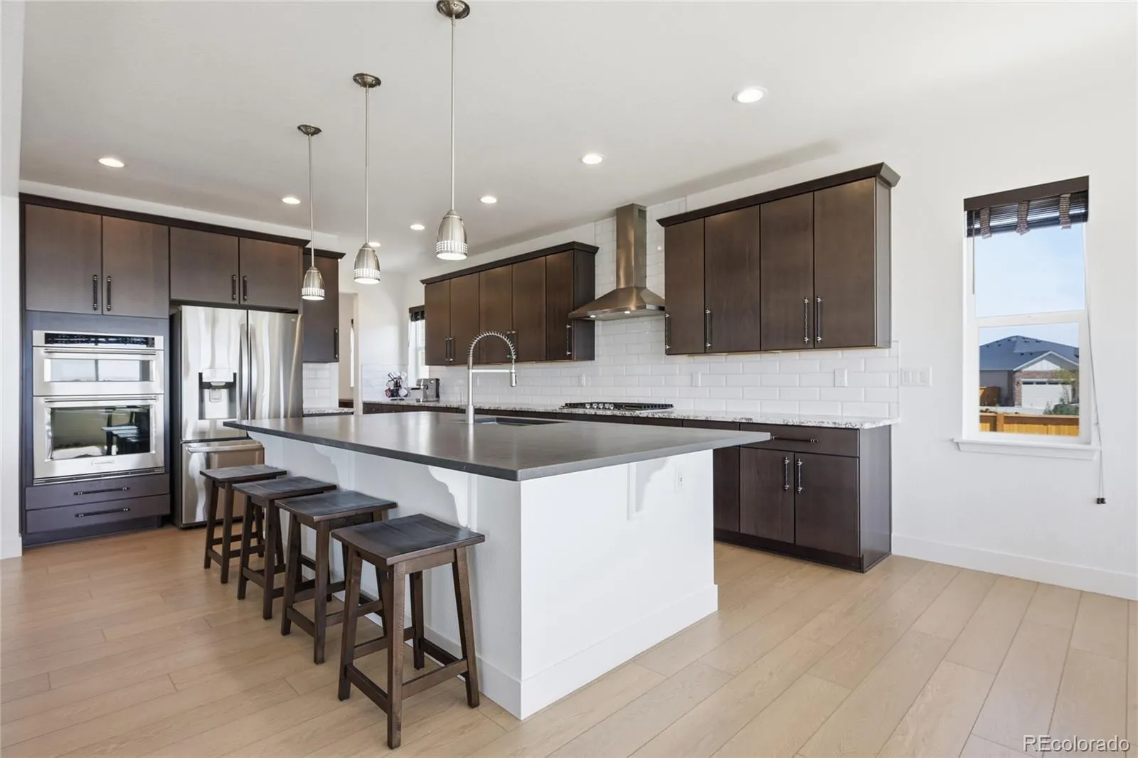 Perfectly positioned on a premium cul-de-sac lot in Skyline Ridge and backing to open space, this home is a standout builder model completed in 2022, offering 5,326 square feet of thoughtfully designed living space and sweeping, unobstructed views of Pikes Peak, Castle Rock, and shimmering city lights. When you step inside you are greeted by dramatic 19-foot ceilings, 9-foot six-panel doors, and expansive windows fill the home with natural light and frame the surrounding landscape. The open-concept main level flows effortlessly from the inviting living room—anchored by a sleek fireplace and accordion door leading to the covered balcony —into a beautifully appointed kitchen featuring two-tone cabinetry, quartz countertops, stainless steel appliances, a double convection oven, and a generous island ideal for gathering. A walk-in pantry and butler’s pantry provide both style and practicality for everyday living and entertaining. The primary suite is thoughtfully separated for privacy and offers a spa-inspired bath with a large, glass-enclosed shower wrapped in floor-to-ceiling tile and refined finishes throughout. Secondary bedrooms and baths continue the home’s modern, cohesive aesthetic. The laundry room is conveniently located upstairs near the bedrooms. Step outside to enjoy a covered balcony, extended patio, and landscaped, fenced yard complete with custom lighting and a gas line for grilling—perfect for taking in Colorado’s iconic views. Additional features include fresh interior paint, crown molding, a split 3-car garage with a 240V outlet, and an extended driveway. The unfinished walk-out basement with 9-foot ceilings presents over 1,800 square feet of opportunity to create a home gym, theater, or additional living space. With a neighborhood park just steps away and close proximity to trails, top-rated schools, and everyday conveniences, this home offers a rare combination of luxury, privacy, and lifestyle.