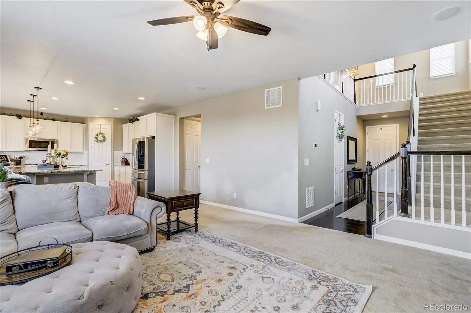 Welcome home to this spacious 5-bedroom, 3-bathroom Richmond American residence, thoughtfully designed for both comfort and functionality. The upper level features four bedrooms and a generous loft, with the primary suite privately situated on the opposite side of the floor from the additional bedrooms—offering the perfect balance of privacy while still keeping everyone close. On the main level, you’ll find a convenient fifth bedroom paired with a ¾ bath, making it an ideal setup for guests or multigenerational living. Situated on one of the larger lots in the community, this home offers an exceptional outdoor space complete with a beautifully designed patio and built-in fire pit—perfect for relaxing or entertaining year-round. The unfinished full basement features 9-foot ceilings and rough-in plumbing for a future bathroom, providing a fantastic opportunity to expand and customize the space to fit your needs. Located in the highly sought-after Anthology neighborhood, residents enjoy access to scenic parks, walking trails, and a community center with a pool, all within easy walking distance.