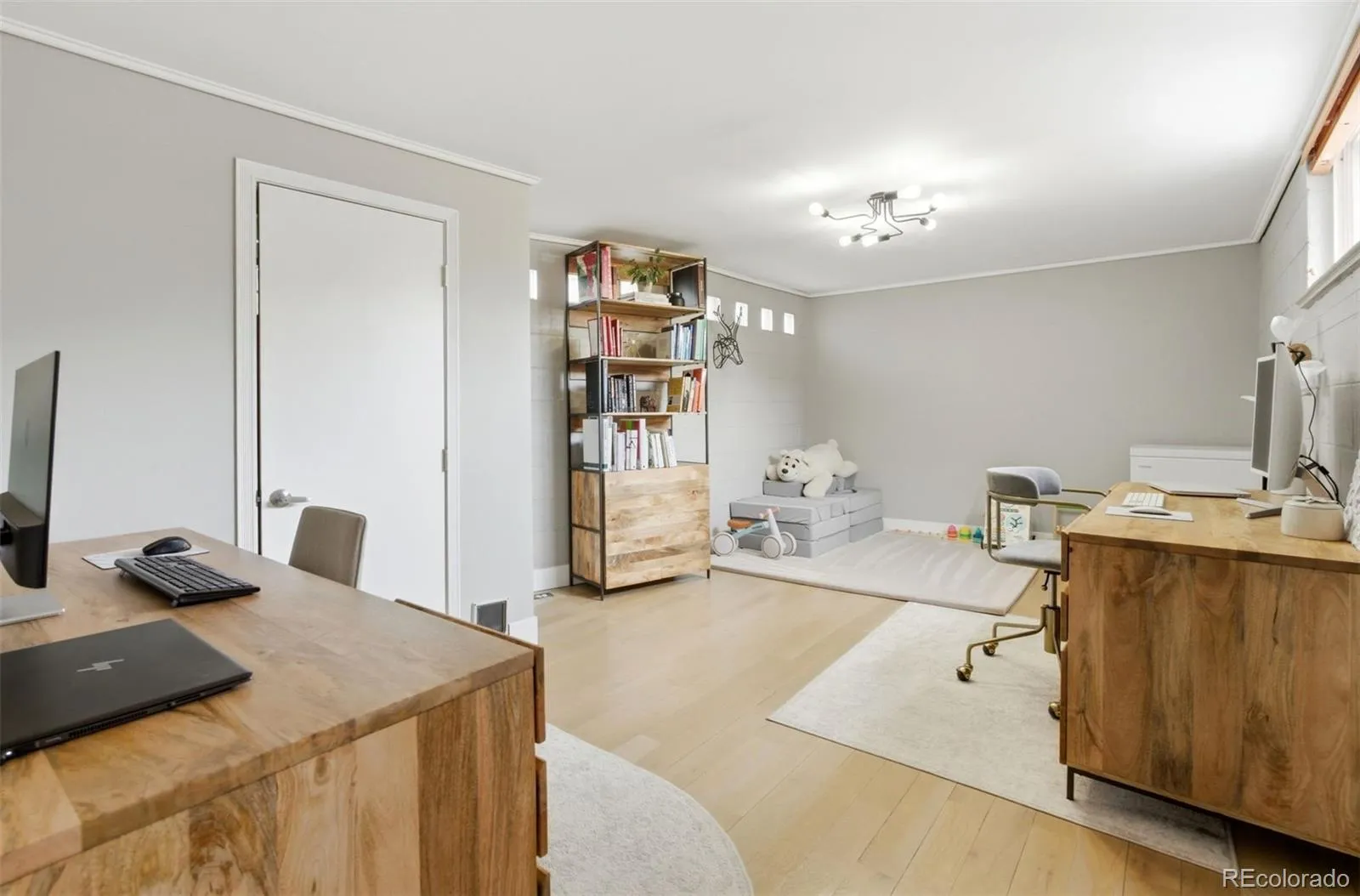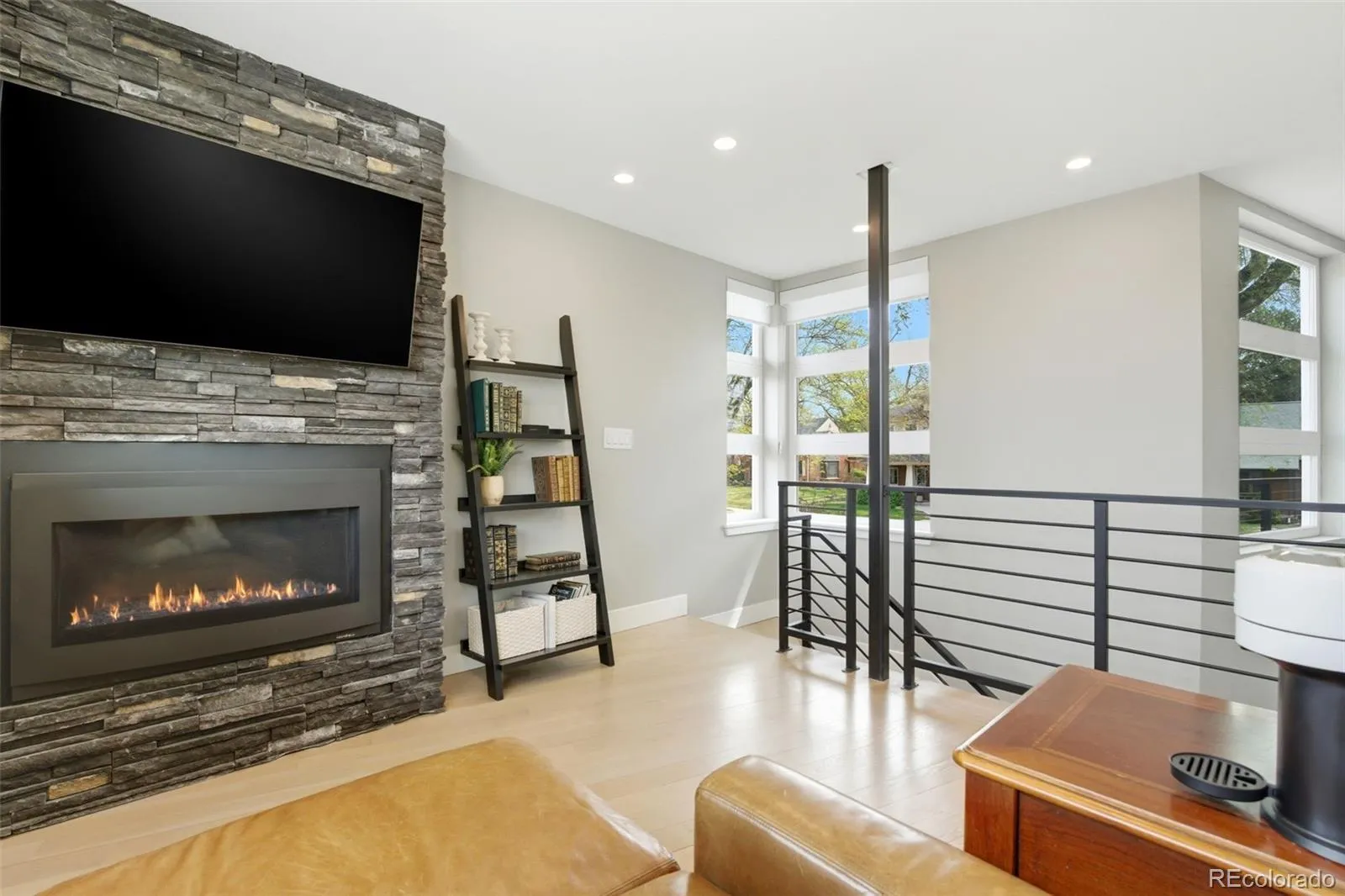 Tucked into a quiet street in one of Bonnie Brae’s most desirable blocks, this modern, light-filled home provides a rare chance to buy into a neighborhood where homes routinely sell well above the million-dollar mark. The contemporary layout showcases expansive windows, clean lines, & thoughtful designer updates throughout, including a fully remodeled main-level bath with designer tile, deep tub, modern fixtures, cabinetry & flooring. The main level showcases white oak wood floors & an updated gas fireplace stretching across the living room while two comfortable bedrooms & an enclosed garage adds true flexibility. Use it for parking or let it live as a second family room, playroom, office, or guest space. Upstairs, the private primary suite occupies its own level with an updated bath, custom closet, & a bright sitting area that functions beautifully as a home office or reading nook with a second gas fireplace, plus a private balcony with peaceful treetop & sunrise views. Outside, the gated yard is intentionally low maintenance yet still lush, with mature trees that provide privacy & seasonal color. A newly finished back patio is ideal for private outdoor dining, grilling, & lounging, while the front yard offers additional green space for pets & play. Recent improvements include plaster-textured walls & paint, updated lighting, a newer stackable washer & dryer, a new back fence, & refreshed exterior details that give the home a polished, move-in-ready feel. All of this sits in the heart of historic Bonnie Brae, known for its winding streets, mature trees, & mix of classic Tudors & modern custom homes. Residents enjoy the walkability of being just minutes from local favorites like Bonnie Brae Ice Cream, Campus Lounge & popular neighborhood shops a&restaurants on Gaylord as well as the walkable Belcaro Loop, Washington Park, and Cherry Creek, making this an unusually accessible opportunity in one of Denver’s most coveted neighborhoods. Bonniebraehm.com for more details