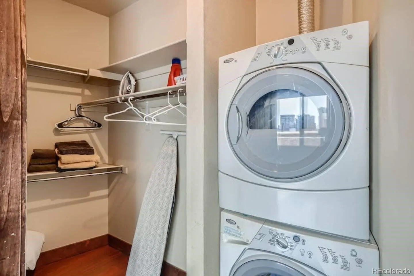 Short-Term Rentals Allowed — Live, Invest, or Both!? Searching for a downtown home or your next income-producing property? This versatile condo offers the best of both worlds. Located on the third floor, this spacious corner unit showcases sweeping views of Coors Field, the downtown skyline, and even the mountains. Natural light pours into the open-concept layout, featuring a large kitchen island and a dedicated dining area—perfect for entertaining or everyday living. The thoughtfully designed floor plan includes a private guest suite with a three-piece en suite bath, as well as a generous primary retreat complete with a walk-in closet, dual sinks, walk-in shower, and a deep soaking tub. In-unit laundry adds everyday convenience. Step outside to your private balcony with elegant French door access and take in the stunning city views. High-end finishes elevate the space, including Brazilian cherry hardwood floors, fresh interior paint, stainless steel appliances, and soaring 11-foot ceilings.