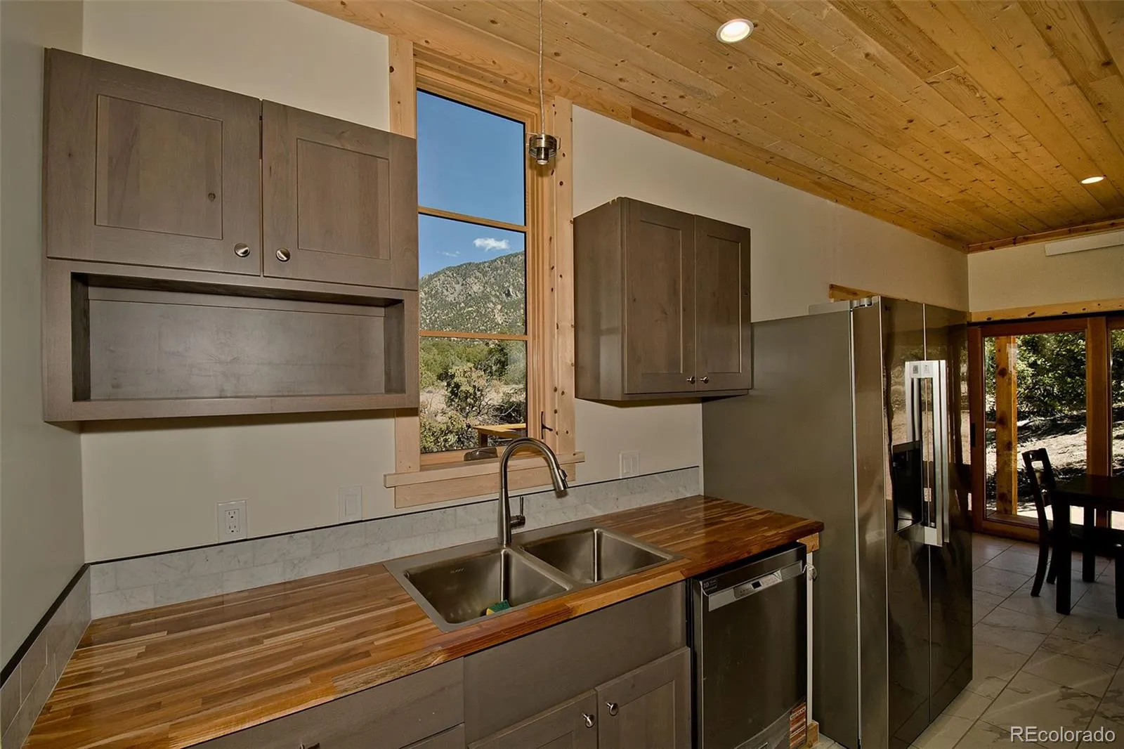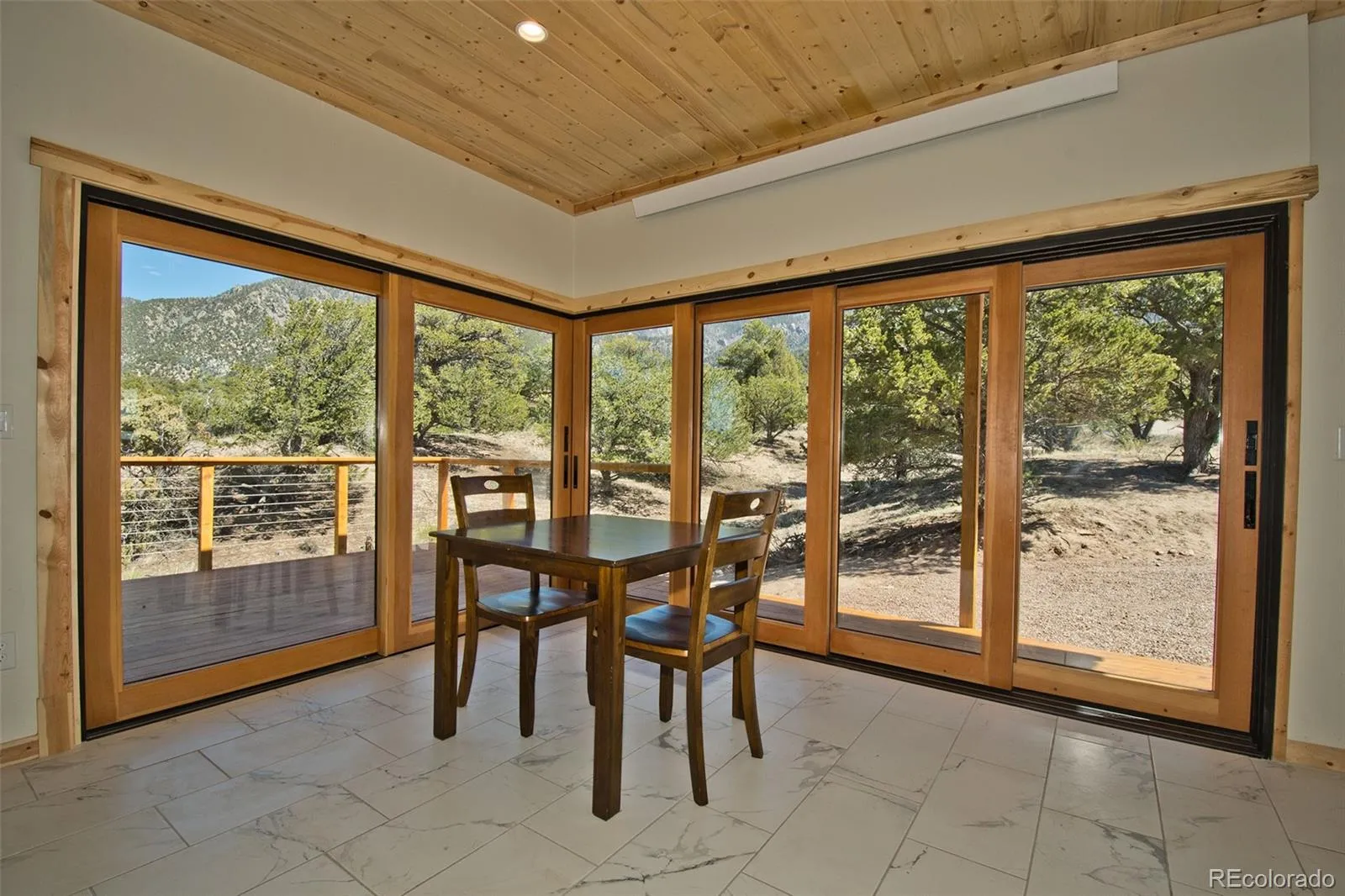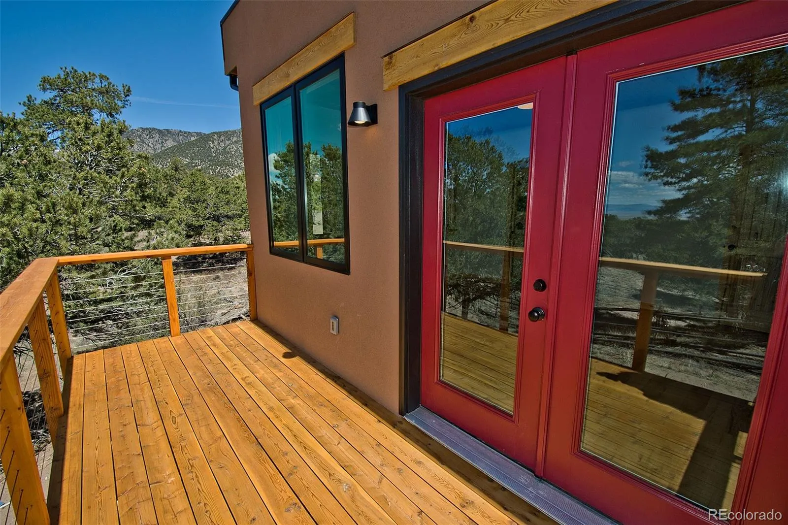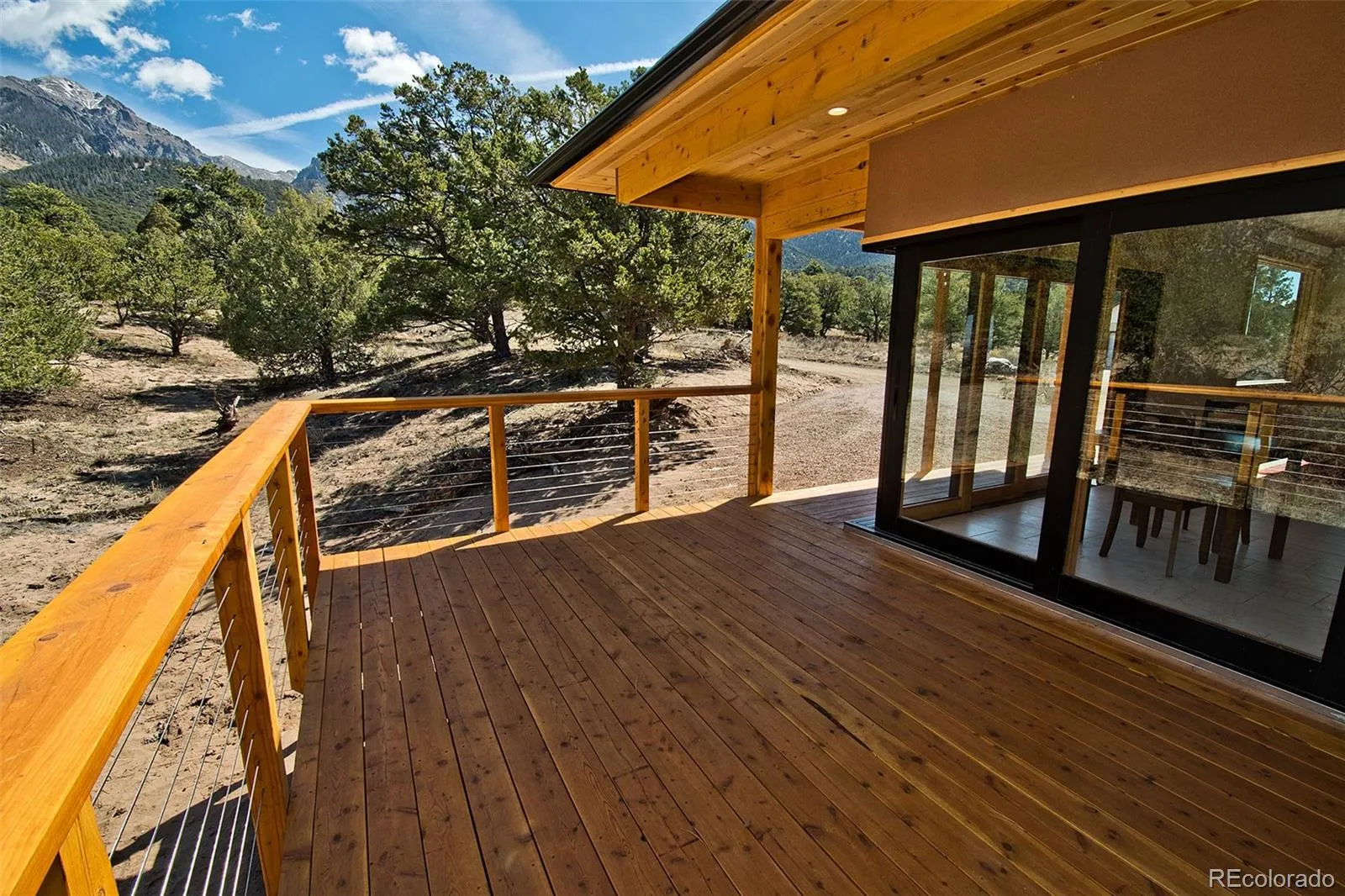 New construction! Quality custom home on quiet street with beautiful mountain and valley views. Sensational custom wood corner-opening sliding door looks onto wraparound deck. This feature creates a wall of windows on two sides of the living area and a wonderful sense of nature being part of the living room experience. When open, the door offers a dramatic openness between living and outdoor spaces. Great for entertaining and quietly enjoying the expansive views. Open floor plan with galley kitchen and passthrough counter to living room. Wood block counters and stainless steel electric appliances and double sink. Nine foot tongue in groove ceilings. Three bedroom and two full baths with tile showers and marble flooring. Primary bedroom has its own private walkout to balcony with expansive views of the San Luis Valley, and bath with separate tub and shower. Additional bedrooms also have beautiful views. This home was built with great care and quality materials: Clad windows, oak and marble tile flooring, electric in-floor heating in bathrooms and kitchen, with cove heating units in living room and bedrooms. Kitchen has pantry closet. Main level laundry. Hall linen closet. Spray foam insulation. Pre-wired for rooftop solar. Wired telephone line located in the crawl space. Location is high in Chalet I on a side street with minimal vehicle traffic. Builder Tim Brenner has decades of experience building quality homes in the area. This home is truly a cut above the rest!