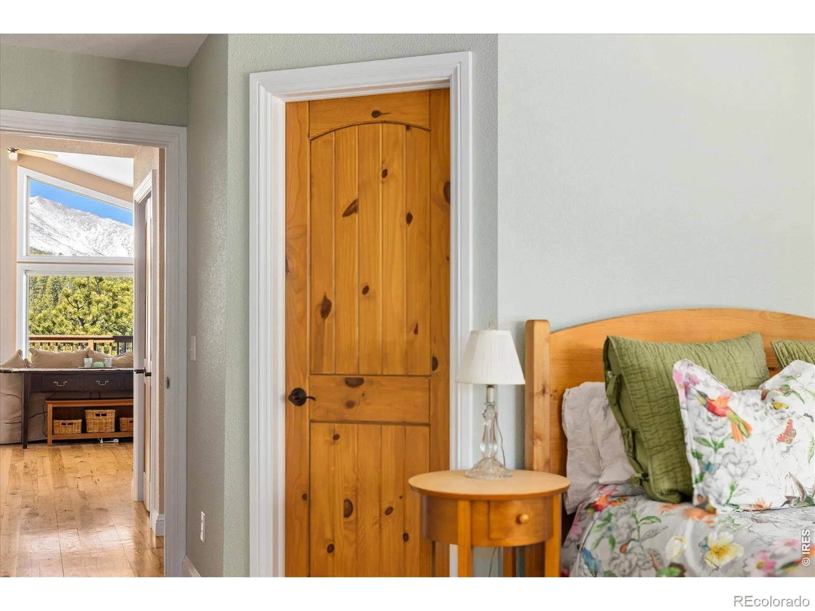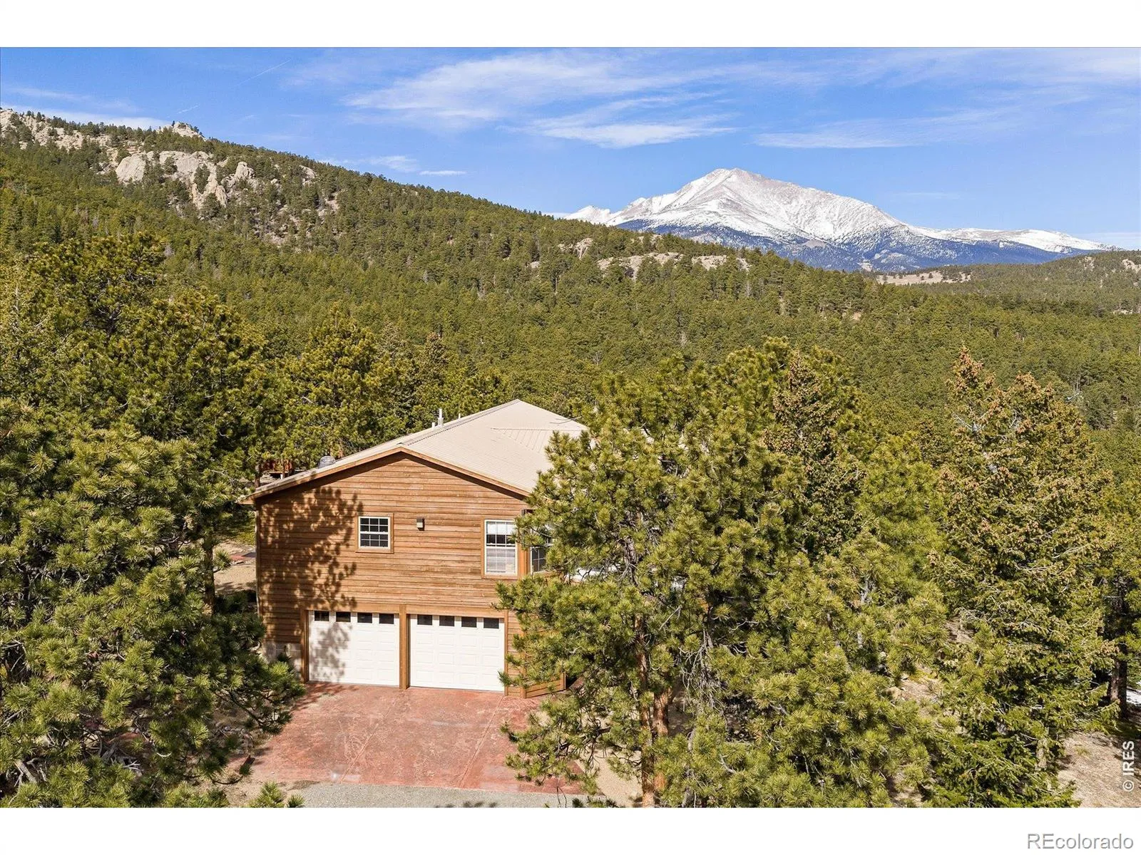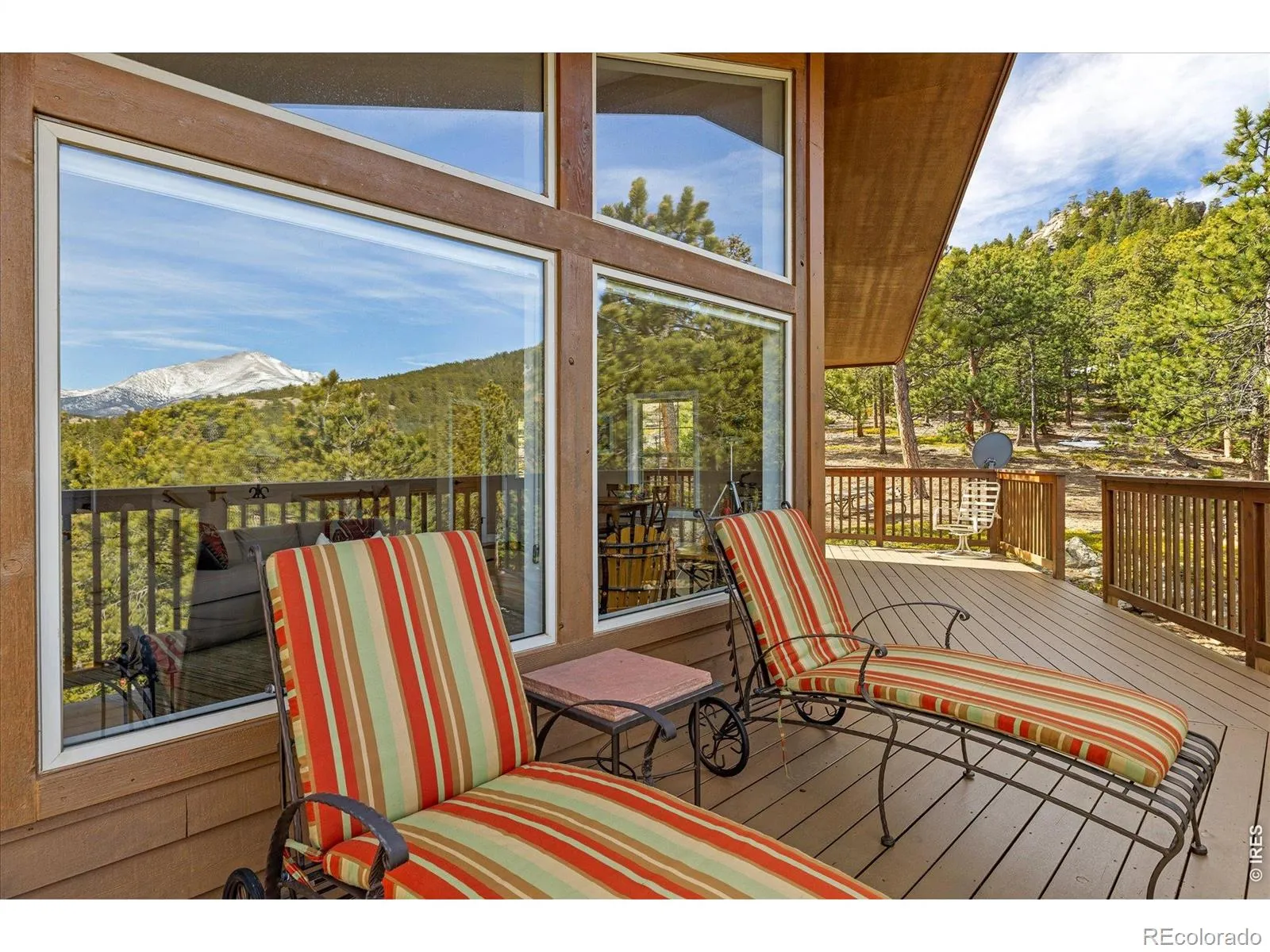 Sweeping, unobstructed views of the Continental Divide and the iconic Mount Meeker are captured from this turnkey mountain retreat perched in the serene foothills of Rockledge Park. Immaculately maintained, this residence is defined by lofty vaulted ceilings and a light-filled open floorplan, where dramatic floor-to-ceiling windows frame snow-capped peaks and ever-changing skies. A wraparound deck extends the living space outdoors, offering an extraordinary setting for entertaining or quiet moments immersed in nature. Rich Alder wood doors and Hickory hardwood floors add warmth and refinement, while a cozy HearthStone stove anchors the living area. A lower walkout level includes a separate entrance with a roomy recreational setting featuring a pool table/TV, bedroom and 3/4 bath. When exploring the outdoors this property offers the freedom to roam the bordering National Forest, inviting endless adventuring right from the backyard, and includes a charming mini cabin with inspiring views. Set among gentle terrain and striking rock outcroppings, this peaceful sanctuary offers abundant wildlife sightings and sounds, unmatched privacy and convenient access to Lyons, Boulder, Rocky Mountain National Park and Eldora skiing.