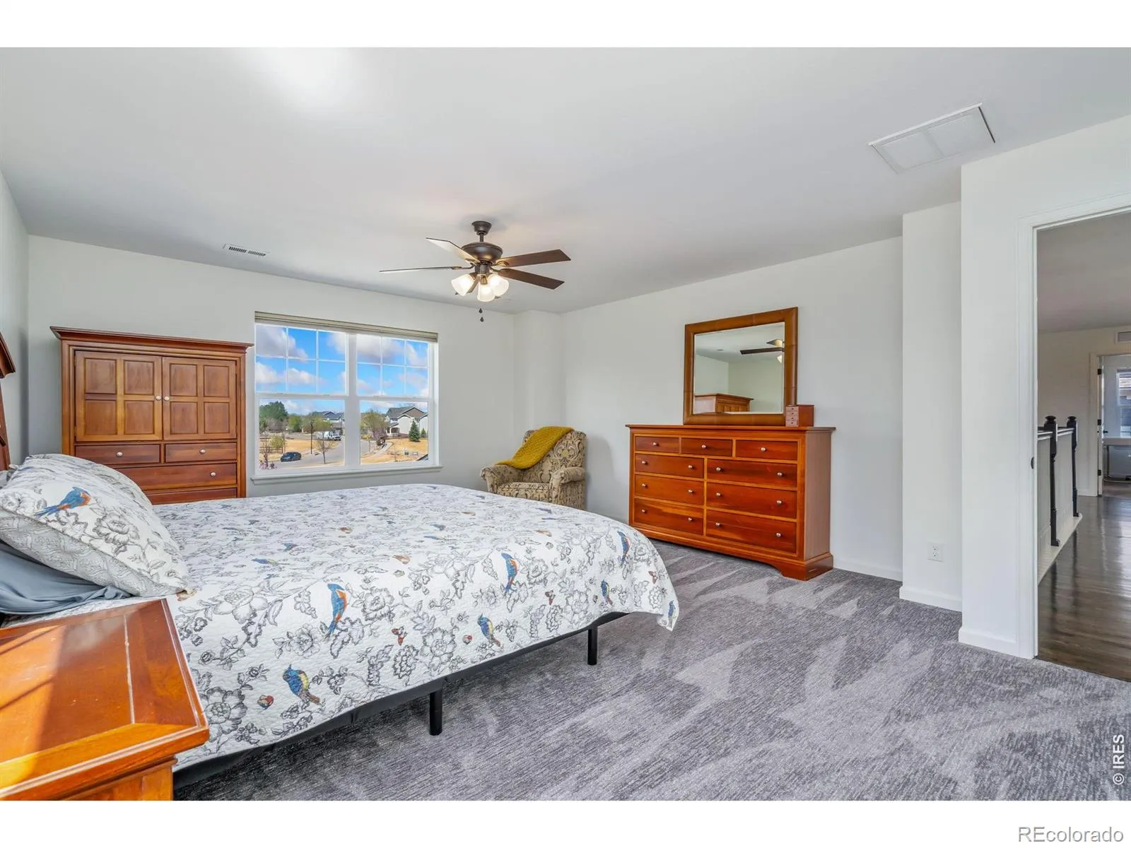 Welcome to 2326 Copper Crest Ln, a stunning modern sanctuary in the heart of Kechter Crossing. This prime location backs to peaceful open space and sits directly adjacent to a world-class trail system, all while being less than a mile from Bacon Elementary, Fossil Ridge High School, and the iconic Twin Silos Park.The Ultimate Toy Box: A rare find, this home features an expansive attached 5-car garage, including an RV bay with a 10’6″ door, perfect for housing your largest adventures and hobbies. Inside, the foyer leads to a breathtaking open-concept living area. Cathedral ceilings create a sense of volume, flooding the space with natural light. The gourmet kitchen is a chef’s dream, featuring: Large quartz island and stainless appliances, including double ovens, gas range, modern cityscape cabinetry and a clever coffee bar/walk-in pantry passthrough to the formal dining room. The main floor is rounded out by a dedicated home office and a convenient main-level bedroom with an adjacent 3/4 bath. Upstairs, a versatile loft provides the perfect secondary living space. The primary suite is a true escape, boasting a 5-piece bath with a soaking tub and a massive walk-in closet featuring a custom storage island. Two additional bedrooms ensure plenty of space for everyone. Conveniently the passthrough laundry room is located in close proximity to the upstairs bedrooms. The professionally finished basement invites your imagination, ideal for a home theater, gym, bar, or combination of all three as it currently stands. It also includes a secondary flex space perfect for a second home office and an additional guest bedroom. Step outside to your private backyard oasis. Whether hosting a BBQ or enjoying a quiet Colorado sunset, the serene backdrop of the open space offers unmatched tranquility.