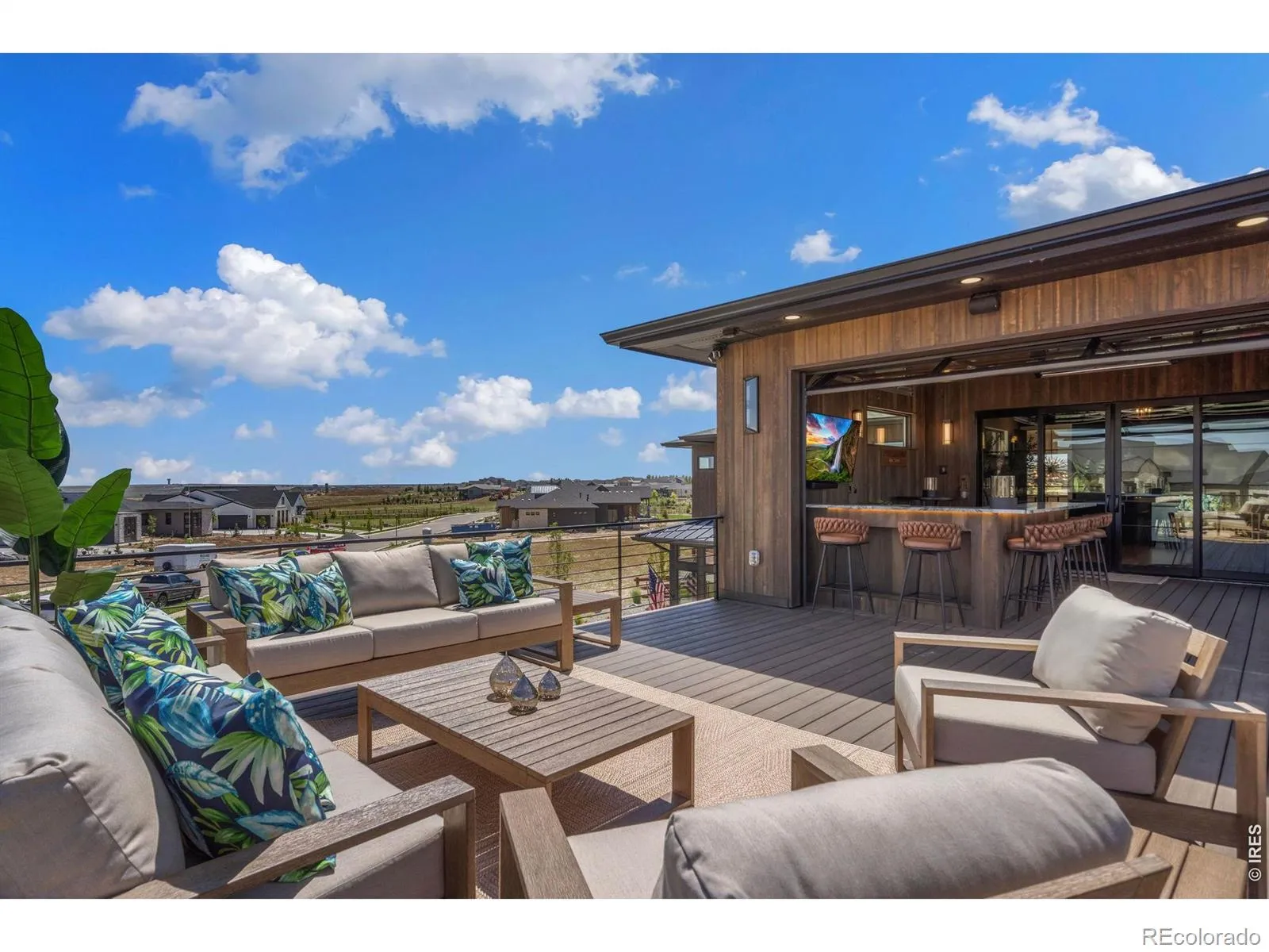 Once in a generation, a home comes to market that redefines what luxury means in Northern Colorado. Welcome to 1501 Flowering Tree Court, the 2024 Parade of Homes winner and one of the finest residences Windsor has to offer. Sited on a private acre plus lot, this 6,545 square foot custom estate is the work of Aliversa Builders, voted Best Custom Home Builder of 2025. Every inch reflects that distinction: 6 bedrooms, 7 baths, and two full primary suites, one on the main level and one privately tucked upstairs, making it as ideal for multi generational living as it is for hosting. The upper primary is a true sanctuary, with heated floors and a steam shower that transform everyday routines into a spa experience. The chef’s kitchen is the heart of the home. Taj Mahal quartzite counters, professional grade appliances, and custom cabinetry set the stage, while a hidden walk in pantry delivers the kind of detail that separates a great home from an unforgettable one. Entertaining here is effortless. A rooftop patio with a full bar and hot tub extends the living space skyward, capturing views and sunsets year round. Downstairs, the finished basement unfolds into a private gym, a second lounge, and a custom children’s playroom, spaces designed for how families actually live. Outside, the acre plus grounds include a sport court and room to roam, while the oversized heated garage offers flexibility for collectors, hobbyists, or weekend adventurers. Inside, a fully integrated smart home system puts lighting, blinds, audio, security, cameras, and multi zone climate at your fingertips. Oelo exterior lighting lets the home shift with the seasons and the occasion. A rare offering of this caliber, crafted for those who value exceptional design, effortless entertaining, and a truly elevated way of living.