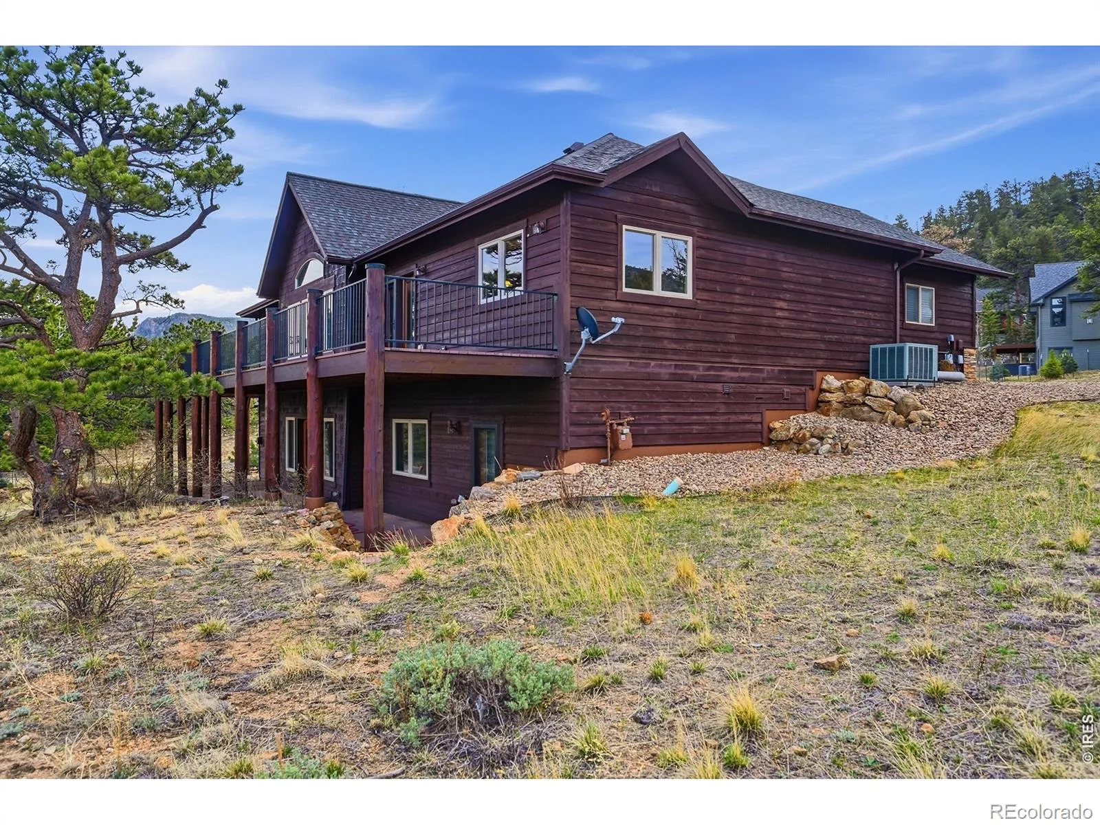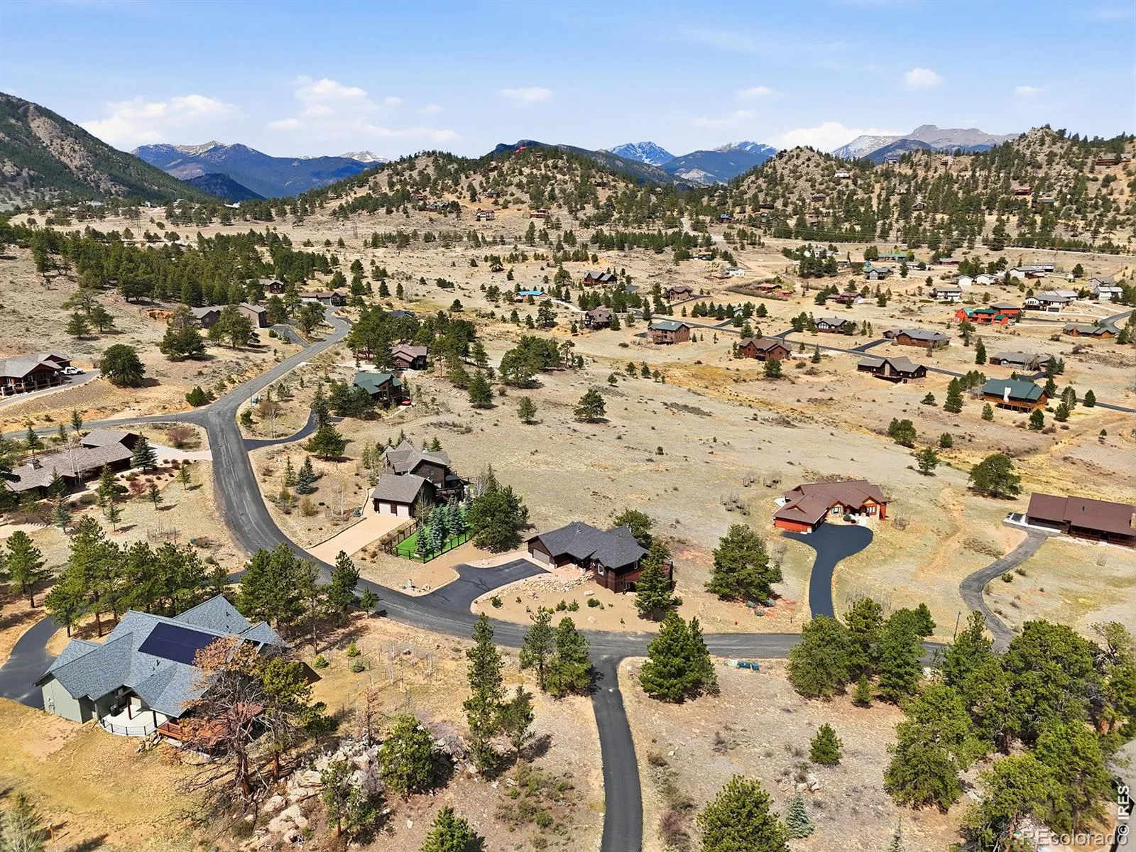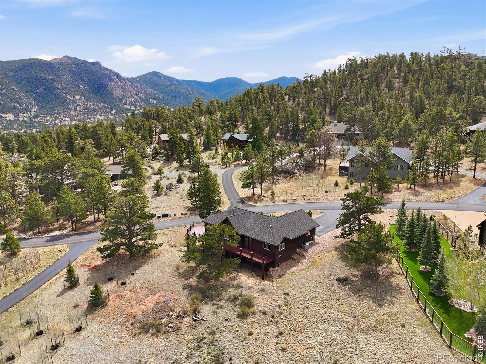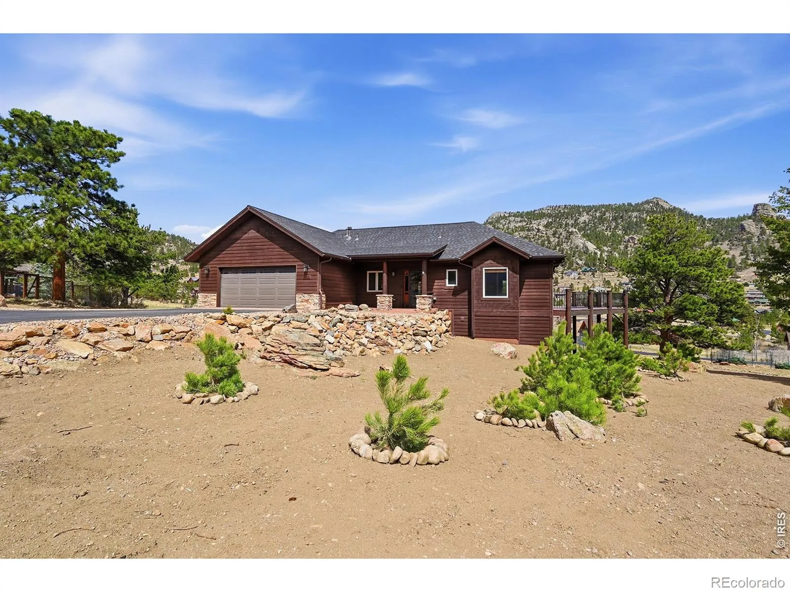 Nestled at the base of Prospect Mountain, this stunning walk-out ranch offers the perfect blend of privacy, comfort, and breathtaking natural beauty on just over an acre in Estes Park. Backing to open space, this property provides unmatched tranquility, unobstructed views, and frequent wildlife sightings-truly embracing the Colorado mountain lifestyle while still being just minutes from town.With 3,052 square feet of thoughtfully designed living space, this 4-bedroom, 3.5-bath home delivers both functionality and elegance. Step inside to be greeted by expansive mountain views, wood floors, and charming pine log accents that instantly create a sense of home. The open-concept main level features seamless flow between the kitchen, dining, and living areas-ideal for entertaining or relaxing by the impressive stone fireplace while soaking in views for miles.The well-appointed kitchen is a chef’s dream, complete with stainless steel appliances, knotty alder cabinetry, granite countertops, and a spacious walk-in pantry. The main-level primary suite is a private retreat, offering a luxurious 5-piece bath with a soaking tub, expansive shower, and serene surroundings.The lower level is designed for comfort and flexibility, featuring a large family room with a second gas fireplace, a second primary suite with ensuite bath and walk-in closet, plus two additional generously sized bedrooms. A full bath and bonus hobby/office/storage nook complete the space.Outdoor living truly shines with a redwood wraparound deck and expansive lower patio-perfect for entertaining, unwinding, or watching elk wander through the open space. This property offers a peaceful escape with easy access to all that Estes Park has to offer-dining, shopping, Lake Estes recreation, and Rocky Mountain National Park adventures. Check out additional features list in supplements. HE Furnace 2022. 50 year roof shingle. 5 year roof cert. Measurements approximate. Buyer to verify.