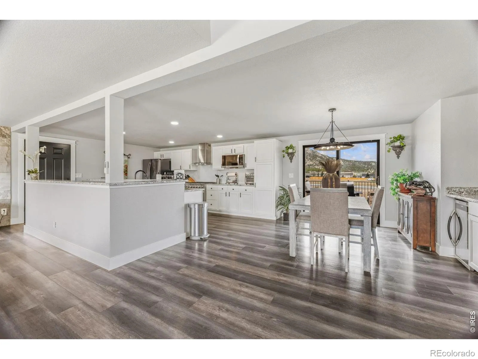 Wake up to Twin Sisters out your front windows and end the day watching the sun drop behind the Continental Divide from your back deck. This is 360-degree mountain living in the heart of Estes Park. 1659 High Pine Dr has been completely remodeled top to bottom, every surface, every detail, and it shows the moment you walk in.The main level lives the way a mountain home should. Kitchen, dining, and living area all open to each other and to the views beyond, with a gas stove and counter space built for someone who actually cooks. One of three bio-fuel fireplaces anchors the room. The primary suite is on this level, and it’s the kind of room that changes your morning: a two-way fireplace shared between the bedroom and the soaking tub, light pouring in, nowhere you need to be just yet.The lower level is its own world. A full kitchen, second laundry, an ensuite bedroom, two more bedrooms, and a private entrance from outside. Guest quarters, extra living space, room to spread out. However you use it, it’s finished, independent, and ready.Step out onto the back deck and you’re facing Lumpy Ridge and the Continental Divide with a flat lot stretching out below you. The street dead-ends past your driveway. The only sound is what the mountain gives you. Lake Estes Marina is less than a mile down the road, downtown is under two, and the Fall River entrance to Rocky Mountain National Park is about six and a half miles up the road. A/C, nearly three thousand square feet, five bedrooms, four baths, two-car garage with extra storage.Step out on the deck. Let the view tell you you’re home.