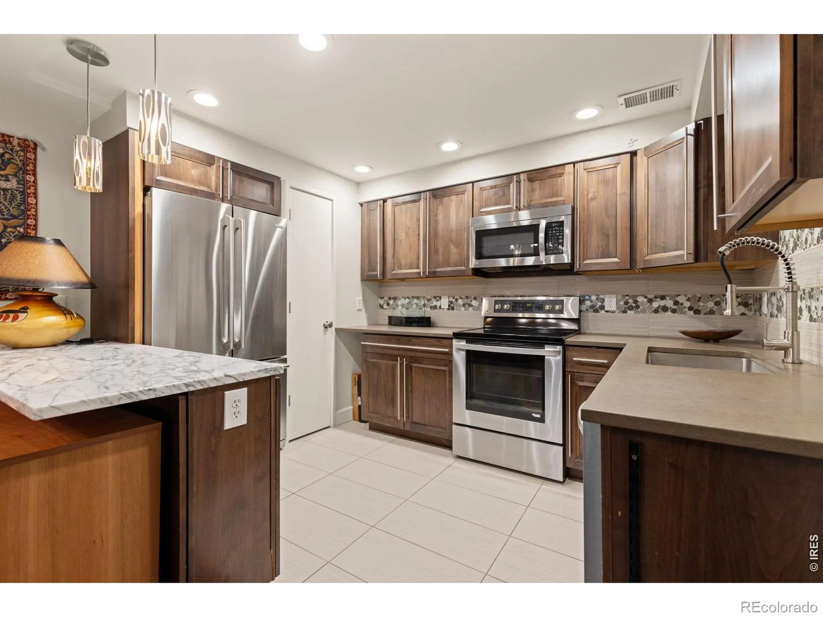 This stunning, light-filled remodel blends elevated design with an unbeatable Boulder lifestyle-just steps to trails and minutes from everything you love. Inside, a bright, airy main level unfolds beneath a newly expanded, vaulted kitchen ceiling with skylights, flooding the space with natural light. The fully reimagined kitchen is the heart of the home, featuring all-new custom cabinetry, quartz slab countertops, floating wood shelving, a pantry with rolling shelves, a KitchenAid refrigerator, Bosch dishwasher, and a sleek hood-perfect for everyday living and effortless entertaining. The adjacent living space is anchored by a new gas fireplace, while walls of windows frame sweeping foothill views and create seamless indoor-outdoor flow to the beautifully landscaped backyard and expansive new patio. Upstairs, the serene primary suite offers a true retreat with new Pella windows, a spa-like ensuite, and a custom-built closet with sliding doors. The hall bath is fully remodeled, and the front bedroom has been thoughtfully split into two, plus the convenience of upstairs laundry. The fully finished basement adds flexibility with its own kitchen, bedroom, and laundry-ideal for guests or multi-generational living. Extensive upgrades include all-new paint (interior/exterior), smooth-finish level 5 drywall, wide trim, refinished flooring, a new staircase and railings, new siding and stucco, a hail-resistant roof, new doors, and a dedicated heat pump for the kitchen addition. Outside, enjoy lush landscaping with garden paths, raised beds, a sprinkler system, and breathtaking foothill views. Close to Wonderland Lake, Lucky’s Market, and community amenities including a heated saltwater pool and tennis courts-this is the Boulder lifestyle.