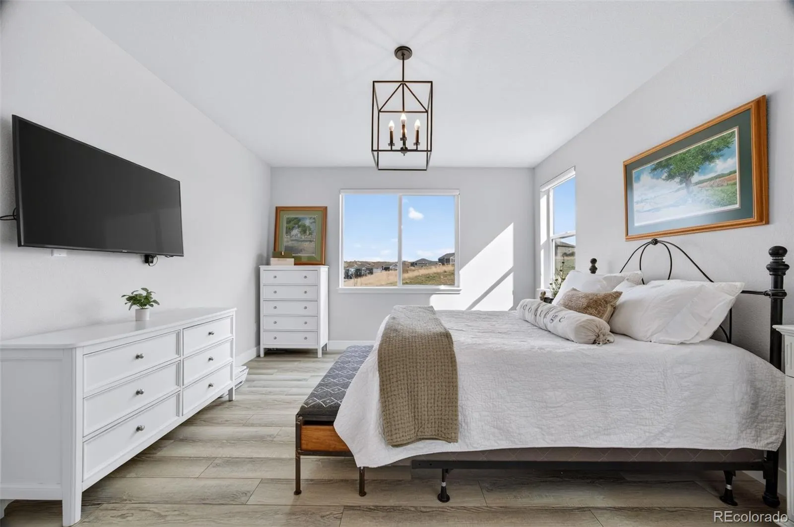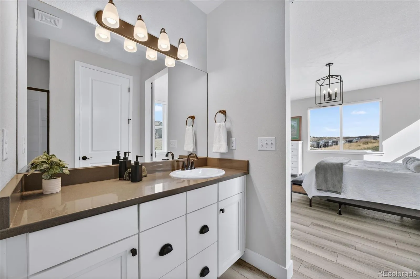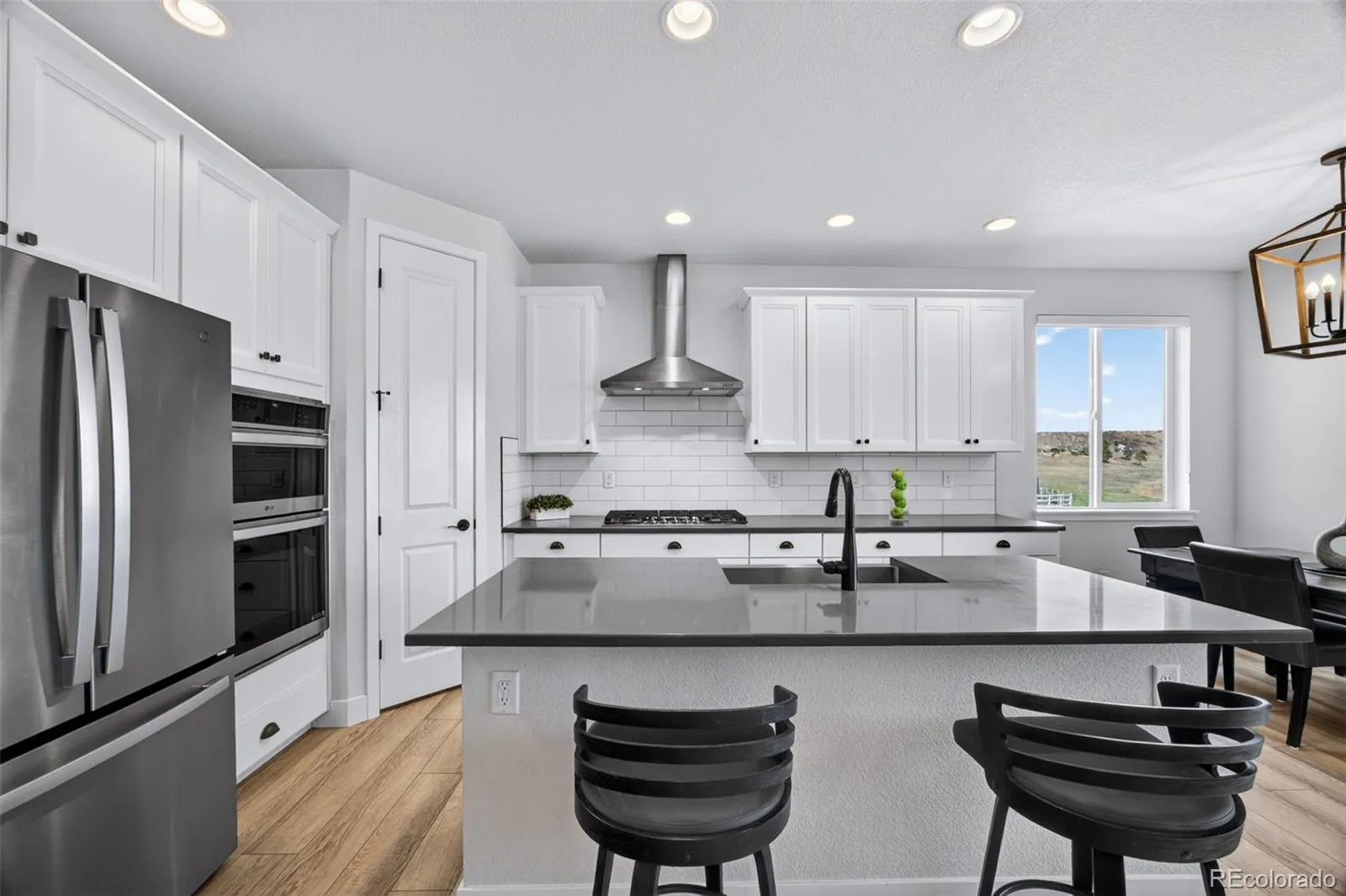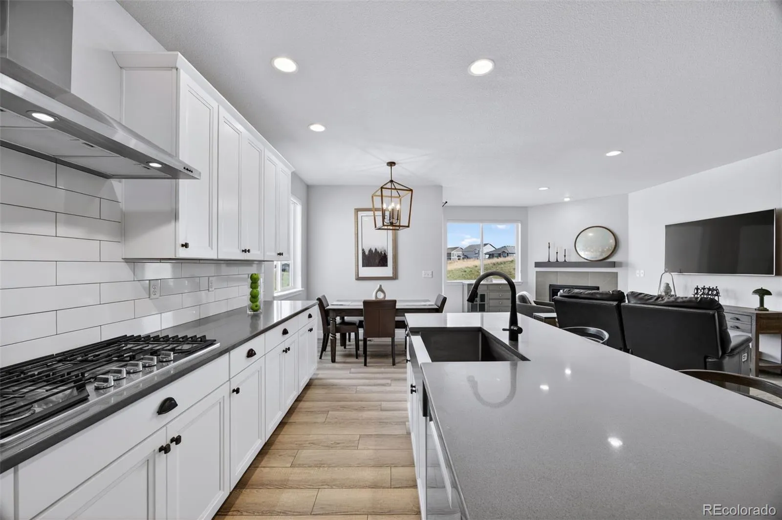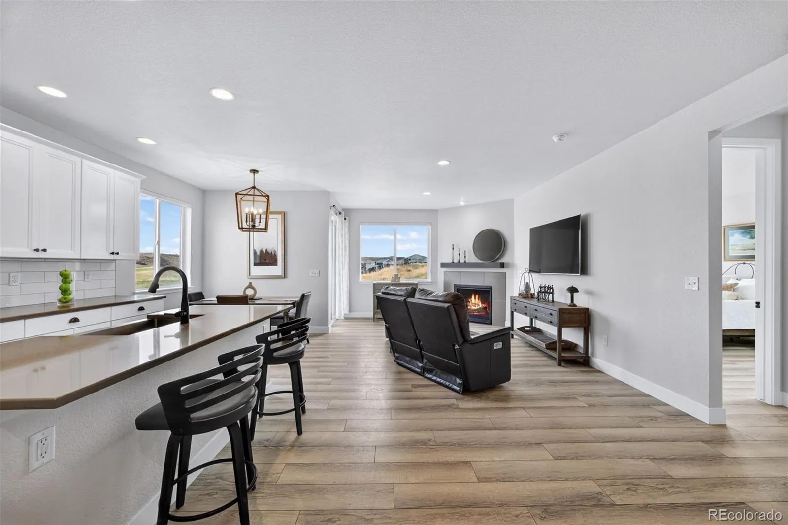 This beautifully maintained, move-in ready ranch-style home offers the perfect blend of comfort, style, and effortless living. From the moment you arrive, you’re welcomed by a charming front porch—an inviting spot to enjoy your morning coffee and ease into the day. Inside, the main floor features two spacious primary bedrooms, each with upgraded en-suite bathrooms and large walk-in closets, creating private retreats. The open-concept layout flows seamlessly, luxury laminate flooring surround the gas fireplace with sweeping grassland views and the quiet beauty of local wildlife. At the heart of the home, the kitchen is designed to impress and gather. It features a gas cooktop, new oven and microwave, and a beautiful quartz island with seating—perfect for casual meals, entertaining, or simply staying connected while cooking. A thoughtfully located main-floor laundry room for everyday ease. The fully finished basement expands your living space with a large second family room and two additional guest bedrooms and a beautifully updated guest bathroom provide comfort and privacy, while ample storage keeps everything organized. Only a five steps lead down to the backyard that backs to open space with maintenance free turf and raised garden beds. A deck complete with a plumbed in gas grill and gas fire pit making outdoor living both easy and enjoyable. Sellers performed a sewer scope and the roof is 2 years old, upgraded Hunter Douglas privacy blinds throughout the main level. Ideally located to the Recreation Center that provides pool, fitness center, tennis, and a nearby dog park. The Rec Center hosts on going community events that make this neighborhood the one you call home.