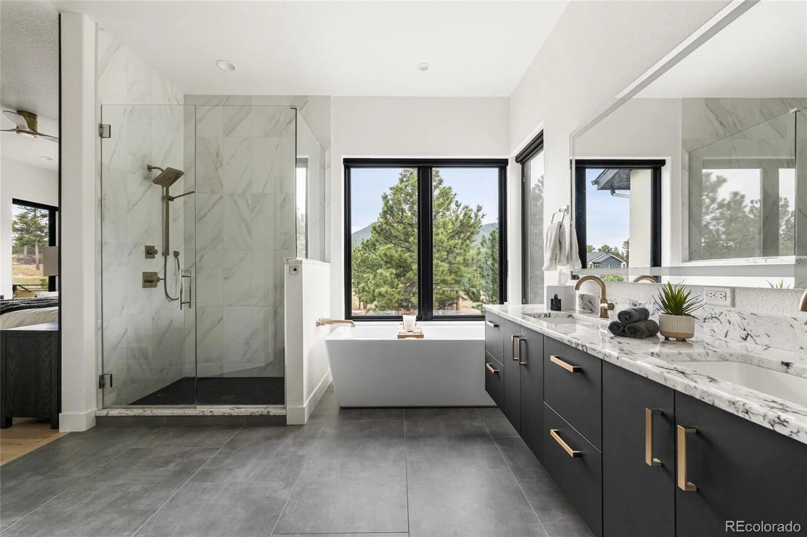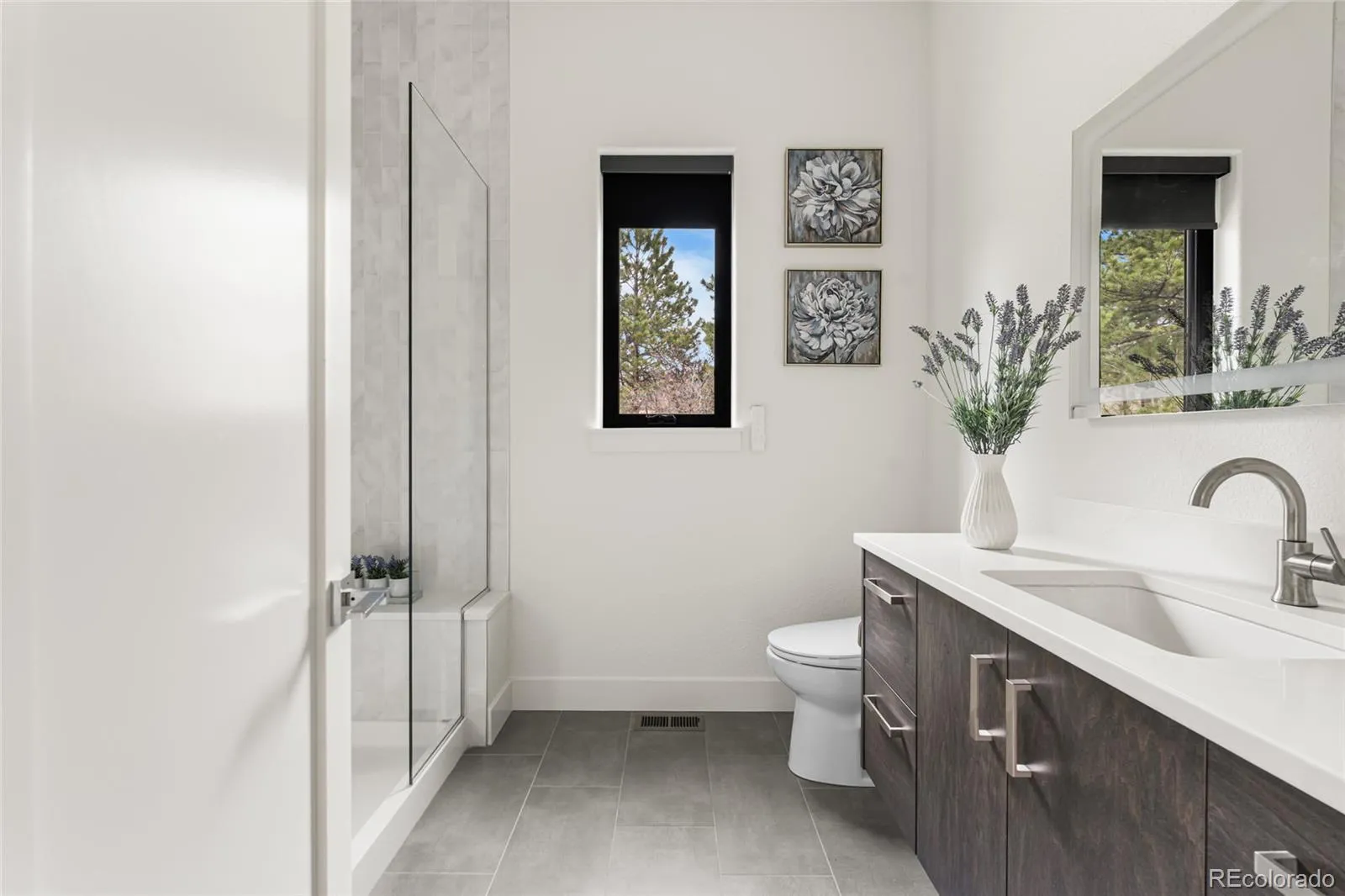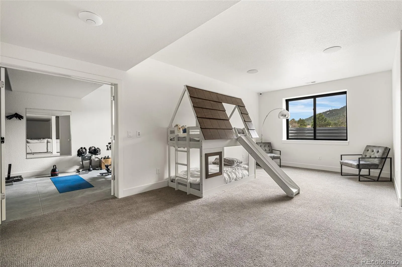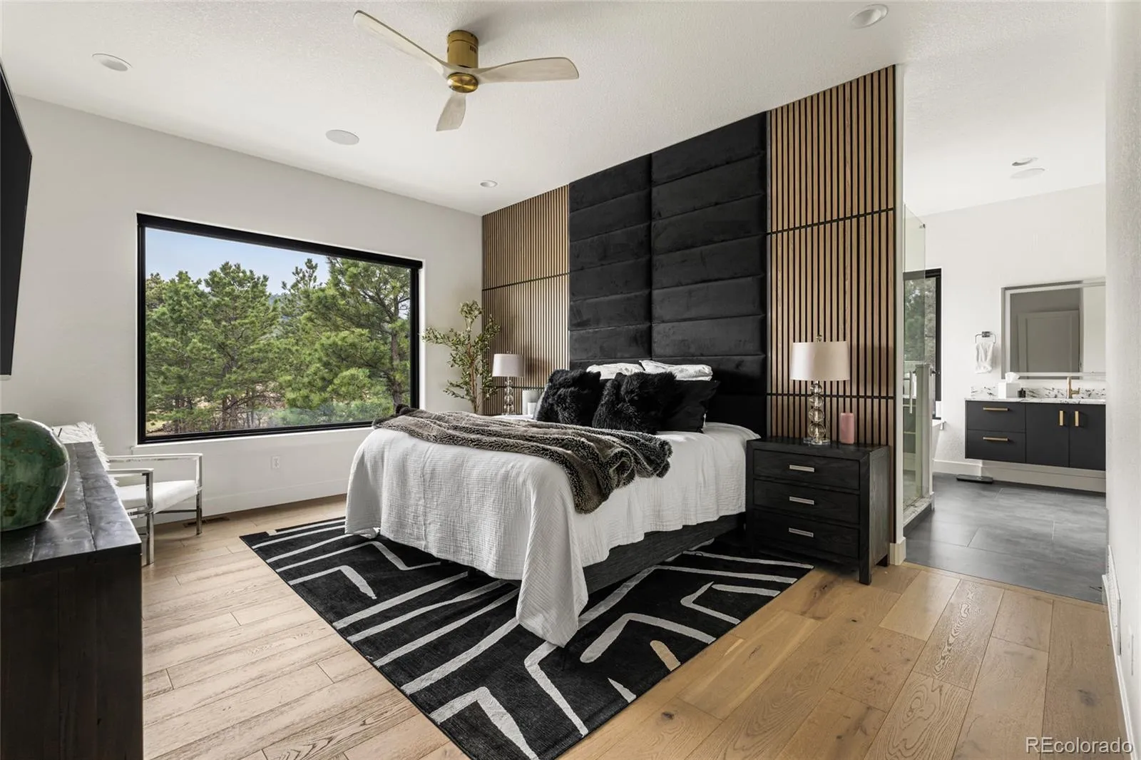 Experience the perfect blend of Colorado’s rugged beauty and modern sophistication on nearly five pristine acres in Larkspur. This custom-built estate offers a true mountain retreat lifestyle with easy access to Castle Rock, I-25, and the Front Range as well as Costco and a shopping center just 10 minutes up the road. Inside, 10-foot ceilings and curated lighting set a tone of effortless luxury. The expansive great room is anchored by a dramatic floor-to-ceiling cold-rolled steel fireplace, while oversized windows frame stunning Rocky Mountain views. The gourmet kitchen is designed for both performance and entertaining, featuring an 8-burner gas range, double wall ovens, built-in refrigerator, and premium finishes, all flowing seamlessly into the main living spaces. The primary suite offers a private retreat with a spa-inspired five-piece bath, a spacious walk-in closet, and direct access to the laundry room. The main level also includes a dedicated office and two additional bedrooms. The finished basement expands the home’s footprint with media and gathering spaces, a home gym, sauna, private guest suite, and a large unfinished area ready for customization. Modern living is elevated with gig-speed fiber internet, whole-home wiring, mesh Wi-Fi, and a built-in sound system extending to the covered Trex deck. Unlike typical mountain properties, this nearly 5-acre lot is remarkably flat, offering rare usability for outdoor living, events, or recreation. Enjoy low-maintenance turf, professional xeriscaping, and a private hot tub perfect for stargazing. A rare opportunity to own a legacy property that delivers luxury, privacy, and convenience without compromise.