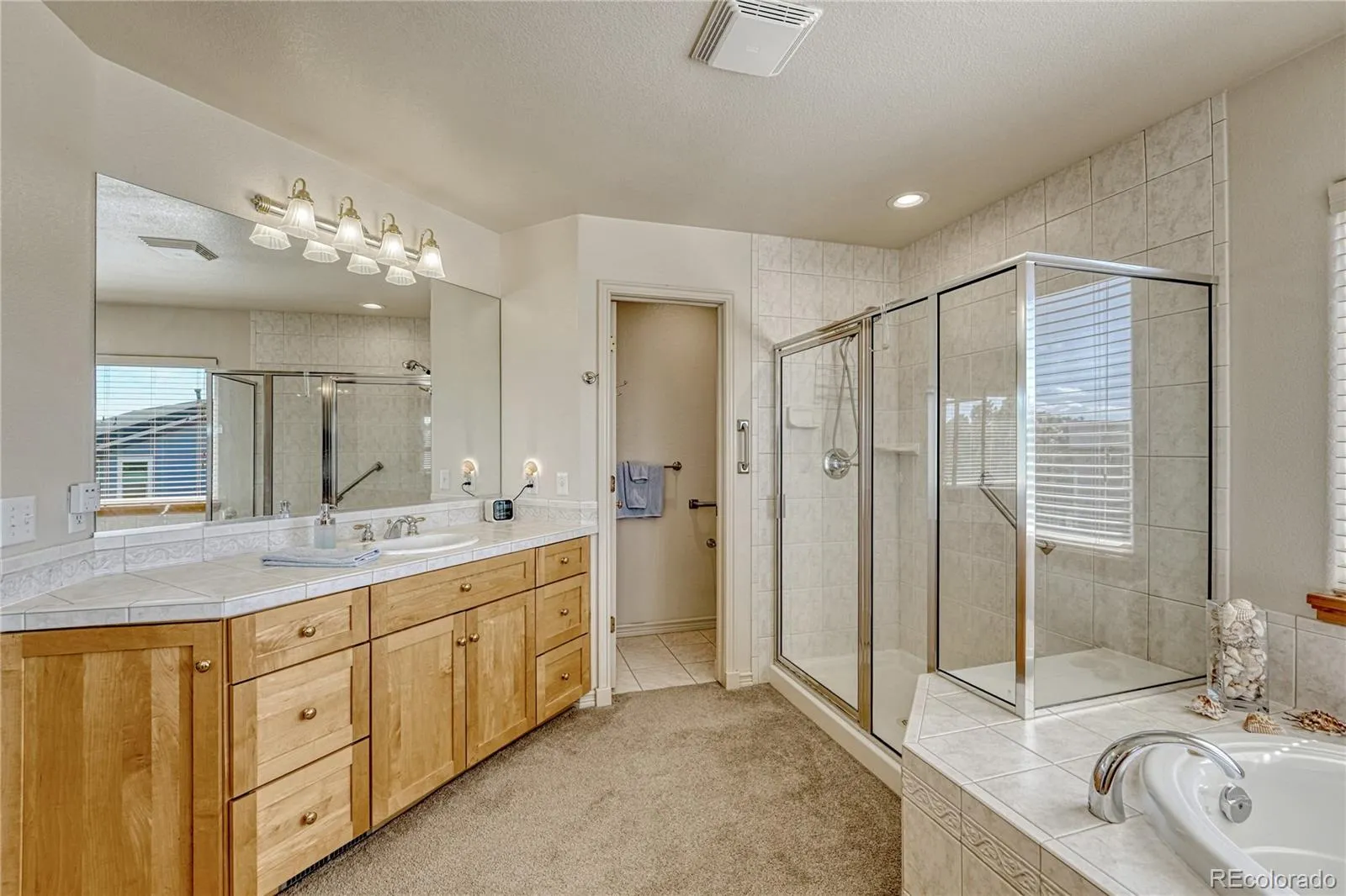 Upstairs, the primary suite includes a five-piece bath and separate walk-in closets. Two secondary bedrooms share a full J&J bath, while an additional upper-level guest suite includes its own three-quarter ensuite bath with a walk-in shower. A dedicated laundry room with built-in storage & a folding counter adds everyday convenience.
