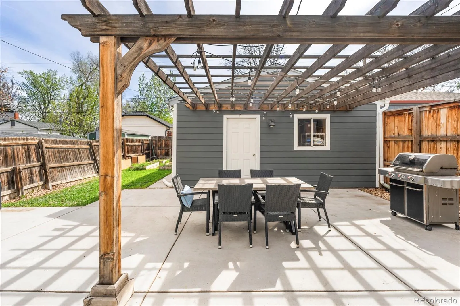 Poised in the heart of Platt Park, just a half block from the park itself, this turn key 3 bed, 2 bath home is defined by elevated finishes and thoughtful design. A charming front porch welcomes you inside, where sun drenched interiors, rich wood floors, and a seamless open flow create an immediate sense of warmth. The living room connects effortlessly to the dining area, where custom built in bench seating adds both character and function. The kitchen is a true standout, curated with top tier finishes and appliances. Built in Wolf refrigerator and range anchor the space, complemented by a Sub Zero wine fridge and beautifully crafted custom cabinetry. Two main floor bedrooms offer flexibility for guests, family, or a home office, each with California Closets systems. A beautifully updated full bathroom sits between the bedrooms, featuring timeless finishes and Kohler fixtures. The large main floor mudroom connects the kitchen to the backyard and incorporates custom built in storage with laundry. Finished basement has a spacious flex family room, complete with custom sound hookups for a surround sound experience, along with an additional bedroom and full bathroom for guests or extended living. Outdoors, the fenced backyard is a natural extension of the home, with raised garden beds enriched with organic compost and mulch, an automatic irrigation system, and a pergola for relaxing or entertaining. Sprinkler zones serve both the front and back yards. An oversized two car garage provides generous space for vehicles and storage.