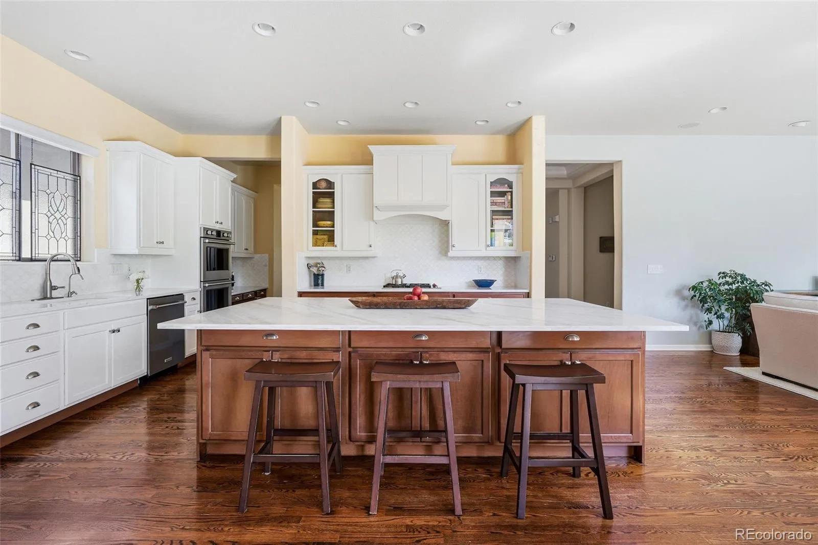 Discover refined Colorado living, perfectly positioned near Bluffs Regional Park and its expansive trail system. This stunning 4-bedroom, 4-bath home blends refined elegance with meticulous design. A dramatic entryway greets you, where soaring tall ceilings and recently installed hardwood floors enhance the warmth and elegance of the main living spaces. The sun-filled kitchen and family room form the true heart of the home, designed for effortless entertaining and everyday living. The kitchen showcases a spectacular custom island topped with honed white marble, complemented by white quartz countertops, gorgeous tall cabinetry, double ovens, undermount sink, designer arabesque tile backsplash, spacious butler’s pantry, and a wide island with seating for four! Just beyond, the private courtyard and garden create a beautiful indoor-outdoor living experience. Professionally landscaped with sandstone pavers and a dining patio, this serene oasis comes alive with flowers and vines in the warmer months. Upstairs, the serene primary suite offers dual walk-in closets and a luxurious ensuite bath. Two additional bedrooms share a Jack-and-Jill bathroom, while many windows capture beautiful views of the Bluffs. A unique feature of the home is the separate upper-level wing with a large loft and half bath, ideal for a home office, media room, or private retreat. Additional highlights include a large laundry and mudroom leading to a finished two-car garage with coated flooring, a new furnace (2024), and thoughtful outdoor improvements including newly planted aspen trees and a new fence. The expansive basement features a finished fourth bedroom and abundant space ready for future expansion. Ideally located near the light rail, the Lone Tree Recreation Center, Arts Center, library, an abundance of shopping and dining, and the gorgeous bluffs trails and parks. This exceptional home offers the perfect blend of luxury, privacy, and convenience—Lone Tree living at its finest.