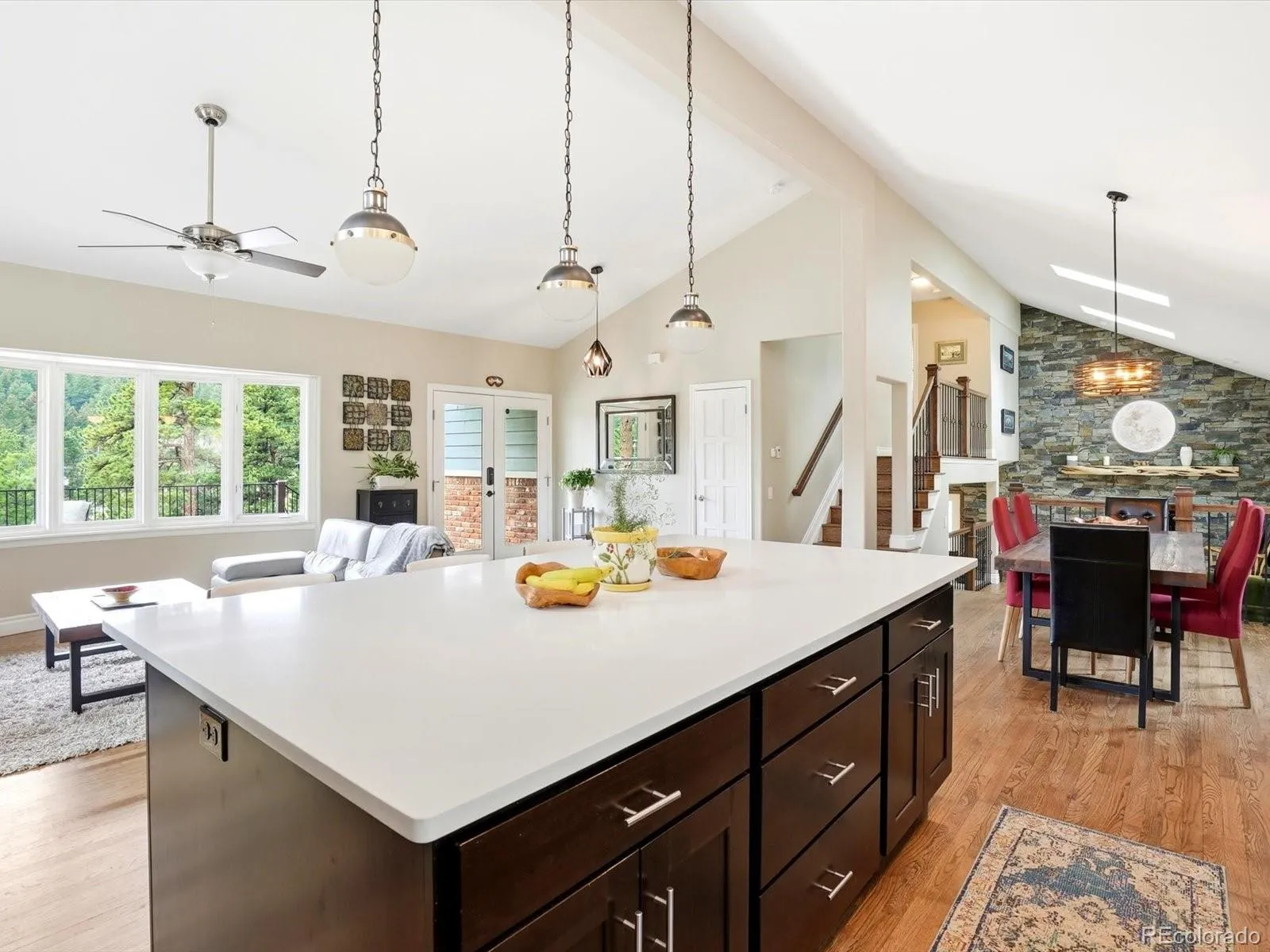 If you’ve been waiting for that unmistakeable “this is the one” feeling, this might be it. Welcome to this bright, light filled and beautifully updated 4-bedroom home in Morrison, where vaulted ceilings, skylights, and wide-open living spaces make everything feel just a little more elevated. The gleaming wood floors, elegant travertine tile, in-floor heat, and temperature controlled pellet fireplace create a warm, inviting atmosphere. The thoughtfully designed kitchen features quartz countertops, custom cabinetry with pull-out drawers, and newer Frigidaire Gallery and Bosch appliances, perfectly tailored for both everyday living and effortless entertaining. Downstairs, the basement is ready for game days, movie nights, or hosting friends, complete with a high-end custom wet bar, making it an entertainer’s dream. Outside is where this property really shines. Two fully fenced acres give you room to breathe, let the dogs run, and actually enjoy the tranquil space and peaceful mountain living. A powered gate adds privacy, while the oversized deck and expansive patio set the stage for everything from morning coffee to summer happy hours. The freshly paved south facing circular driveway is positioned for easy access year round. Wrapped in durable James Hardie siding and surrounded by professional landscaping, this home is as low maintenance as mountain living gets. All of this just 15 minutes to town or Red Rocks Amphitheatre and 30 min to downtown Denver, but far enough away to actually enjoy the quiet. Homes like this don’t come around often. Come take a look… just be prepared to stay awhile.