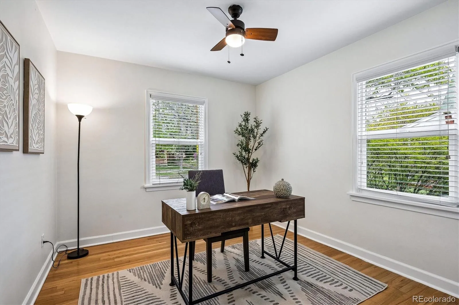 Storybook 1938 Tudor just two blocks from Sloan’s Lake on a quiet, tree-lined street. Rich in charm and thoughtfully updated for modern living, this 3-bedroom, 2-bath home offers the perfect blend of character, comfort, and one of Denver’s most coveted lifestyles. A quaint entry welcomes you into the sunny and inviting living room, which flows into the dining area and beautifully remodeled kitchen, featuring quartz and butcher block countertops, a gas range, a Whirlpool refrigerator and dishwasher, and timeless finishes throughout. Two bedrooms and a recently remodeled full bath complete the main level, while the kitchen overlooks the expansive backyard. The back deck, patio, and large yard create an ideal setting for summer dinners, entertaining, gardening, or relaxing under Colorado skies. The bright lower level offers a spacious family room and a private primary retreat with a walk-in closet and en suite bath, creating a peaceful escape. Extensive updates include a newer roof, windows, furnace, AC, water heater, Trex deck, interior paint, updated wiring, and PEX plumbing. The two garages offer rare convenience, exceptional storage, or workshop flexibility. Enjoy an unbeatable location just 2 blocks to Sloan’s Lake, 4 1/2 blocks to the Highland Recreation Center, and steps from some of Denver’s best restaurants, bars, coffee shops, and boutiques—all within a mile. With easy access to lake trails, paddleboarding, parks, fitness, dining, and neighborhood favorites, this is Denver living at its best—historic charm, modern updates, and an exceptional walkable lifestyle.