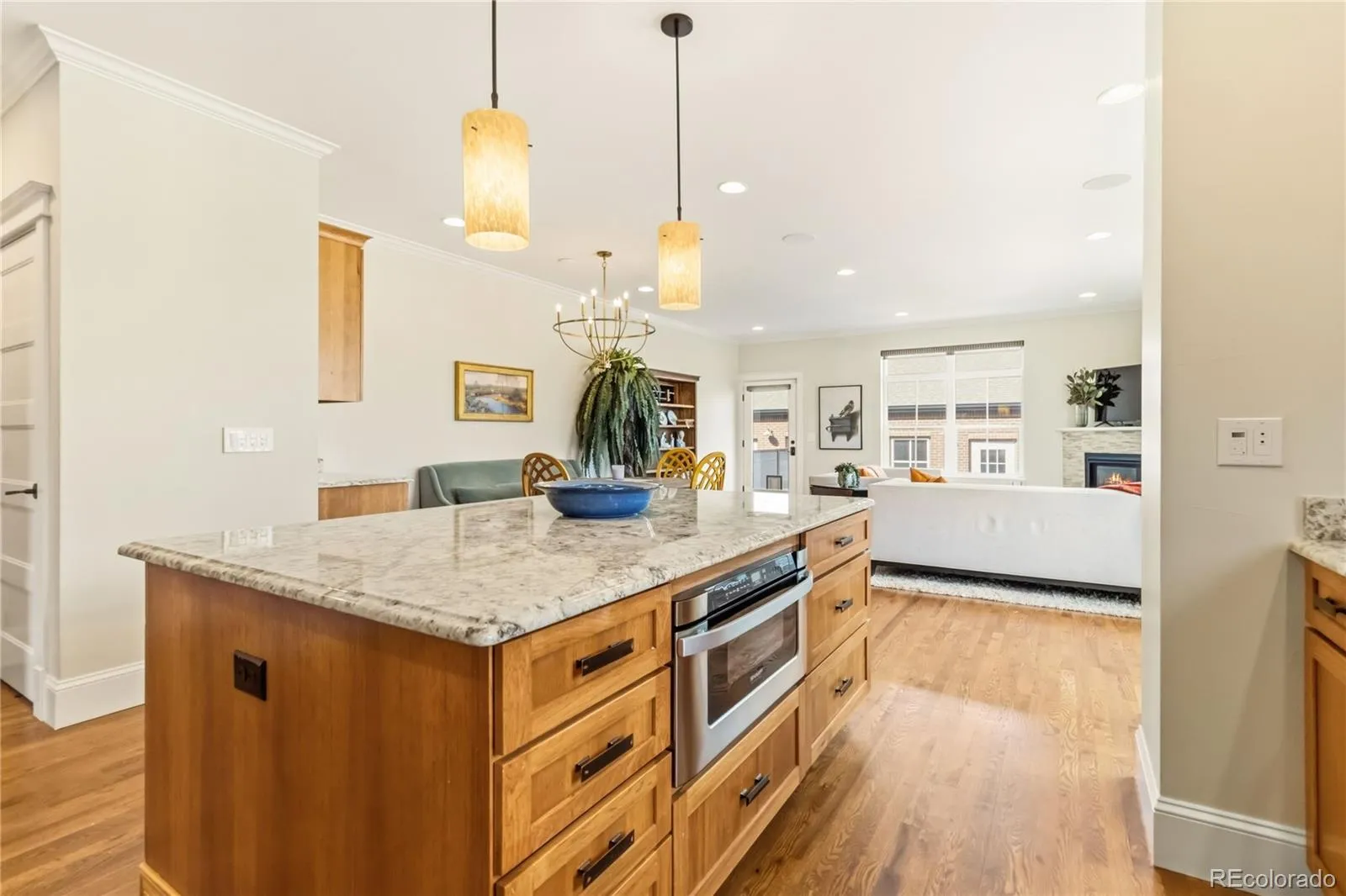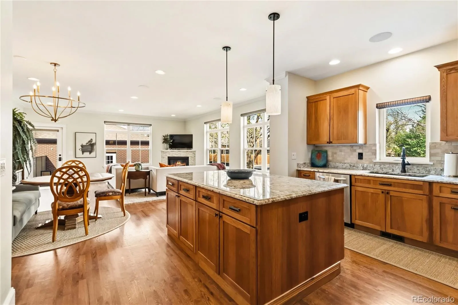 Set in Platt Park and just steps from South Pearl Street, this end-unit residence combines privacy, enduring construction, and true walkability in a way Denver rarely offers. All brick exterior, with triple pane windows. Three exposures flood the home with natural light, illuminating refinished hardwood floors and refined finishes throughout. Designer hardware, custom lighting, and stainless appliances carry a consistent, understated aesthetic.