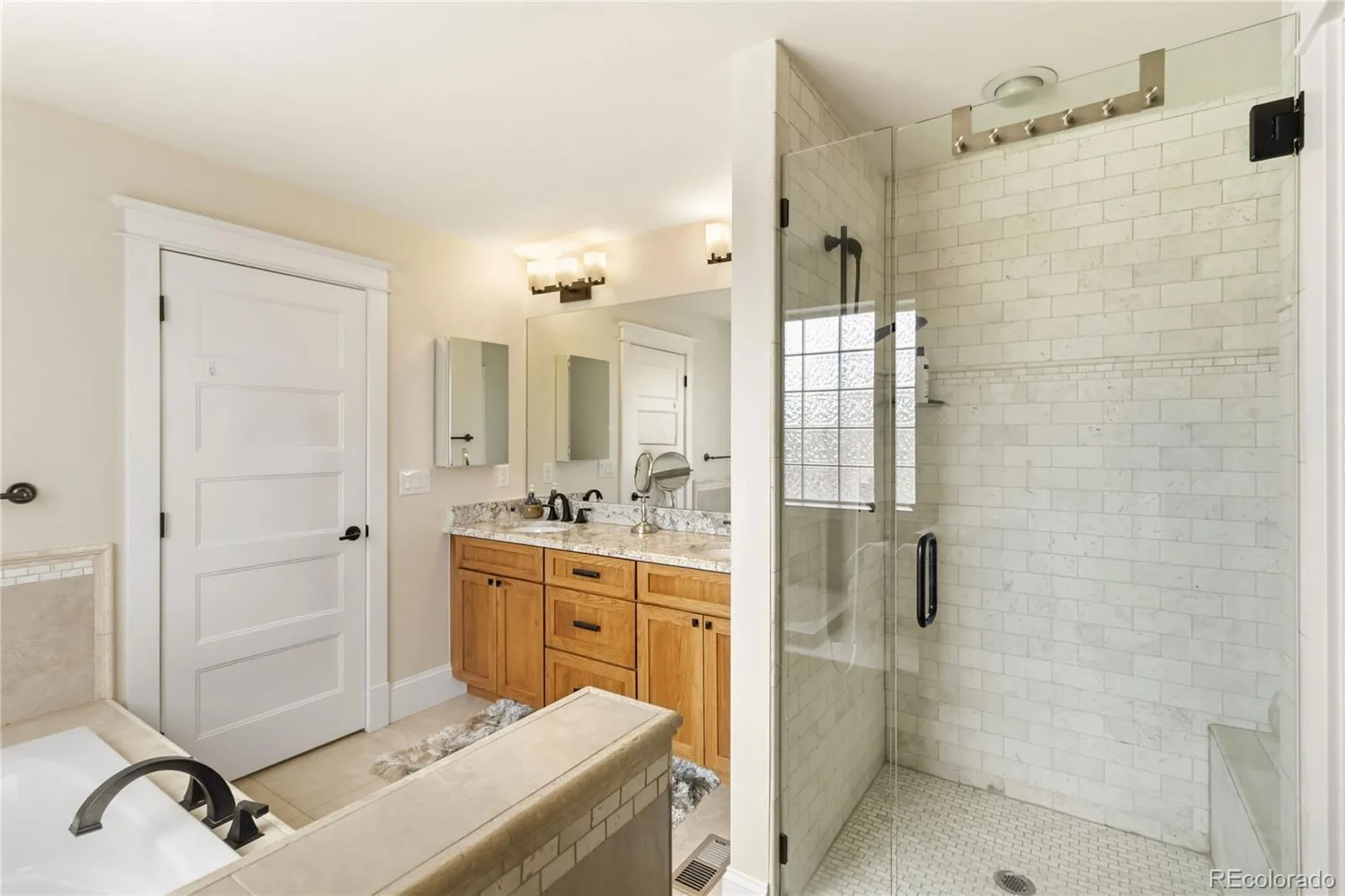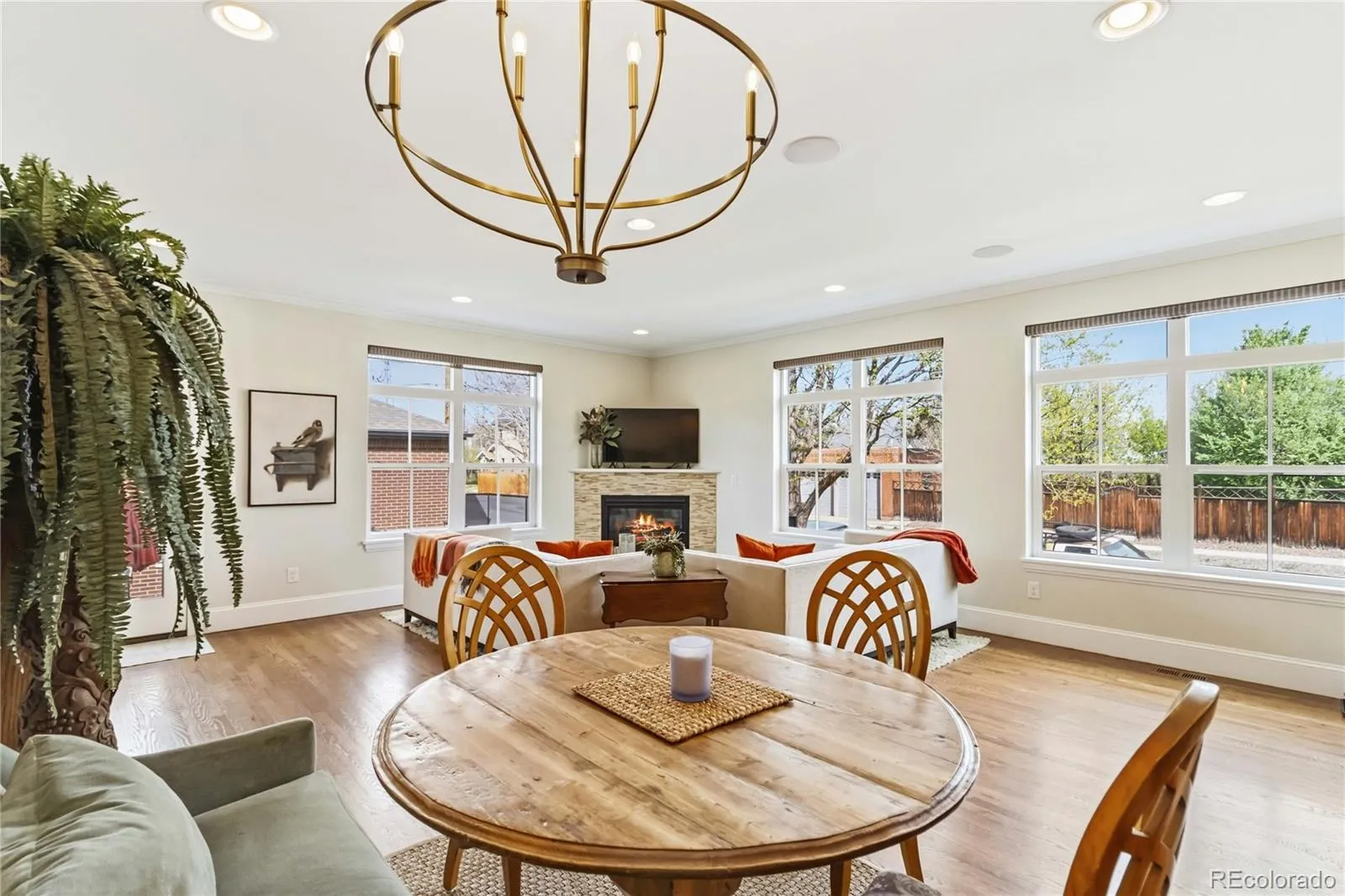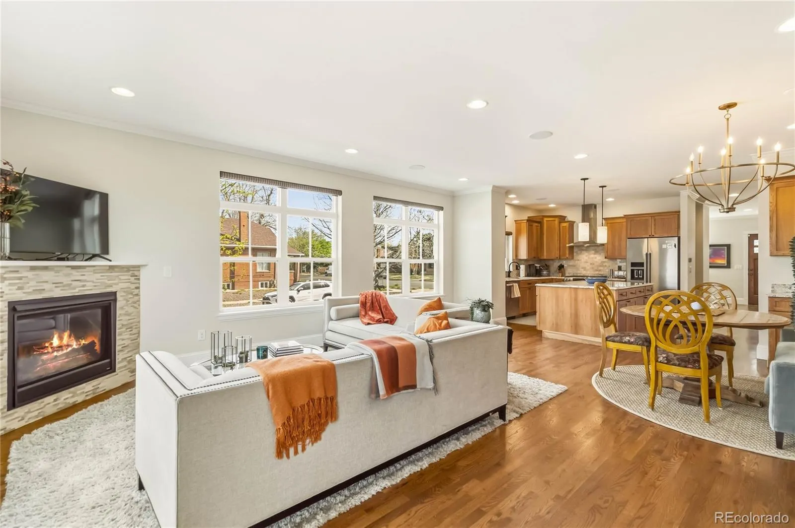 Professionally landscaped and irrigated grounds wrap the property, and a custom paver patio creates a secluded setting for outdoor dining. Each year, the arborist team behind the Denver Botanic Gardens holiday display installs illuminated trees and roofline lighting — equipment conveys, and it has become a neighborhood landmark.