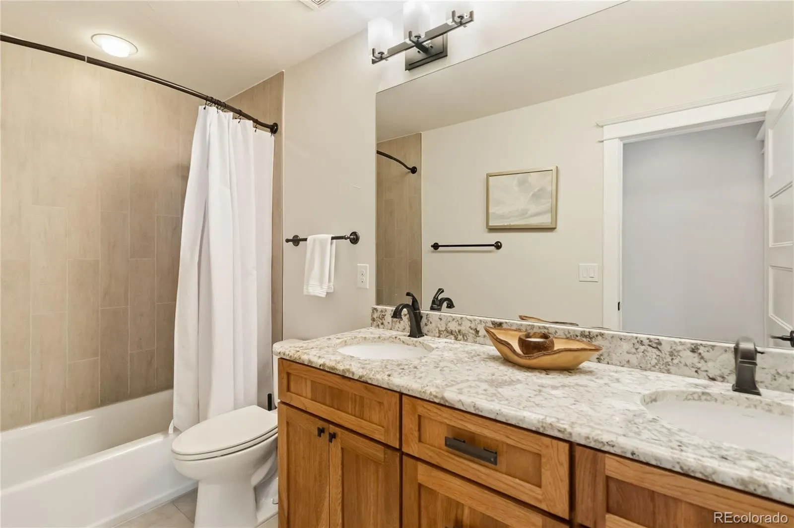 The kitchen features granite countertops, custom cherry cabinets, and pantry storage. Whole-home audio, wired connectivity, and automated window treatments integrate seamlessly into living spaces anchored by a gas fireplace. The primary suite offers custom built-ins and in-suite laundry. A secondary bedroom with adjacent bath and a flexible additional room serve guests, office, or study needs. The basement adds a gathering space with wet bar and wine fridge, a private guest suite, and full bath.