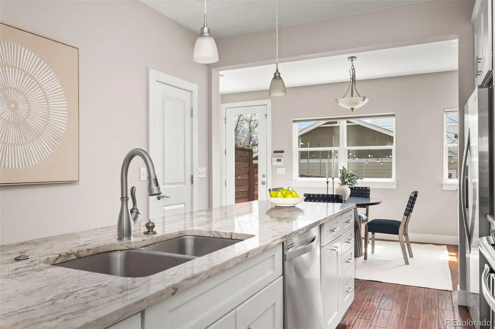 Experience the ultimate Denver lifestyle in this bright, modern, and move-in ready Sunnyside townhome. Perfectly blending urban sophistication with a quiet neighborhood feel, this impeccably cared-for home features an expansive four-bedroom, three-bathroom layout designed with an open-concept flow. The interior radiates with abundant natural light, showcasing stylish hardwood floors, fresh paint, and brand-new carpet throughout. At the heart of the home, the chef-inspired kitchen boasts premium quartz countertops, stainless steel appliances, and bright, airy finishes that make every meal a delight. Beyond the aesthetic upgrades, peace of mind comes standard with a recently installed new furnace, new carpet, cleaned gutters, this home is turn key!