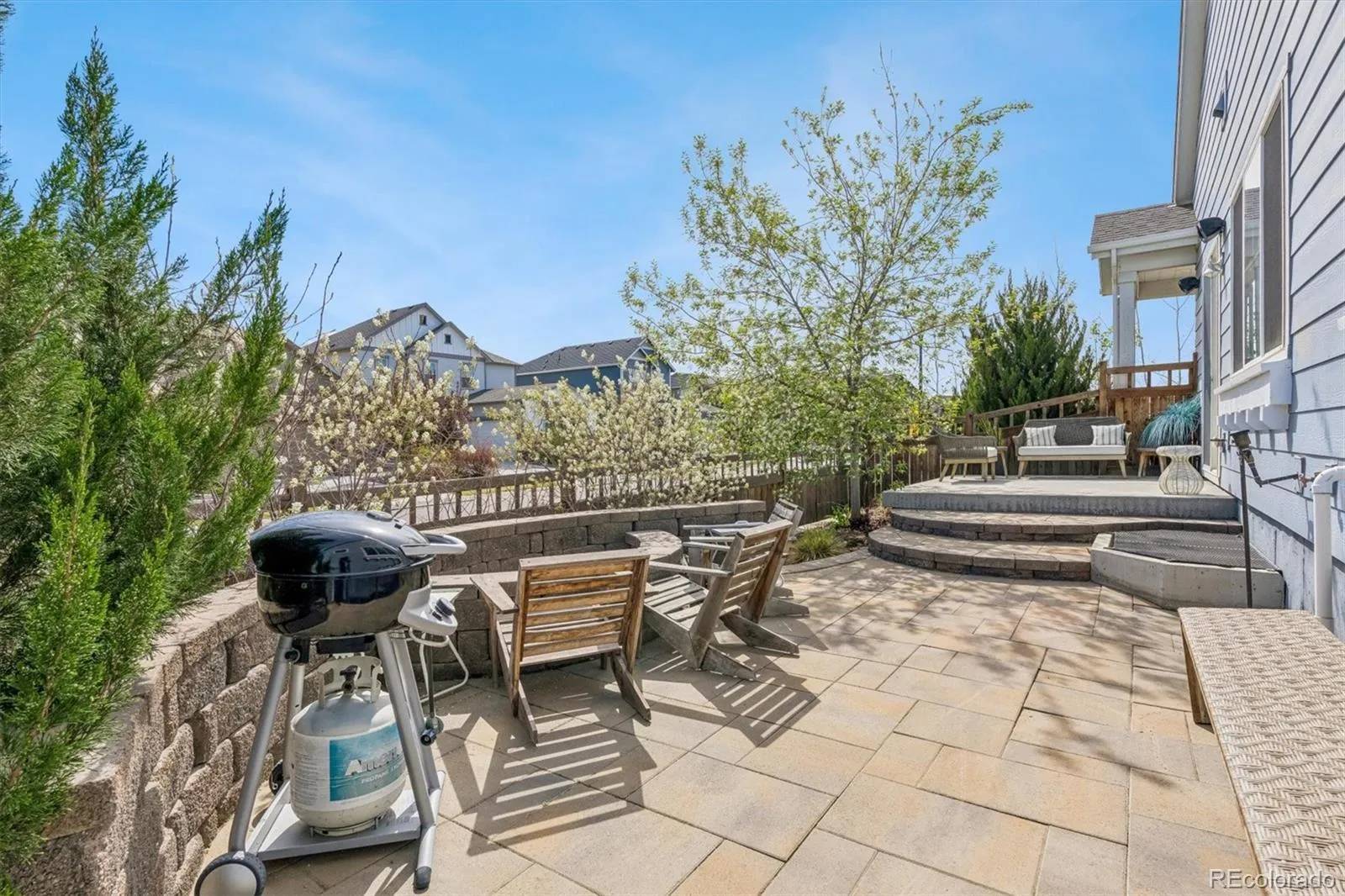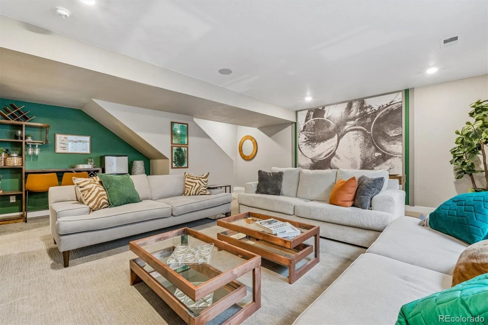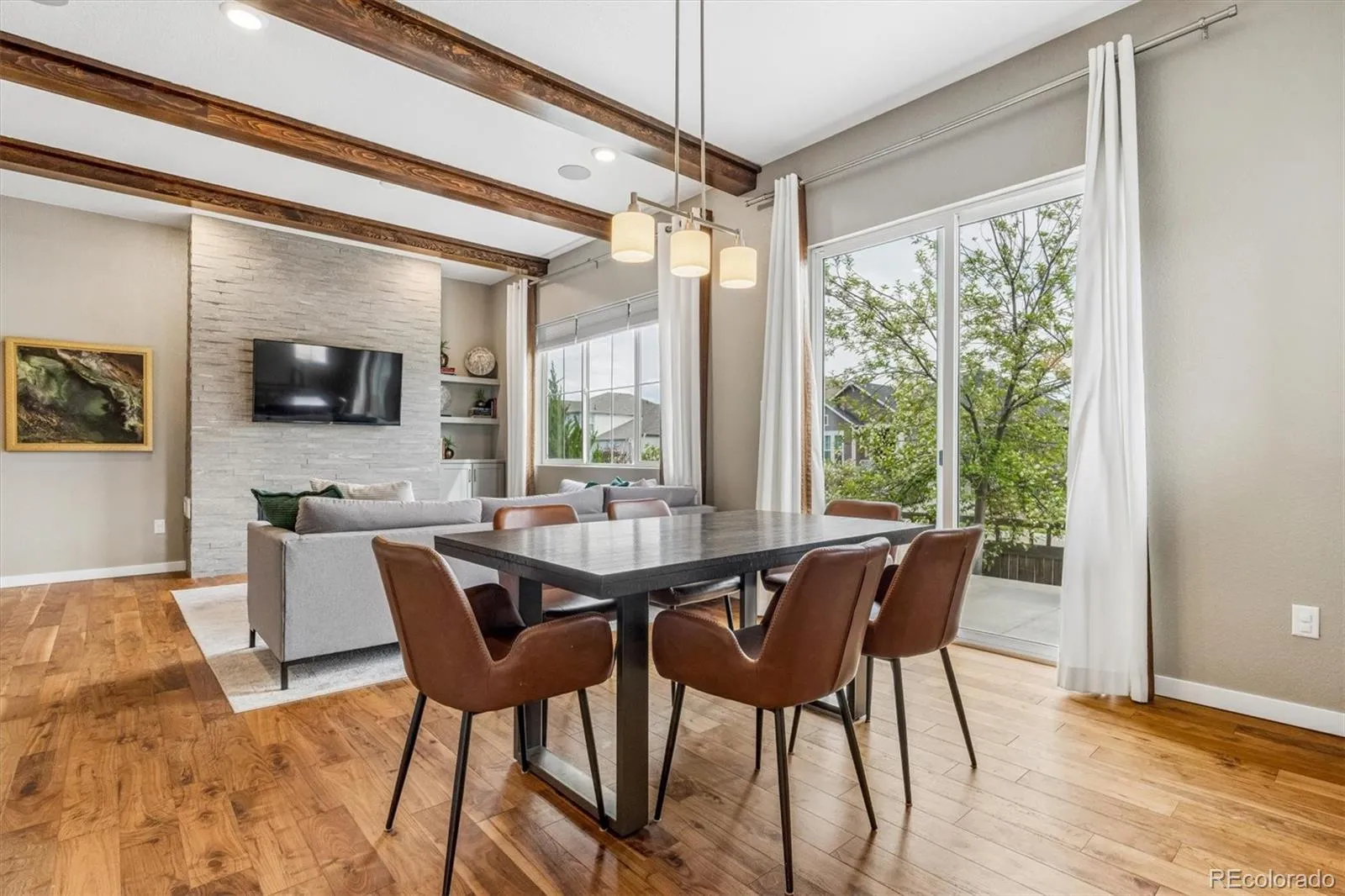Welcome to this beautifully designed 3 bedroom, 3 bathroom single-family home in Brighton, offering a modern open-concept layout and stylish finishes throughout. The kitchen is a true centerpiece, featuring quartz countertops, light grey cabinetry, and stainless steel appliances, all seamlessly open to the main living space. The living room is filled with natural light and showcases wood flooring, stunning ceiling beams, and a sleek stone fireplace, creating a warm yet contemporary feel. The dining area flows effortlessly between the kitchen and living room, with direct access to the backyard—perfect for everyday living and entertaining. The primary suite is a relaxing retreat, complete with a dramatic accent wall, abundant natural light, a walk-in closet, and a private ensuite bath featuring a dual vanity, walk-in glass shower, and toilet room. A secondary bedroom includes its own ensuite bath, ideal for guests or a growing household. The full bath stands out with an eye-catching accent wall, shower/tub combo, sink, and toilet. The conveniently located laundry room includes washer/dryer hookups, a utility sink, and ample cabinet storage, with direct access to the attached 2-car garage. The finished full basement offers exceptional flexibility with a spacious layout perfect for entertaining, relaxing, and/or home gym. A basement bedroom and full bath with stylish tilework provides a comfortable space for guests or additional living needs. Step outside to enjoy the fully fenced backyard, ideal for summer BBQs, gatherings, kids at play, or pets to roam. Located near shopping, dining, trails, and great schools, this home offers comfort, style, and convenience. Come see today!