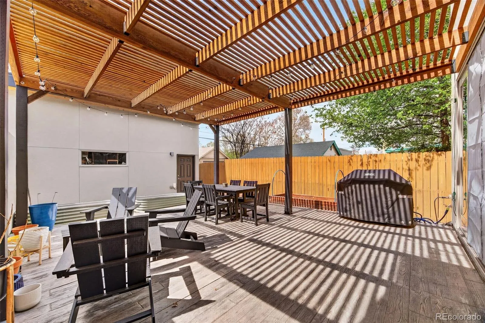 Located in Denver’s vibrant Berkeley neighborhood, two blocks from bustling Tennyson Street, this MAG Builders modern contemporary home offers 3 bedrooms, 5 bathrooms (3 full, 2 half) over 4 floors of thoughtfully finished living space. Tons of natural light fill the open-concept main level with hardwood floors throughout. Relax in the living room with its gas fireplace and access to the expansive back patio and custom pergola that is perfect for outdoor entertaining. Chefs will love the gourmet six burner cooktop and large oven. Entertain your guests as they sit at the quartz kitchen island with room for up to six. Upstairs, the spacious primary suite with a luxurious five-piece bathroom and deep soaking tub is perfect to relax after a long day. In addition, a second bedroom with ensuite bathroom, large walk-in shower, and balcony adds to the modern design of this wonderful home. Up one more floor to the loft/bonus room with wet bar and fireplace. The mountain views of Colorado’s Front Range are stunning from the west facing rooftop deck. The finished basement with a large family room/media room , the third bedroom and full bathroom adds even more flexibility to the living space. The detached 2 car garage is equipped and ready to go for charging your EV. Store all your Colorado gear in the loft storage area of the garage. Enjoy modern construction, low-maintenance outdoor living, and an unbeatable Berkeley location close to parks, dining, retail shops and all that Tennyson Street has to offer.