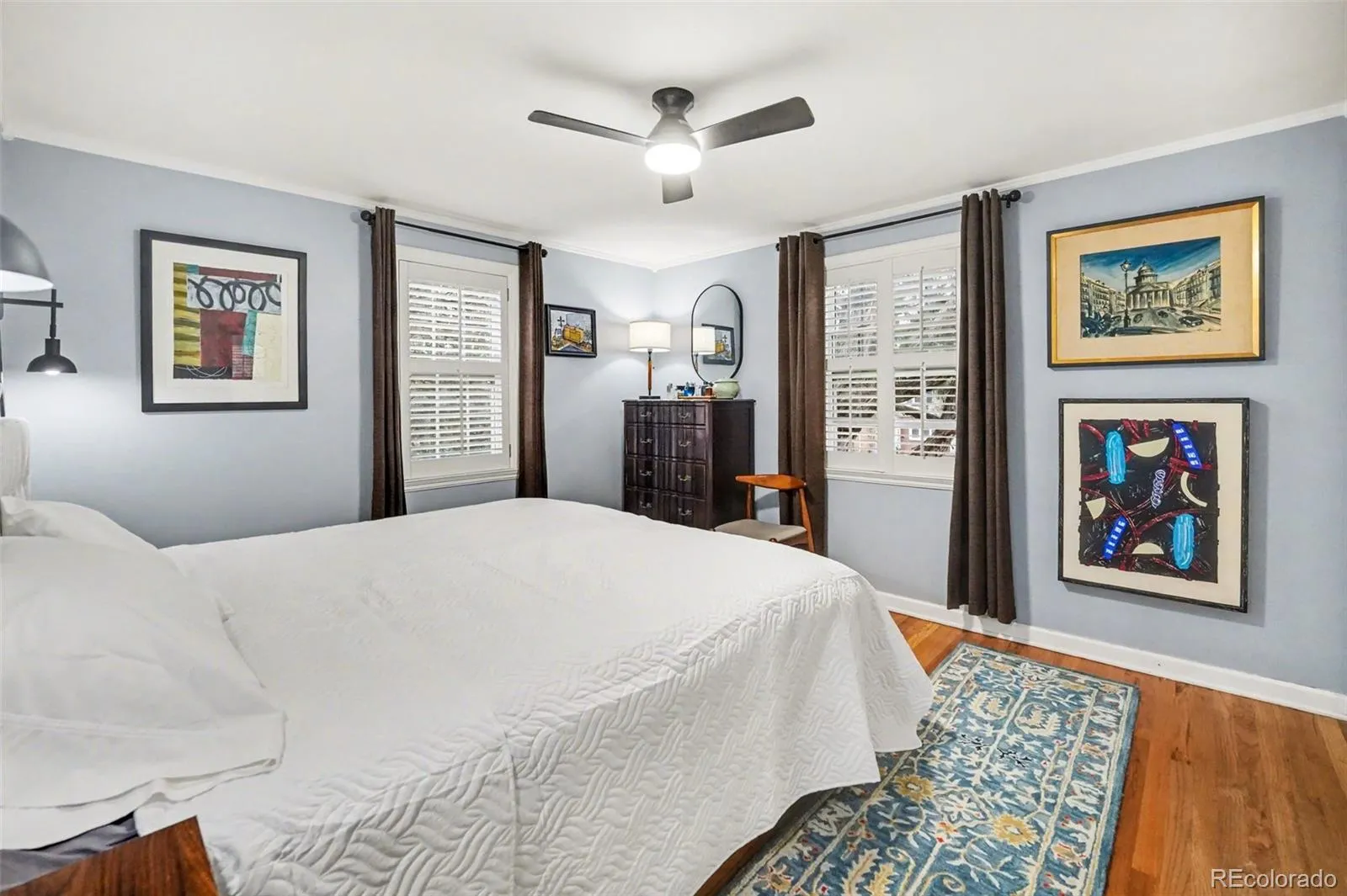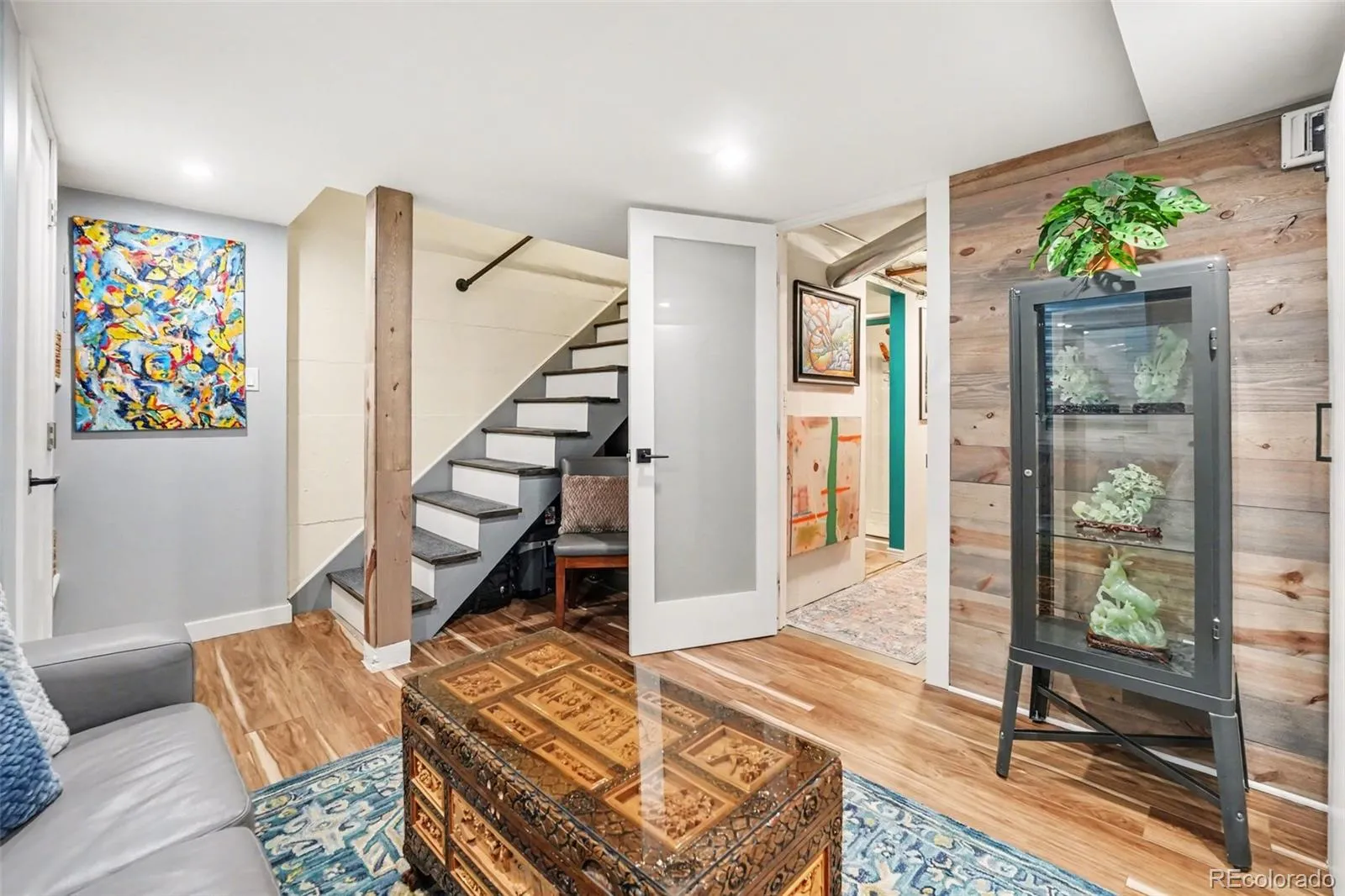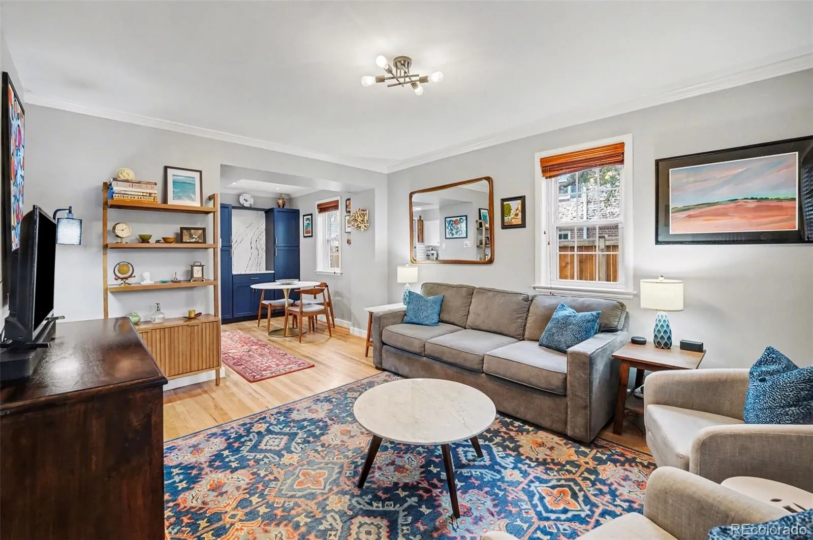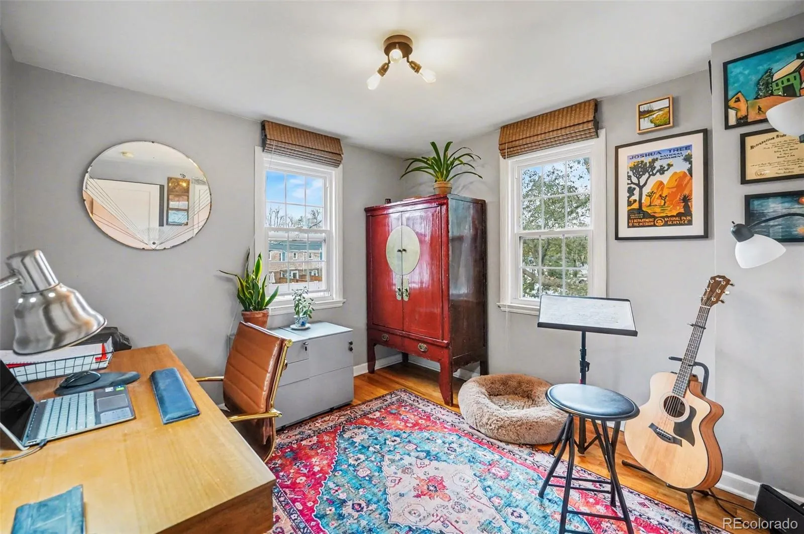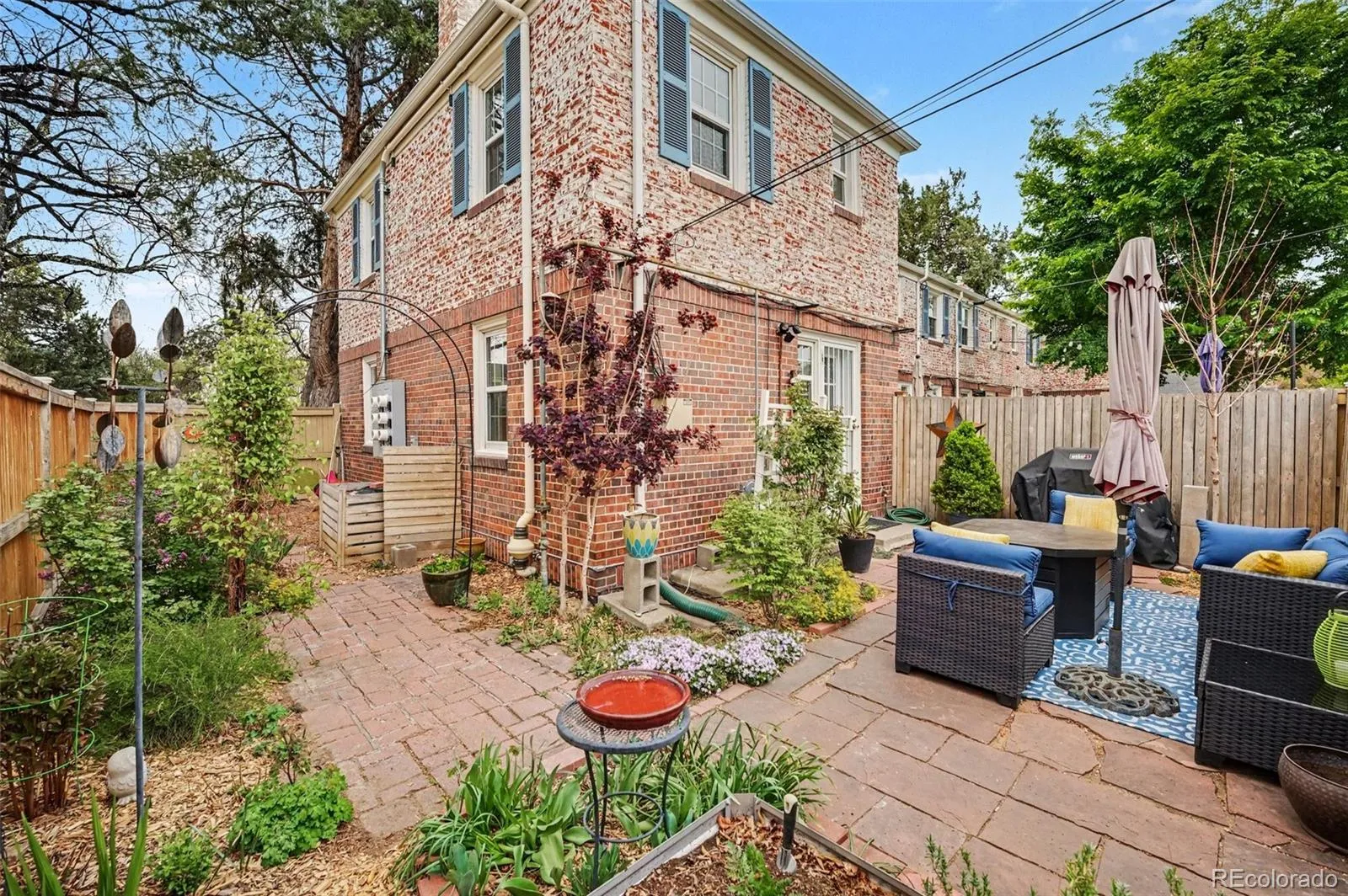 Fantastic 2 story brick townhouse with finished basement. This end unit features a rare wrap around yard enclosed with a privacy fence. This charming home features an open concept-great room on the main level. The kitchen has been remodeled with beautiful quartz counter tops, trendy subway back splash and a peninsula island that creates an eat-in kitchen space. The dining room has additional cabinetry with a quartz counter top and wall. This is a one of a kind-built-in side board/pantry cabinet that elevates this space. The quartz wall is a gorgeous piece of art framed by cabinets. You have got to see this!This living space extends, seamlessly, into the backyard and around to the side yard. Great areas for pets, gardening or entertaining and enjoying our great Colorado outdoors! Upstairs there are 2 bedrooms and a full bath. The wood floors extend through the main level, up the stairs and throughout the 2nd level. The primary bedroom has a ceiling fan and nice windows. The 2nd bedroom is currently used as an office. The full bath has a cool barn door. In the finished basement you will find the 3rd bedroom, a 3/4 bath, a storage room and a utility room with a washer and dryer. A radon mitigation system ensures safe living spaces in this basement. The egress window adds natural light to this space. Artistic designer finishes throughout this townhouse give it character and create a unique home, ready for the next owner. The one car detached garage keeps your vehicle safe from the elements.