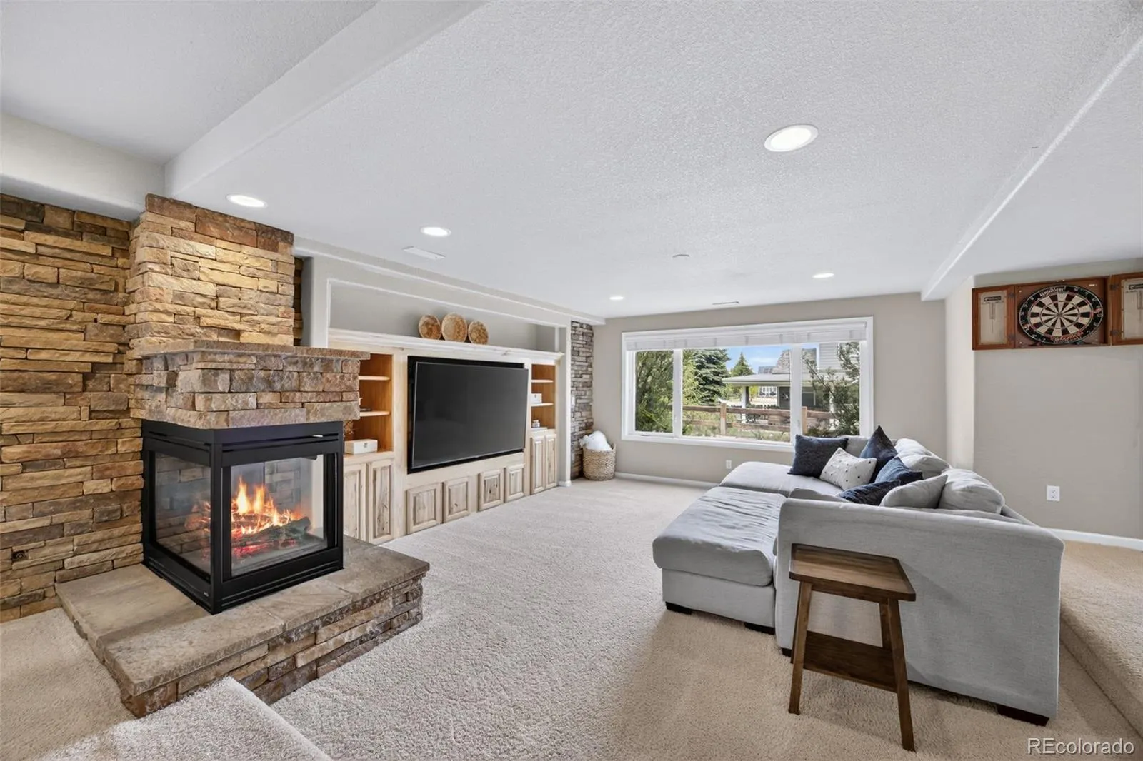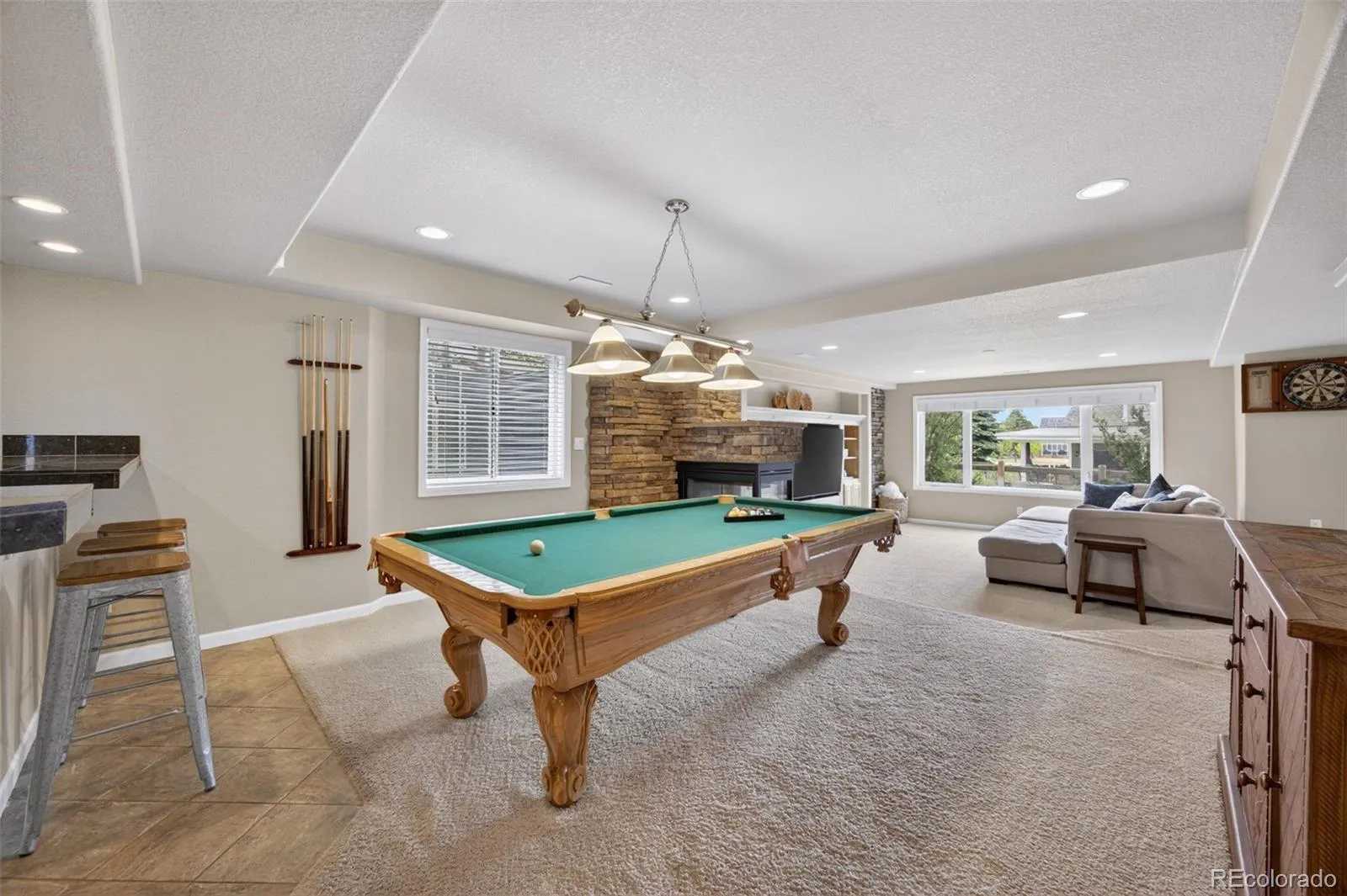 Tucked on a quiet cul-de-sac in sought-after Hidden Pointe subdivision, this beautifully remodeled home blends warmth, style, and everyday livability. From the moment you step inside, the hardwood floors draw you into a bright, inviting main level designed for both comfort and connection. At the heart of the home, the tastefully updated kitchen stands out with a striking waterfall quartz island, walk-in pantry, reverse osmosis filtrations system and an easy flow into the surrounding living and dining spaces. Upstairs, brand-new plush carpet adds a fresh feel to all four bedrooms, including a spacious primary suite with vaulted ceilings and a cozy gas fireplace that creates the perfect retreat at the end of the day. The finished walk-out basement expands the home’s living space with room to gather and unwind, featuring a wet bar, three-sided fireplace, a game room ideal for entertaining, and two additional bedrooms. Outside, the large deck extends the living space outdoors and leads to a patio below with a hot tub, all enhanced by an under-deck drainage system with integrated gutters that keeps the space comfortable and functional year-round. Thoughtful updates bring peace of mind, with the stove, microwave, refrigerator, basement refrigerator, furnace, A/C, humidifier, and washer and dryer all replaced within the last few years. Just minutes from Coyote Ridge Park, residents enjoy pickleball courts, playgrounds, basketball courts, and scenic trails, along with convenient access to top-rated Douglas County schools such as Rock Canyon High School, shopping, dining, and both public and private golf courses.