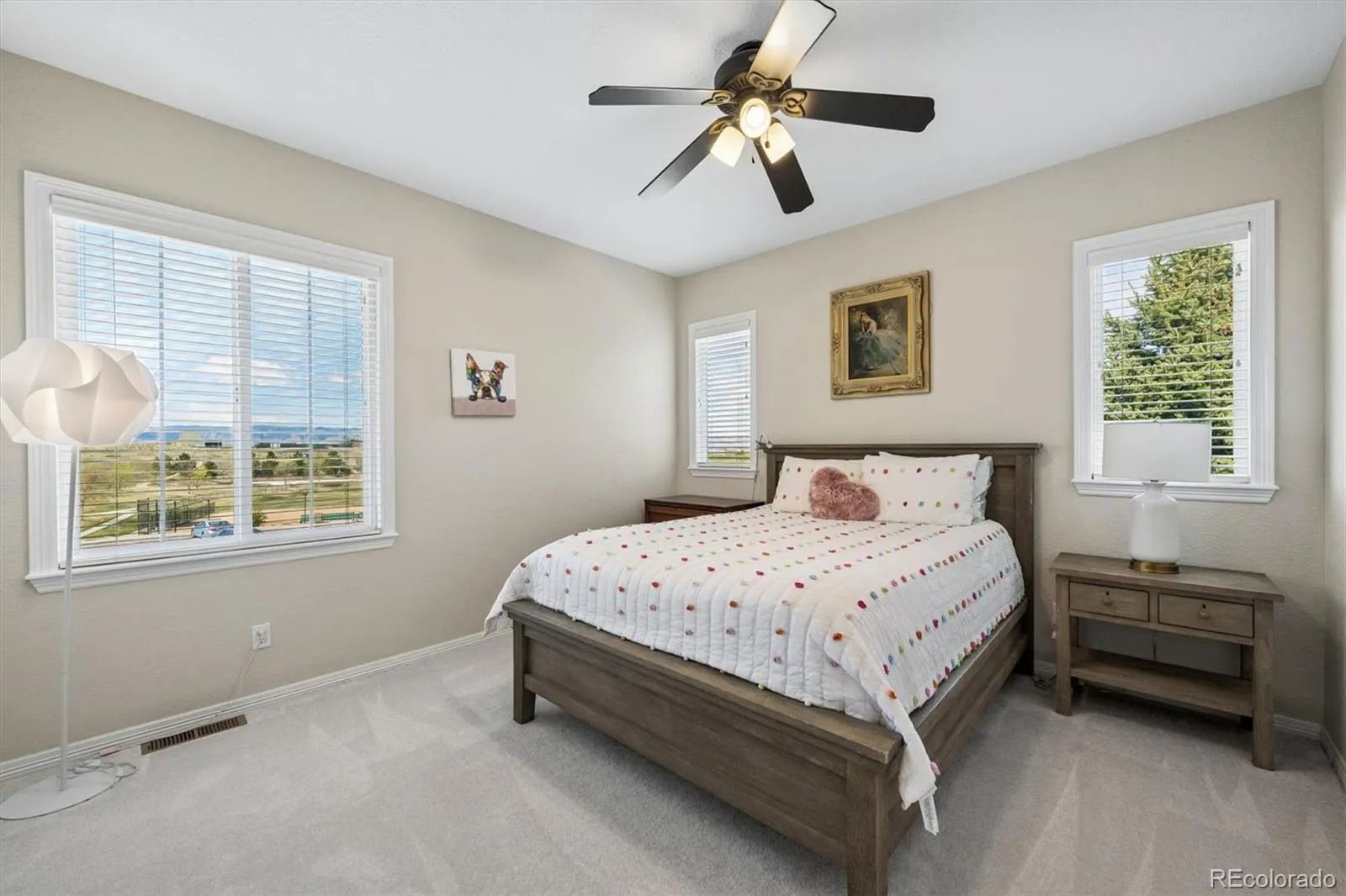 Highly Sought-After Home Just a Year Ago: Sellers sadly relocating out of state for job! Elevated Living in this Exclusive Turnkey Gem in popular Firelight. Premium Lot w/Panoramic Mountain Views & directly across from park, this superbly updated 5 Bed (1 main floor), 4 Bath w/Finished Basement home has many custom touches! Highly impressive open layout featuring custom remodel with removed wall from Dining Room to Kitchen, greatly opening the spaces. Notice the extensive hardwoods thruout main level! Dreamy Reimagined Gourmet Kitchen: ample custom soft-close cabinets, lower drawers & huge island, Bosch stainless appliances including gas range & hood, quartz counters & tile wall/backsplash. Kitchen opens to spacious Family Room w/2nd fireplace & chic Dining Room: custom tile accent wall w/floating shelves & built-in buffet w/drink cooler. Soaring vaulted ceilings, 2-story windows & grand fireplace in formal Living Room add refined feel. Ultra convenient main floor Bedroom/Office w/private 3/4 Bath, separate 1/2 Bath for guests & custom Mud Room space w/bench/wall hooks! Escape in the luxury Primary Retreat, complete with sitting area, sizeable walk-in closet & attached spa-like 5-pc Bath. 3 secondary Beds share the 4-pc full Bath w/dual sinks, private tub/shower/toilet. Practical upper Laundry Room features many cabinets, utility sink, W&D stay. More living space in multi-function Finished Basement. Tons of storage in huge storage room, crawl space, oversized 3 car garage. Enjoy the private Back Yard w/extended custom patio & many mature trees. Gorgeous curb appeal boasting new exterior paint (2024), custom walkway, covered front porch. More Updates: New Carpet (2025), Class 4 Roof (2023), HVAC (2021), Sump Pump, Reverse Osmosis System. Perfect location across from Red-Tail Park w/playground, sport fields. Access miles of trails & walk to all 3 top-rated schools! Top-notch amenities w/low HOA gets 4 rec centers, pools, tennis, fitness, much more. One of a kind home!