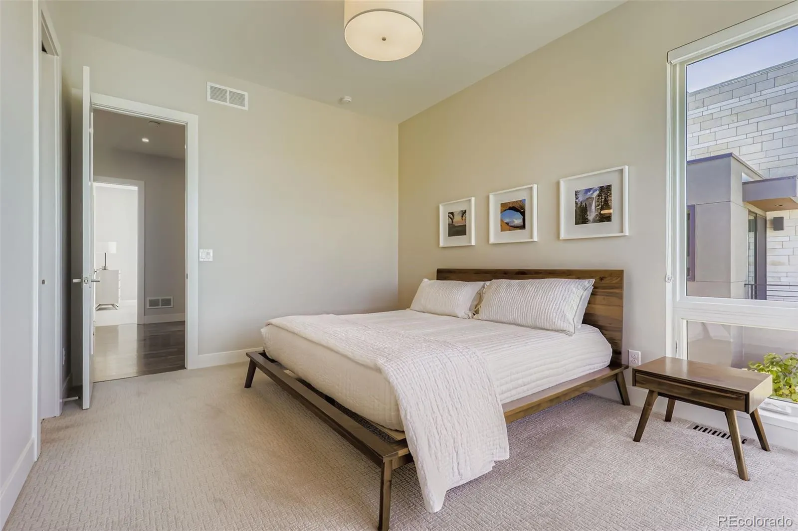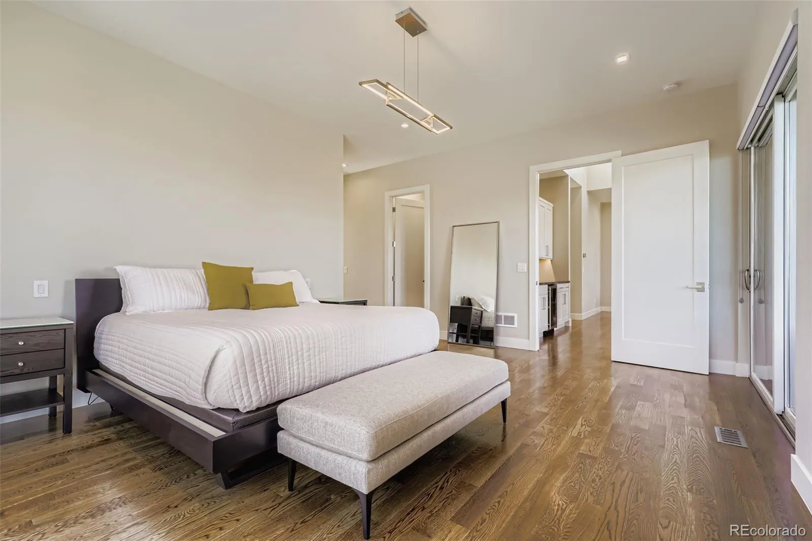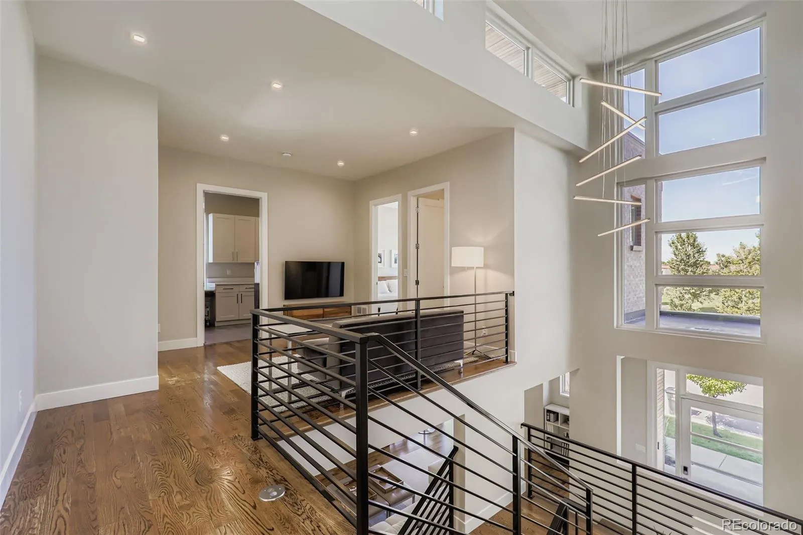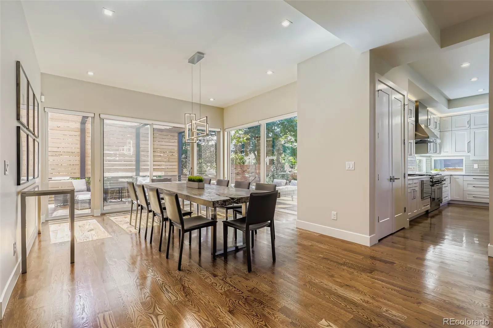 Exceptional opportunity to own an exquisite modern residence overlooking the park in the coveted Boulevard One community! This architecturally striking home features a thoughtfully designed open-concept main level with expansive living, dining, and kitchen spaces, ideal for both everyday living and elegant entertaining. A sun-filled dining room opens through walls of glass to generous rear decks for seamless indoor-outdoor enjoyment. A private study or bedroom with deck access and an adjacent bath, plus a well-appointed mudroom complete the main level. Gorgeous oak flooring and floating-tread stairs, and extensive designer finishes and glass elevate the home throughout. The upper level is anchored by a luxurious primary suite with direct access to a covered veranda offering a ceiling fan, A/V connections, and a gas fireplace with an auto screen and multi-colored lighting effects. The spa-inspired primary bath features heated floors, a steam shower and a vessel soaking tub. 3 additional bedrooms provide a jack-n-jill bath and a private ensuite, with oak flooring extending through the primary suite, halls, and fantastic loft/lounge area. The finished basement offers additional living space, an extra bedroom and bath, and ample storage. Designed for efficiency and modern living, the home boasts a HERS 40 rating, dual high-efficiency furnaces, central A/C, owned solar panels, and Andersen 100 series energy-efficient windows. Smart-home pre-wiring, fiber-optic connectivity, extensive audio wiring, and premium LED lighting enhance convenience and ambiance. Outdoors, enjoy fully landscaped grounds in addition to a pergola, sprinkler system, and lifelike, low-maintenance turf. Offering extraordinary value as a luxury alternative to Hilltop, Wash Park, and Cory-Merrill, this remarkable residence delivers exquisite modern elegance, unparalleled energy efficiency, and exceptional livability in one of Denver’s most desirable park-side settings!