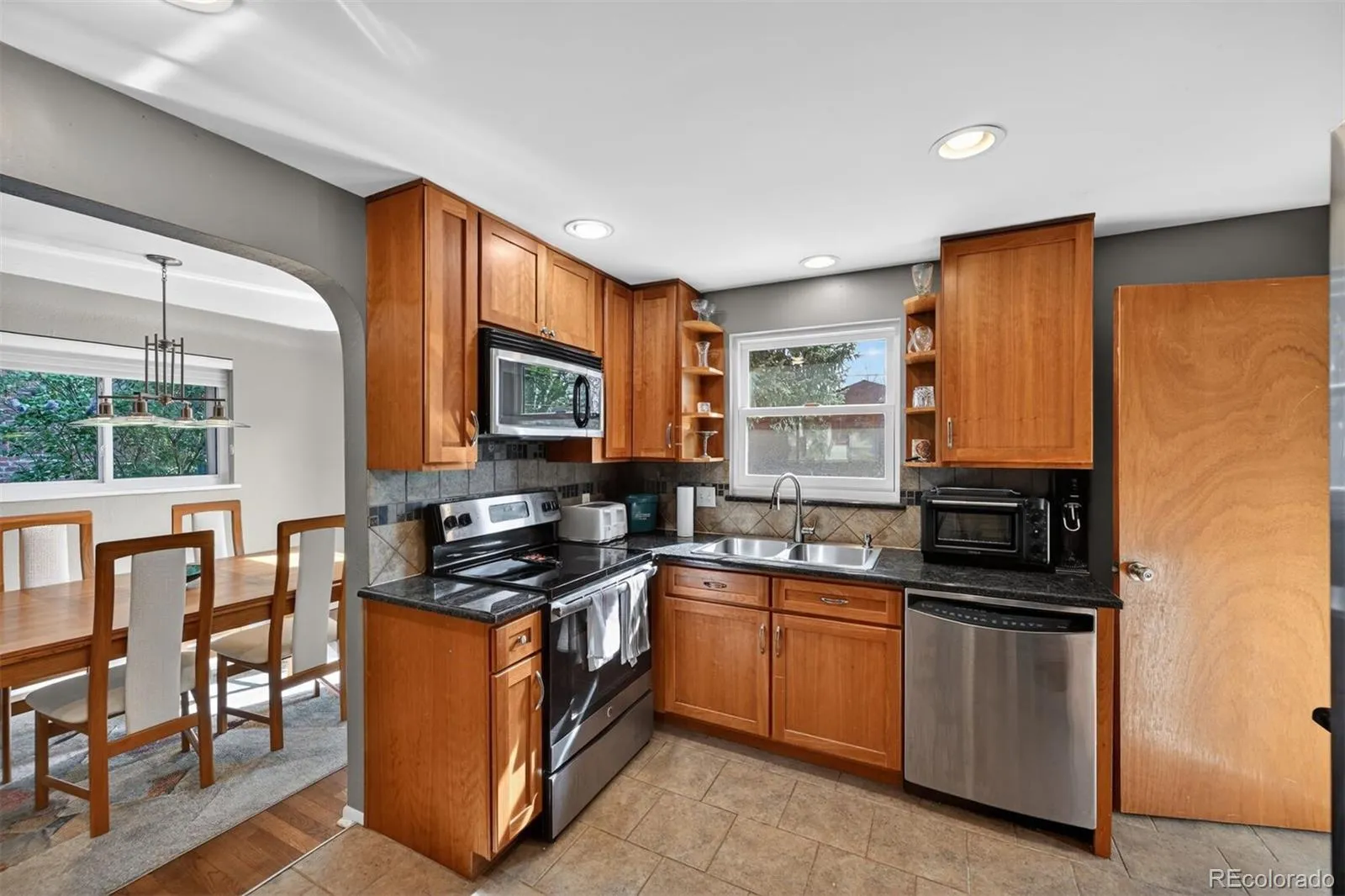 The main level features 2 bedrooms, a full bath, and a stunning kitchen with granite countertops, updated appliances, and abundant natural light from newer windows throughout.