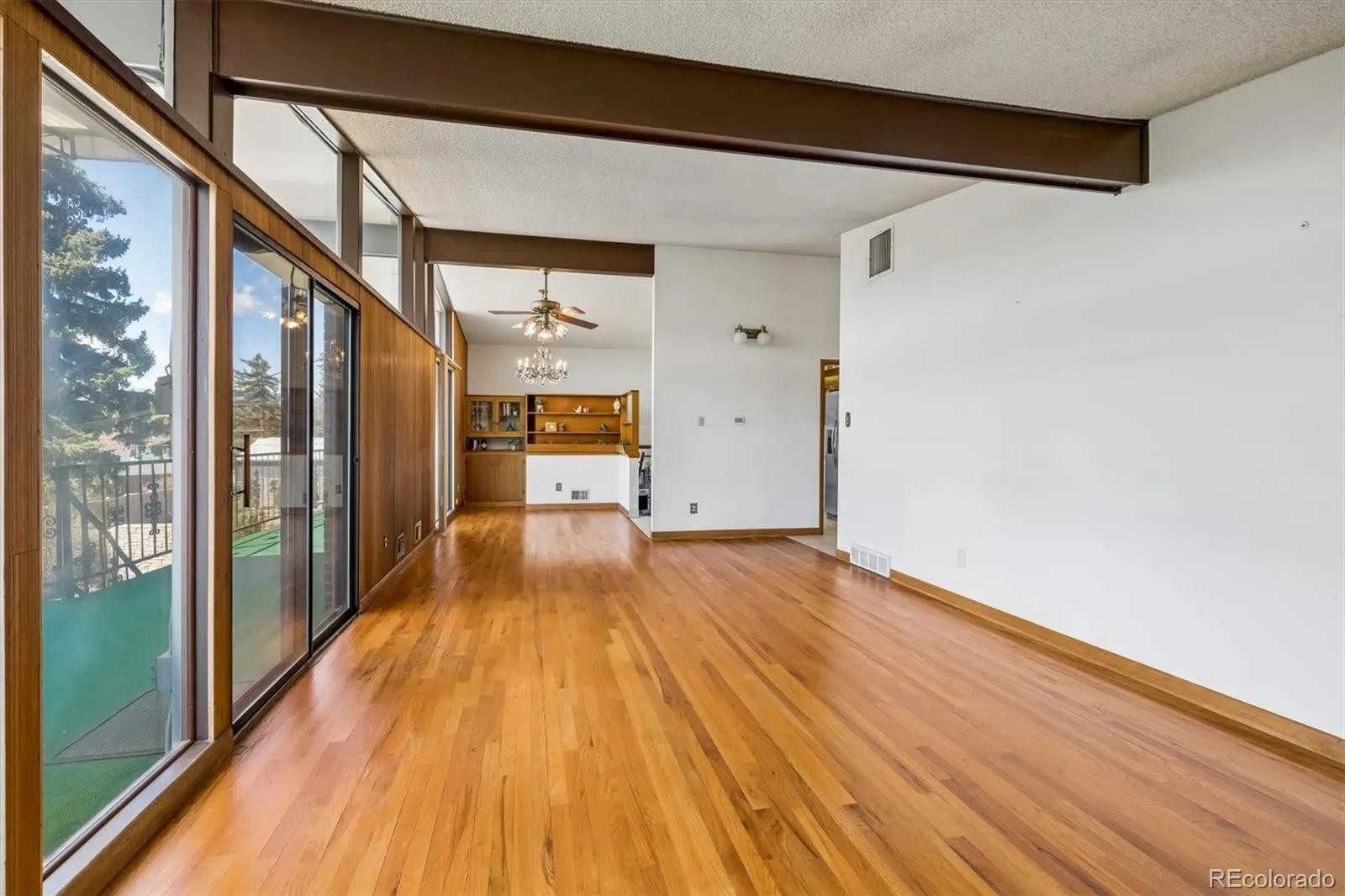 Classic Mid-Century Modern Home*Panoramic Mountain View from Back Covered Balcony*Original Main Level Hardwood Floors*Original Mahogany Trim, Doors & Paneling*Large Windows and Sliding Doors for Natural Light and Outdoor Views*Entryway Includes a Large Window over the Original Mahogany Door and the Original Chime Door Bell*Living Room Incorporates Natural Hardwood Floors*Stone & Brick Gas Fireplace*Sliding Door w/Panels & Transom Windows that Provide Abundant Natural Light*Vaulted Ceilings*The Original Hardwood Floors Extend into the Dining Room that Features Original Mahogany Paneling, Built-ins and Chandelier*Space for a Large Dining Table & Chairs*Spacious Kitchen with Detached/Moveable Island*Clerestory Windows for Privacy & Natural Light*Cabinets w/Pantry and Above Cabinet Lighting*All Bedrooms and Hallway on Main Level have Hardwood Floors Under the Carpet (like living & dining room)*Primary Bedroom has Vaulted Ceiling*Spacious Double Closets and Picture Windows*Geometric Tile Patterns Reflect the Timeless Elements of an Original Mid-Century Modern Bathroom*Basement Features a Full Kitchen w/Stove & Refrigerator*Walkout Basement*Enclosed Sunroom*Large Laundry Area*Original Brick Wood-burning Fireplace*Three Bedrooms (1 non-conforming for office/storage/exercise)*Oversize Garage w/Resurfaced Extended Driveway*Fully Fenced Backyard w/Covered Balcony & Lower Level Enclosed Sunroom*Staircase from Balcony to Lower Level Backyard*Sprinkler System (F&B)*Storage Shed*Space for Garden(s), Pool, Hot Tub, Firepit*New Roof 2017*New Furnace 2024*New Water Heater 2022*Water Line Replaced from House to Street*New Hail Resistant Cover on Balcony 2024