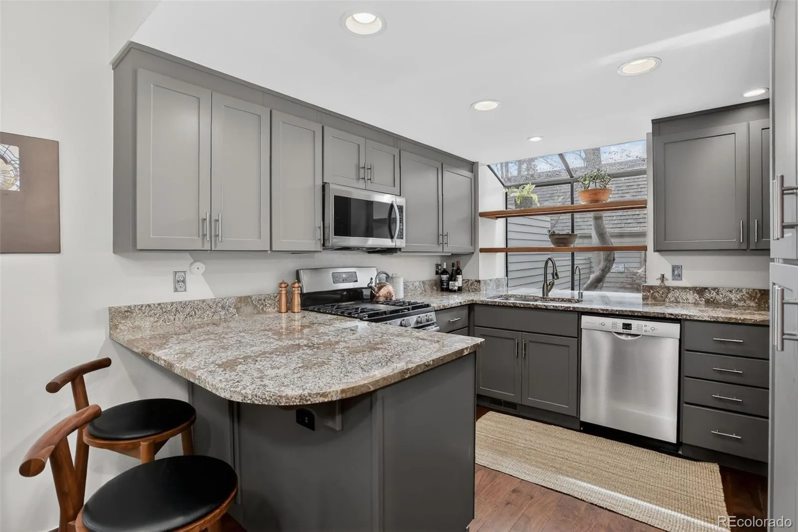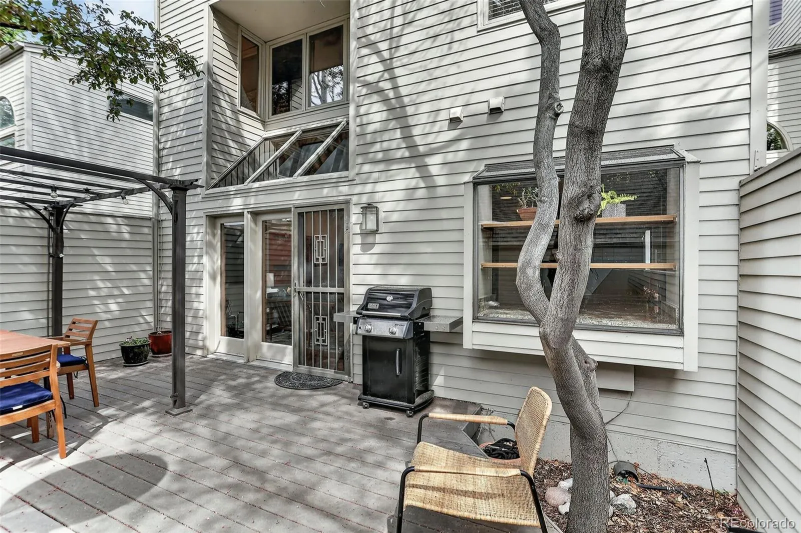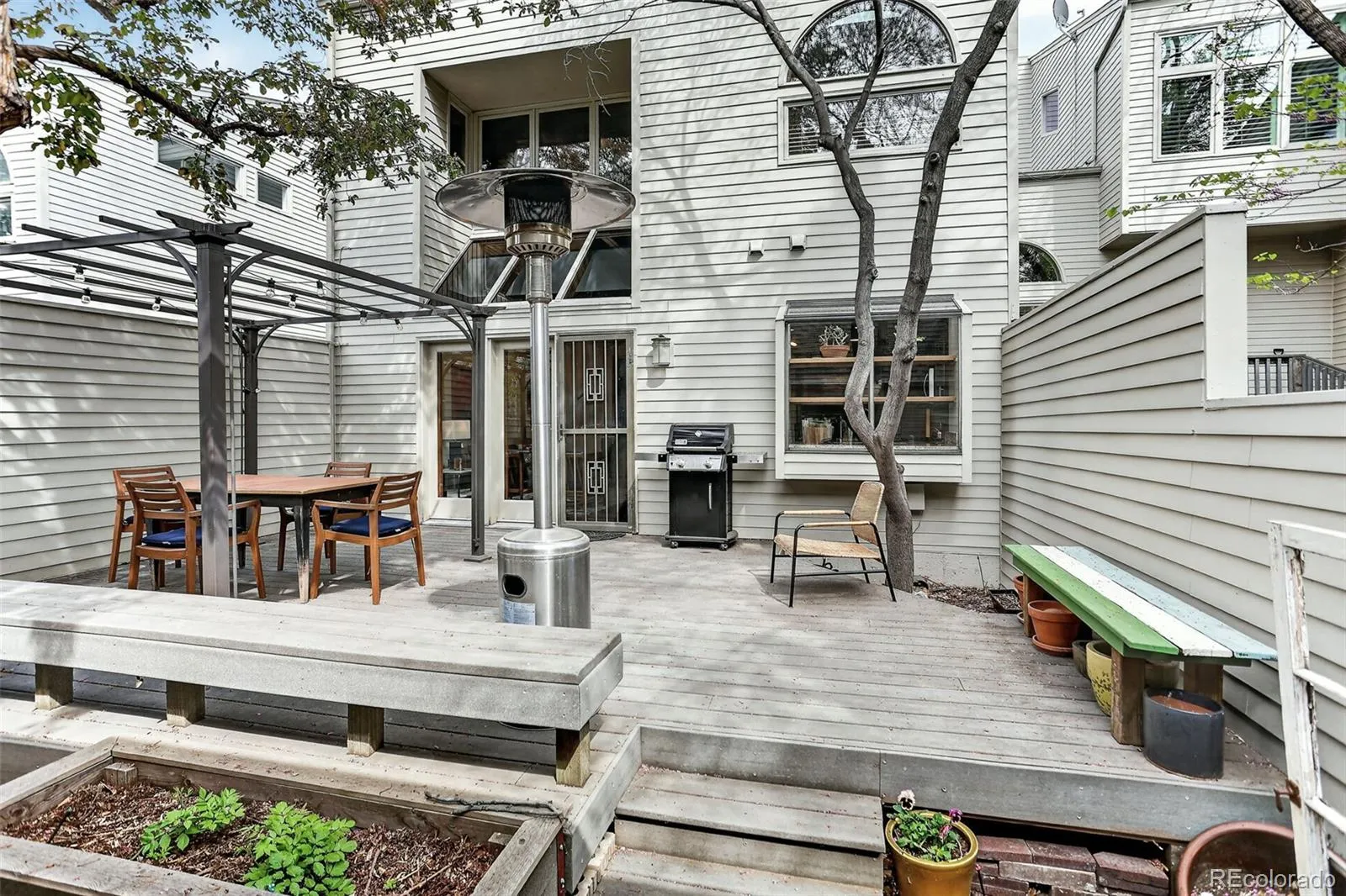Located in the distinctive Harrison Court enclave, this 3-bedroom, 4-bathroom townhome offers more than 2,000 square feet of thoughtfully designed living in the heart of Cherry Creek North. Each residence is arranged to reduce noise between neighbors by placing connection points in less-used areas rather than main gathering spaces. This results in a quieter, more private atmosphere that feels more like a detached home. Vaulted ceilings, skylights, and expansive windows fill the home with natural light, while hardwood floors and a gas fireplace create a warm, inviting atmosphere. The open main level features a flexible bedroom or home office and a beautifully updated kitchen with granite countertops, new shaker-style cabinetry, stainless steel appliances, and a generous counter top that flows seamlessly into the dining area – ideal for everyday living and entertaining. Upstairs, the spacious primary suite offers a walk-in closet and a spa-inspired bath with dual vanities, soaking tub, and separate shower. An additional bedroom with its own en-suite bath provides privacy and comfort for guests or family. The finished lower level provides versatile space for a media room, home gym, or guest retreat. Enjoy a private deck and patio in the backyard, along with a front yard that adds even more opportunity for outdoor living and relaxation. The home also features a secure oversized two-car garage with alley access and additional storage, along with a new furnace and heat pump that enhance overall comfort and efficiency. Just blocks from Cherry Creek’s renowned shopping, dining, and nearby parks, this low-maintenance residence combines privacy, thoughtful design, and exceptional value in one of Denver’s most sought-after neighborhoods.