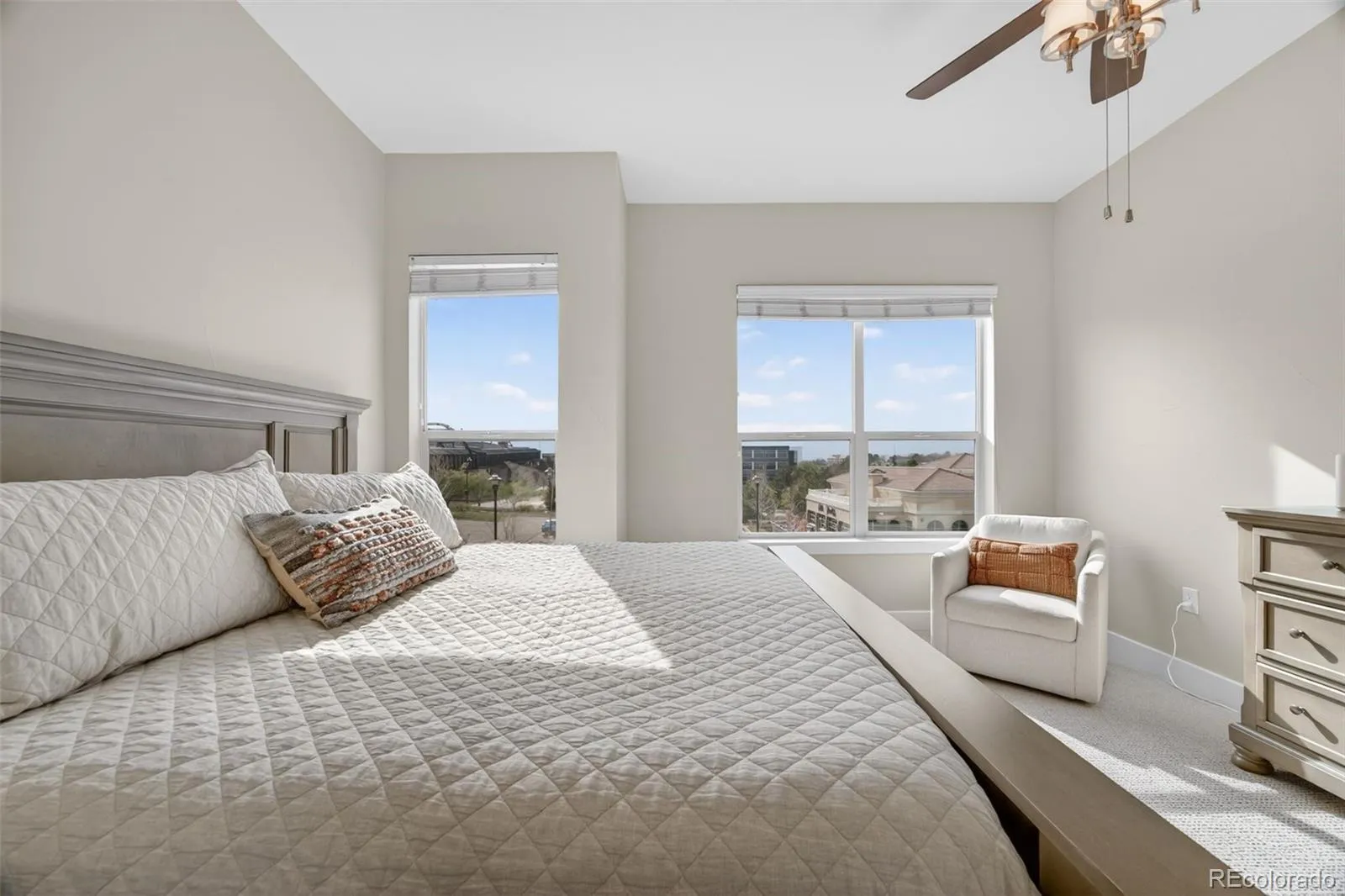 Welcome to the BEST OF THE BUILDING-Vallagio at Inverness where premier location, unmatched privacy, and exceptional value come together in one truly standout residence.This beautifully maintained two-bedroom, two-bath condo currently used as the owner’s second home has been lightly lived in and feels like new. It stands as one of the most desirable residences distinguished by its unique positioning,rare features,and elevated loft design. At the heart of the home is an expansive wraparound terrace spanning two sides,creating a seamless indoor-outdoor lifestyle and offering sweeping mountain views of Colorado’s Front Range paired with unforgettable sunsets. This residence enjoys a near-private elevator/entry experience,providing a level of convenience,security, and exclusivity.Inside a distinctive upgraded entry welcomes you with a striking brick hallway & exposed venting,delivering a sophisticated,loft-inspired aesthetic.Open-concept layout is functional & refined,featuring a dedicated dining area,beautiful fireplace,updated lighting,new carpet/paint.Chef’s kitchen includes an oversized island w/seating,stainless steel appliances,ample cabinetry,granite countertops-ideal for entertaining/casual meals.A 75-inch smart TV is included! Spacious primary suite serves as a private retreat,offering a walk-in closet,additional linen storage,a luxurious en-suite bath with dual vanity vessel-style sinks & oversized walk-in shower.The second bedroom features a generous walk-in closet,access to a five-piece bath w/dual vanities & relaxing jetted soaking tub/shower.Dedicated laundry room with full-size, side-by-side washer and dryer (included).Further setting this residence apart are 2 of the best oversized parking spaces in P2, ideally located just steps from the elevator & two large private storage units. Moments to Inverness Golf Course, this home offers immediate access to light rail across the footbridge,connectivity to I-25, and a vibrant mix of dining,fitness, & retail.