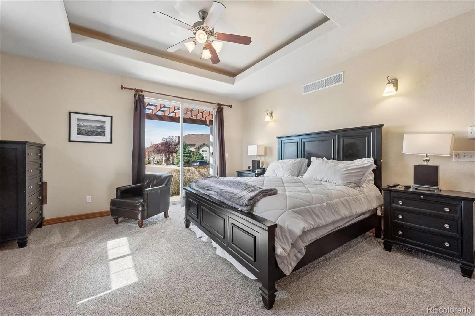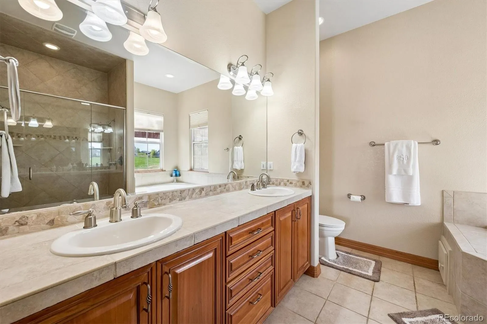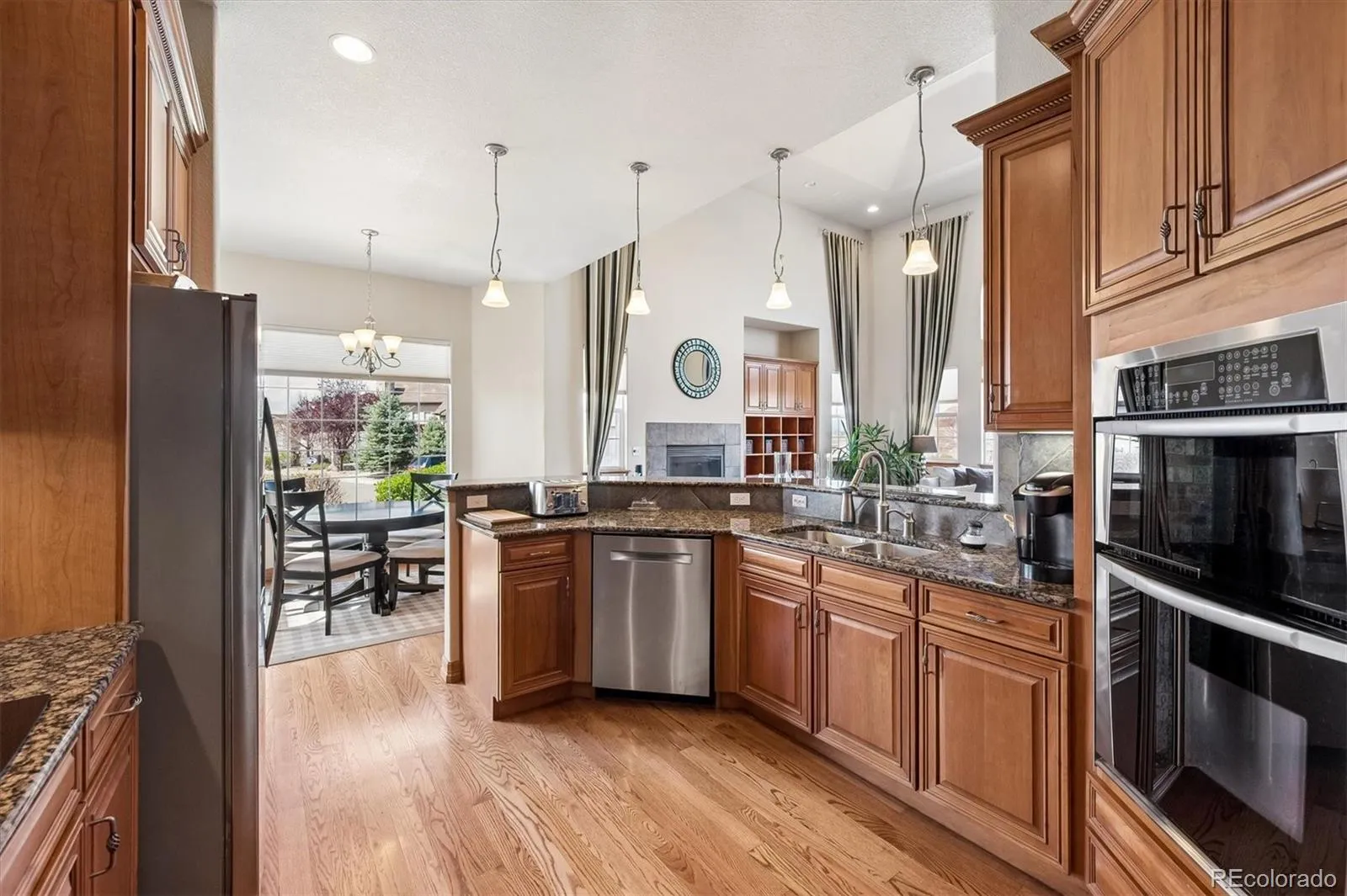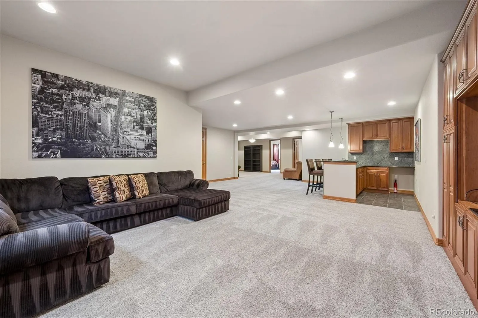 Welcome home to incredible sunset and mountain views from this zero-maintenance patio home situated on a premium lot backing to Buffalo Run golf course in the gated community of The Fairways at Buffalo Run. This former model ranch home offers an expansive open floor plan with stunning hardwood floors, new carpet (2025), and abundant natural light. The high ceilings and fresh paint seamlessly tie together the main living spaces. Enjoy preparing a meal in the well-appointed kitchen featuring granite counters, cherry cabinetry, an island with barstool seating, and a built-in pantry with pull-out drawers. Enjoy cozying up by the fireplace on cool Colorado evenings, hosting dinner parties in the formal dining room, or stepping outside to the large patio. Sip your morning coffee under the pergola while taking in the striking views. The main floor primary suite includes access to the patio, a sizeable walk-in closet, and a 5-piece ensuite bath. Descend to the finished lower level for additional living and entertaining space. A spacious family room with a custom wet bar is perfect for movie nights or watching the big game. Two generously sized secondary bedrooms, a full bath, and a custom wine cellar round out the lower level. Additional features of this turnkey residence include a new roof (2022), new HVAC & water heater (2023), and an attached 2-car finished garage. The gated community of The Fairways is ideally located near dining, shopping, major roadways, and easy access to Buffalo Run golf course.