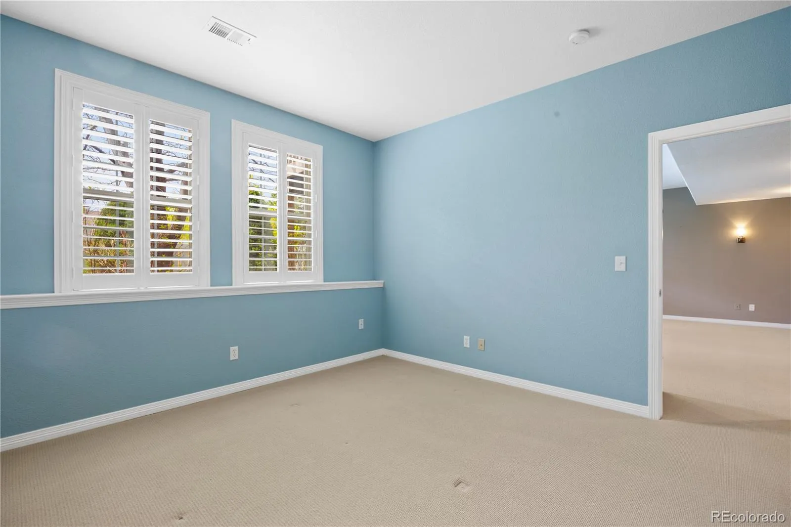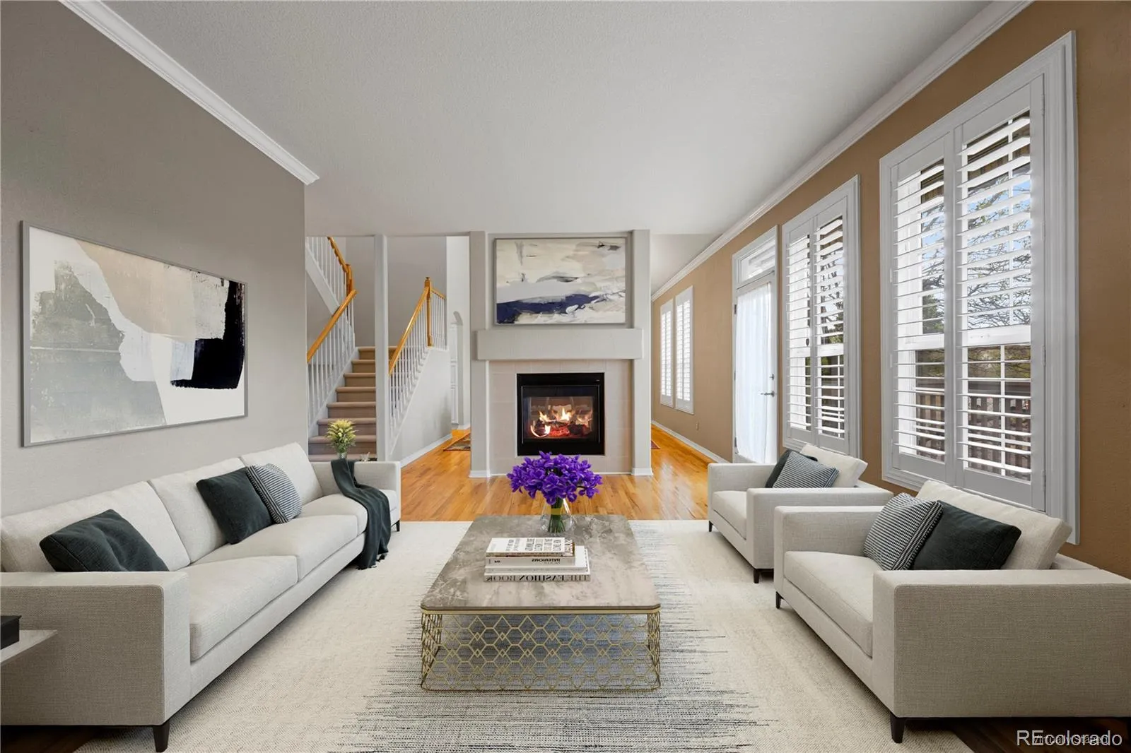 Welcome to the exclusive Fairways at Lone Tree. This townhome is incredibly spacious and well maintained, with three outdoor entertaining areas. The large eat-in kitchen has new granite counters, tons of cabinets and an island with seating. It also opens to a front patio for convenient outdoor entertaining and BBQ-ing. The main floor living and dining area are separated by a see-through fireplace, 2-story ceilings and access to a deck with awning to enjoy the outside. A main floor office with custom built-in shelving and walk-in closet can serve as another bedroom. Hardwood floors spread throughout the main floor along with custom plantation shutters that shower the rooms with natural light when open. The upstairs primary suite has an en-suite 5 piece bath, large walk-in closet and custom Roman shades. A second upstairs bedroom also has an en-suite bath. The updated walk-out basement has a second living area with a beautiful tumbled stone fireplace, a 3rd bedroom, 3/4 bath and large laundry room with utility sink. A shaded patio area and an oversized storage/utility room completes the space. Ideally located close to Park Meadows shopping and dining, parks/playgrounds, walking trails, recreational facilities with pools, tennis courts, the wonderful Lone Tree Hotel, the enjoyable Lone Tree Golf Course (resident discounts applied) and quick access to I-25 for easy commuting. This home truly offers the best of comfort, convenience, and scenery.