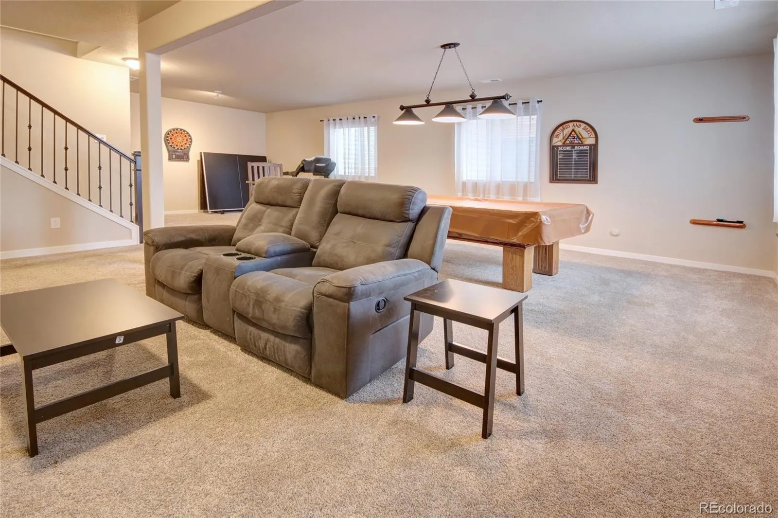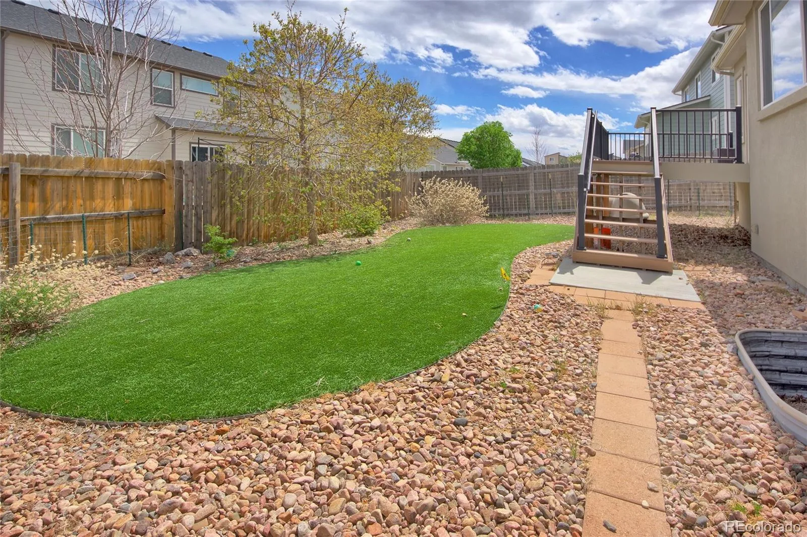 Awesome ranch features gourmet kitchen with granite counter tops, 42″ designer cabinetry and hardware, gas range/oven, 4 stainless steel appliance package, counter bar, eat in nook, and huge pantry. This one owner property has an open flowing floor plan and provides lots of natural light as well as tons of storage, and custom blinds throughout. Other home offerings are master bathroom barn door entry and expanded spa walk in shower, a/c, living room gas fireplace with remote and elegant mantle, basement finish with extra high ceilings, and close proximity to parks, trails, restaurants, and shopping. Curbside appeal with mature landscaping and rocking chair front covered porch welcomes you…low maintenance living with stucco/stone siding and artificial grass/xeriscape allowing you to enjoy life, makes you want to stay…welcome home.