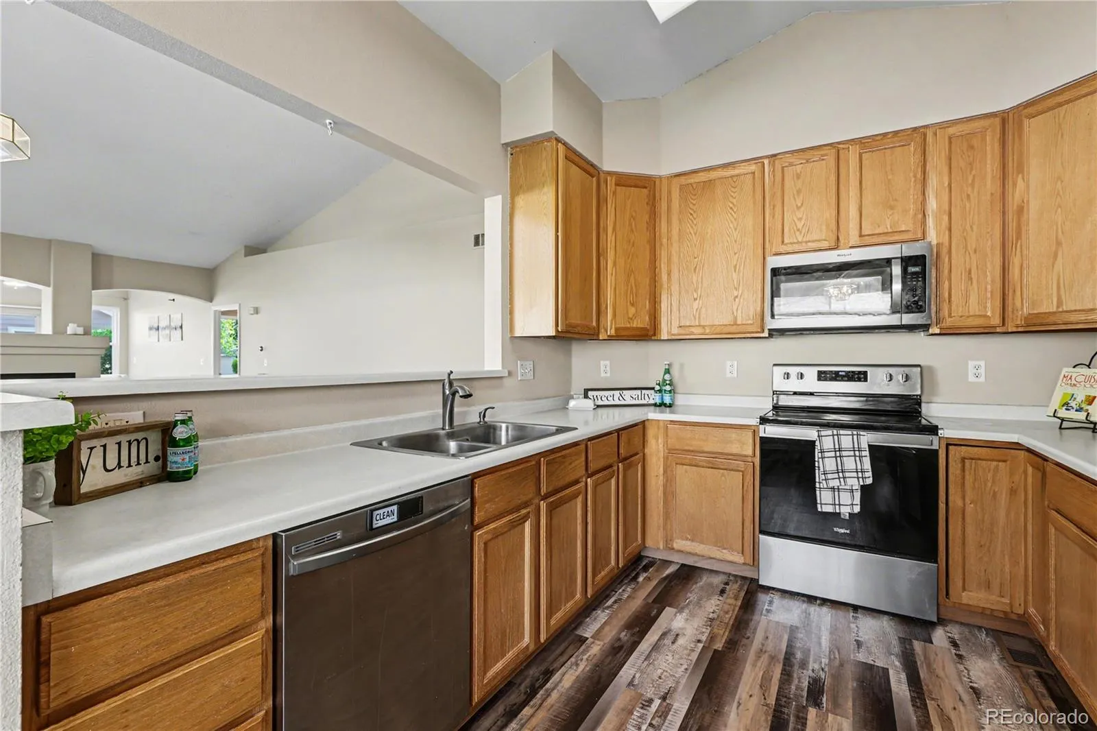 Ideally located near parks, scenic trails, open space, and Ralston Creek Trail, this highly sought-after neighborhood blends peaceful surroundings with easy access to shopping and dining. Inside, the main floor welcomes you with an open, light-filled layout featuring vaulted ceilings, a cozy gas fireplace, newer carpet with upgraded padding, and durable LVP flooring in the kitchen and bathrooms.