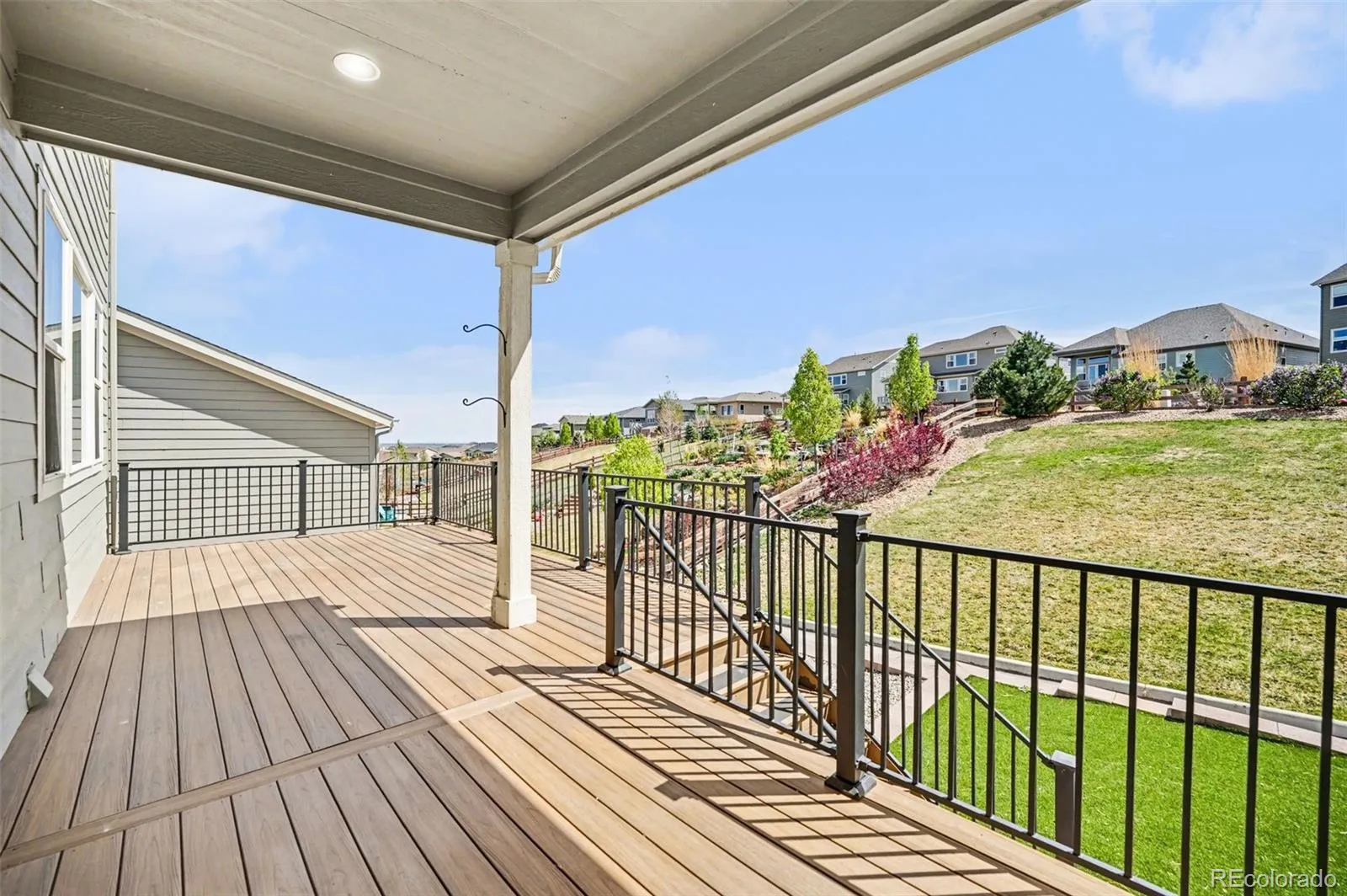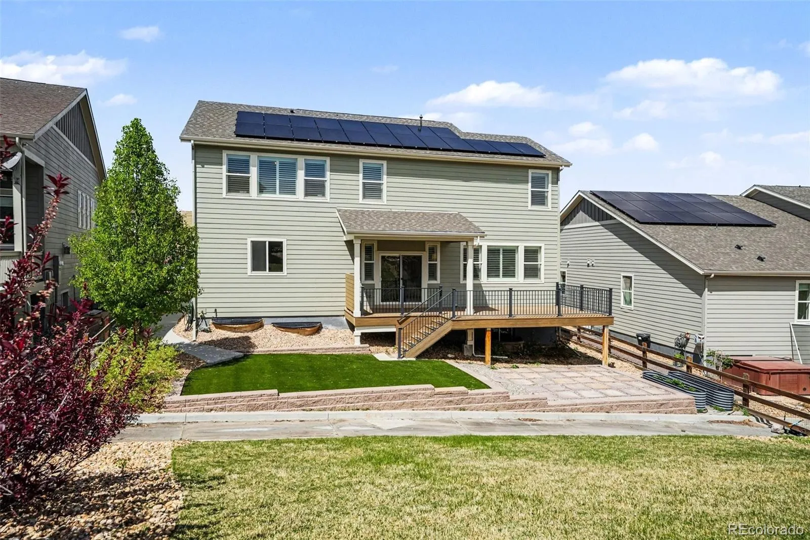 Welcome to this stunning and energy-efficient 4-bedroom, 3-bathroom home located in the Candelas master-planned community. Set on a quiet street just steps from open space and scenic walking trails, this home offers the perfect blend of comfort, style, and convenience. Inside, you’ll love the spacious open floor plan with updated finishes throughout. The main level features a bright and airy living room with custom built-in shelving, a new gas fireplace, and plantation shutters on windows throughout the home. The modern kitchen includes a beautiful new pantry and plenty of space to gather and entertain. A dedicated home office with French doors provides the ideal work-from-home setup. All four bedrooms are located upstairs and feature brand new carpet. A luxurious primary suite awaits you with an en suite bathroom featuring dual, separate vanities, a large walk-in closet, and a walk-in shower. Each secondary bedroom includes generous closet space. A full bathroom with dual sinks and an oversized tub completes the upper level. The convenient upstairs laundry room adds ease to daily living. The full size basement has been partially finished with new drywall and stubbed and ready for your finishing touches. Step outside to your private backyard retreat, thoughtfully designed with a new Trex deck, paver patio, raised beds, large lawn, and low-maintenance astroturf area. Enjoy outdoor living year-round with front and back sprinklers and stylish Jellyfish lighting for ambiance and holiday displays. This green, energy-efficient home also features fully paid-off solar panels and a 3-car garage. Enjoy resort-style amenities including a clubhouse, fitness center, pools, tennis courts, playgrounds, and a community garden. You’re just minutes from local favorites like ice cream shops, coffee cafes, gyms, and more. Don’t miss this opportunity to own a move-in ready home in this amazing neighborhood!