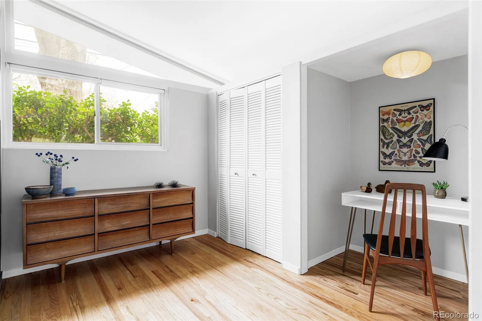 Live life better in a Cliff May! Located in the heart of Harvey Park, this is one of 170 pre-fab Cliff May homes built by Burns Construction and designed by Cliff May and Chris Choate. This residence maintains much of its original architectural integrity while offering key updates for today’s lifestyle. A brand-new modified bitumen roof was installed last month, and the original hardwood floors were just beautifully refinished. Signature mid-century modern elements shine throughout, including floor-to-ceiling windows, vaulted ceilings with uplighting to highlight the architectural features, and the iconic private courtyard that serves as an outdoor living room. On the exterior, mature landscaping and a built-in firepit area enhance your outdoor living experience while the original cedar board and batten siding complete the Cliff May aesthetic. The open-concept floor plan maximizes functionality with no wasted space. The kitchen features GE Artistry appliances that complement the home’s vintage character, while the bathroom has been refreshed with a new vanity and updated tile. Ideally located just minutes from Old South Pearl Street, South Broadway, Bear Creek, and Red Rocks Amphitheatre, this home offers a unique blend of architectural significance, comfort, and convenience. Move-in ready and full of character, experience the indoor-outdoor connection for yourself. Full photos coming on Thursday!