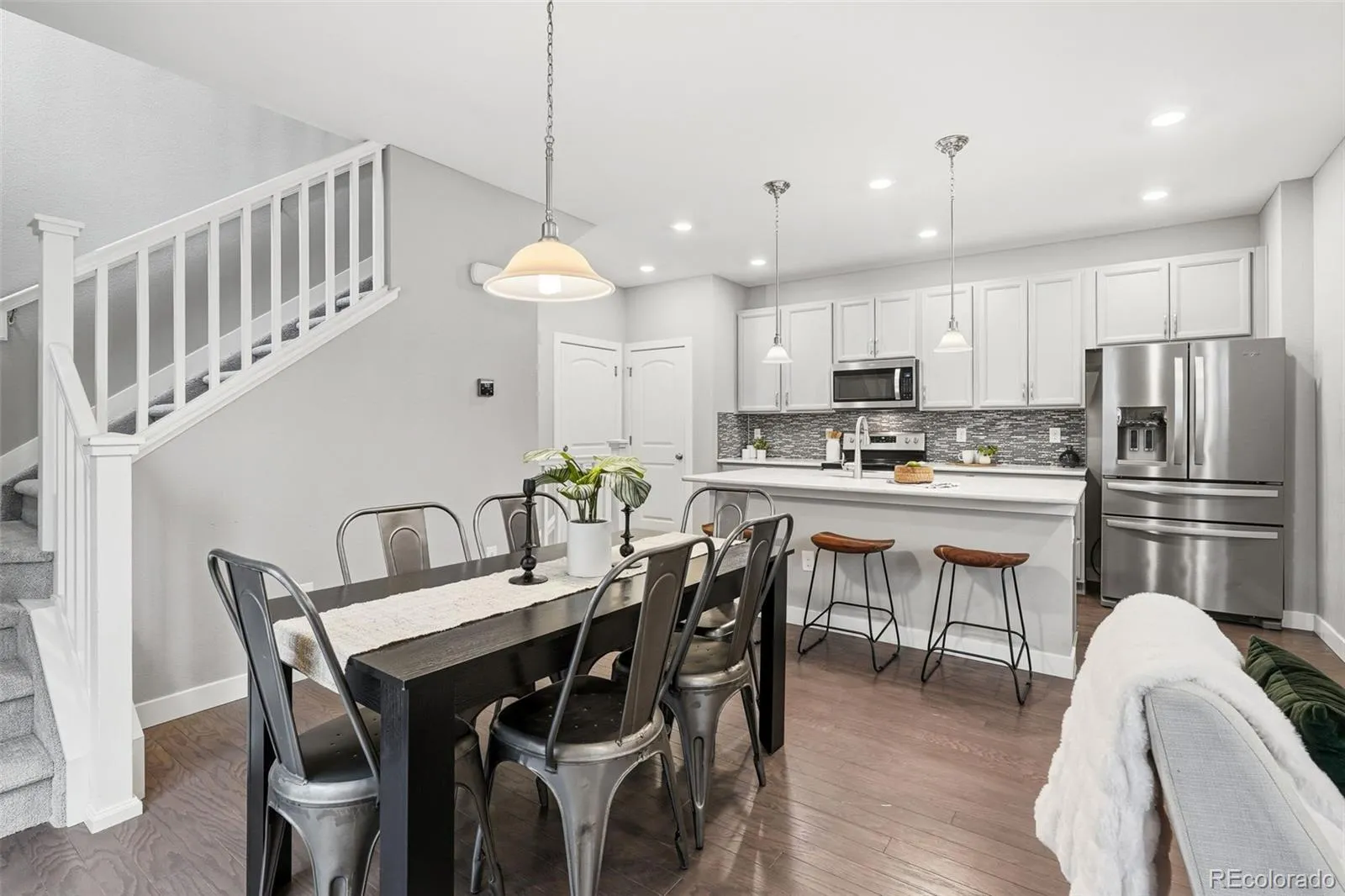 Welcome to this beautifully designed home in Stratus at Eagle Bend, offering 4 bedrooms, 4 bathrooms, and over 2,300 square feet of comfortable living space. Enter inside to an open floor plan filled with natural light and gorgeous wood flooring. The kitchen is perfect for both everyday living and entertaining, featuring a large slab island, stainless steel appliances, a spacious pantry, and ample storage. Upstairs, you’ll find three bedrooms, including a spacious primary suite with a private en suite bathroom, along with a versatile loft—ideal for a home office or flex space. The finished basement provides additional living space, complete with a bedroom and bathroom, making it perfect for guests or added privacy. This home also includes a newer $20,000 solar system, helping offset energy costs and improve efficiency. Outside, enjoy a private side yard—perfect for relaxing Colorado evenings. The oversized two-car garage offers plenty of extra storage. Located in the desirable Eagle Bend area, you’re close to parks, golf, trails, shopping, and have easy access to Southlands and major commuter routes. This home offers space, comfort, and value—you’ll feel right at home the moment you walk in.