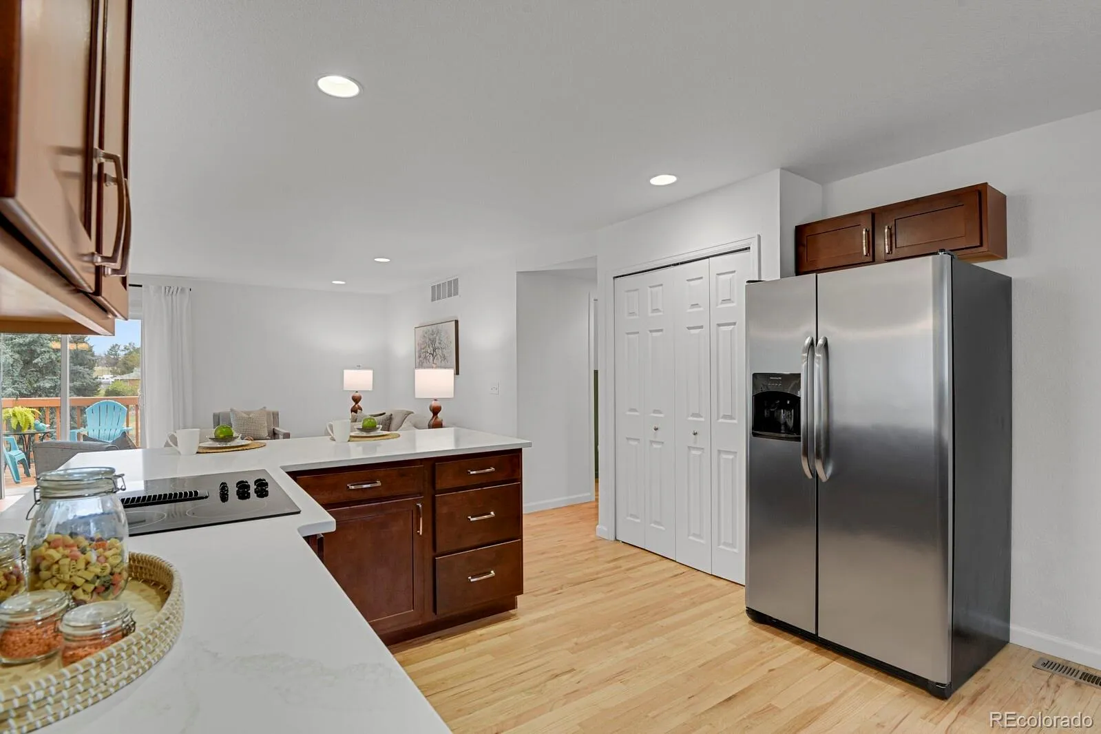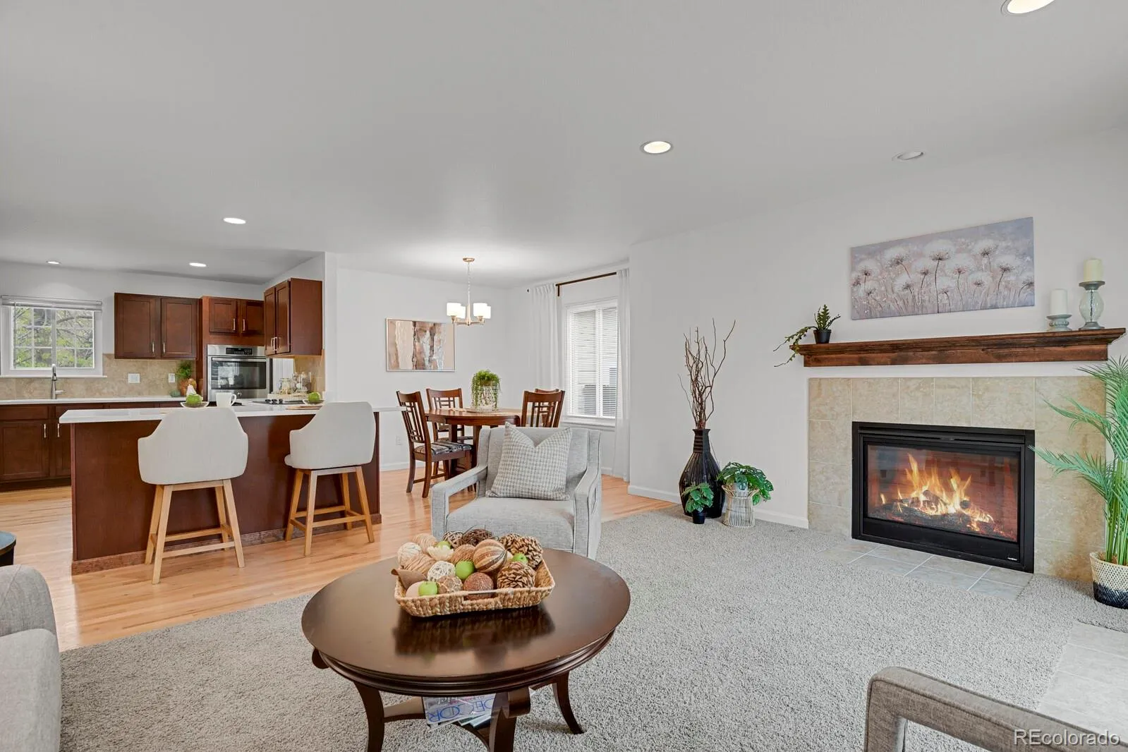 WELCOME HOME – MAIN FLOOR PRIMARY + WALK-OUT BASEMENT + HIDDEN THEATER ROOM Updated 4 bed, 4 bath single family home. TWO-CAR ATTACHED PAIRED GARAGE (one shared wall). NO SHARED INTERIOR WALLS IN HOME —quiet and private. Located on a cul-de-sac with brand-new driveway, close to shopping, dining, RTD, Cherry Creek Schools, only minutes away from Cherry Creek Reservoir. This home offers perfect balance of lifestyle and convenience. Nearly 3,000 finished square feet, move in ready. DRAMATIC 2-story entry with vaulted ceilings and flexible living room or office space. Heart of the home is the open-concept kitchen, dining room and family room with gas fireplace – access to a large deck—perfect for relaxing or entertaining. Kitchen features new quartz counters, large breakfast bar perfect for casual meals or coffee. You will love the large pantry. RARE main-floor primary suite with VAULTED ceilings, walk-in-closet, ensuite bath, direct deck access creating the perfect spot for your morning coffee. Laundry and powder room complete the main level and add convenience for everyday use. Upstairs offers 2 spacious bedrooms, full bath (with direct access from one bedroom) ideal for guests and family. Landing offers 2 large storage closets which adds to the functionality of this floor. Finished walk-out basement includes family/game room, 4th bedroom, 4th bath, access to private yard with no rear neighbors. A standout feature is the HIDDEN BONUS THEATER ROOM – extra soundproofing was added in ceiling and walls along with pre-wire for speakers and a projector – a perfect spot for immersive movie nights. Brand new Radon Mitigation system installed in December 2025. Seller is offering a 1 YEAR HOME WARRANTY. A perfect home for multi-generational living.