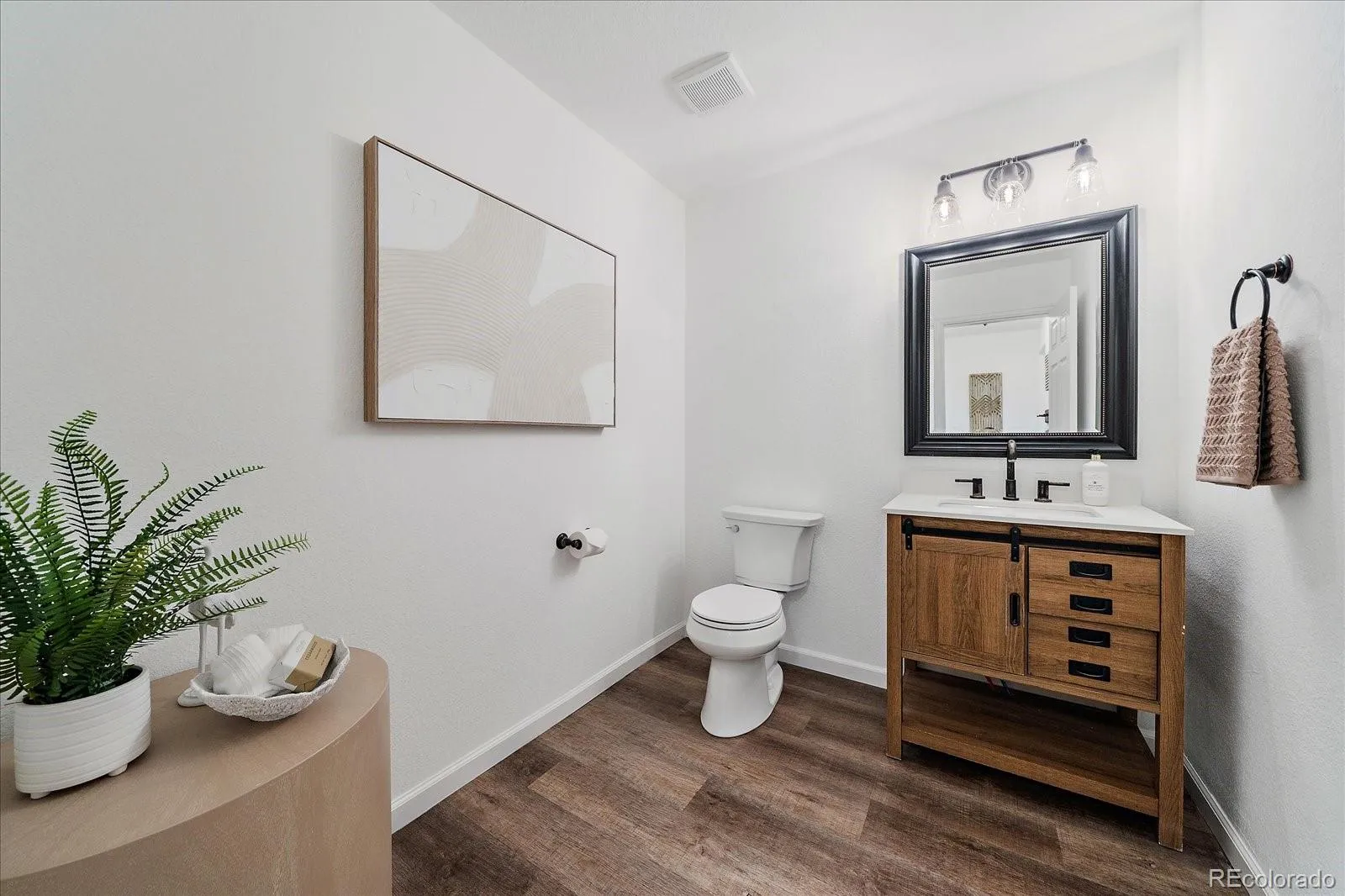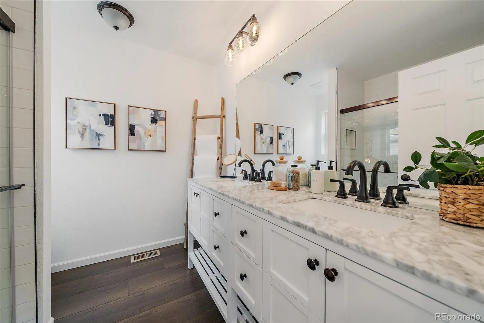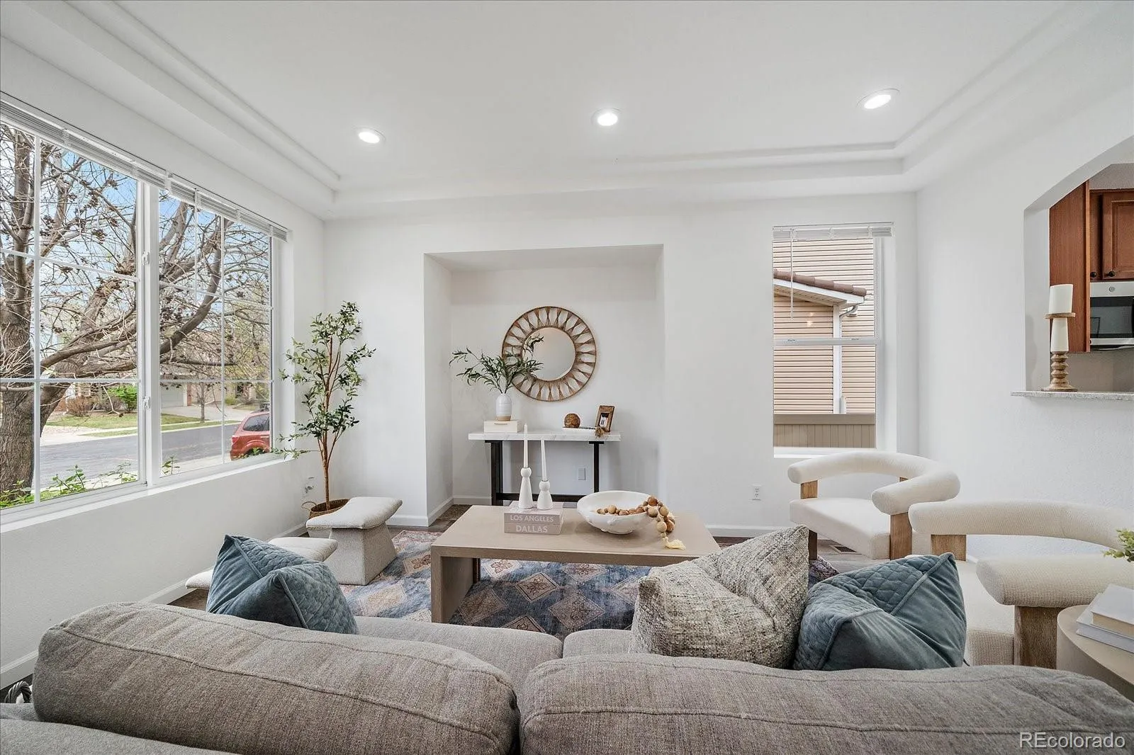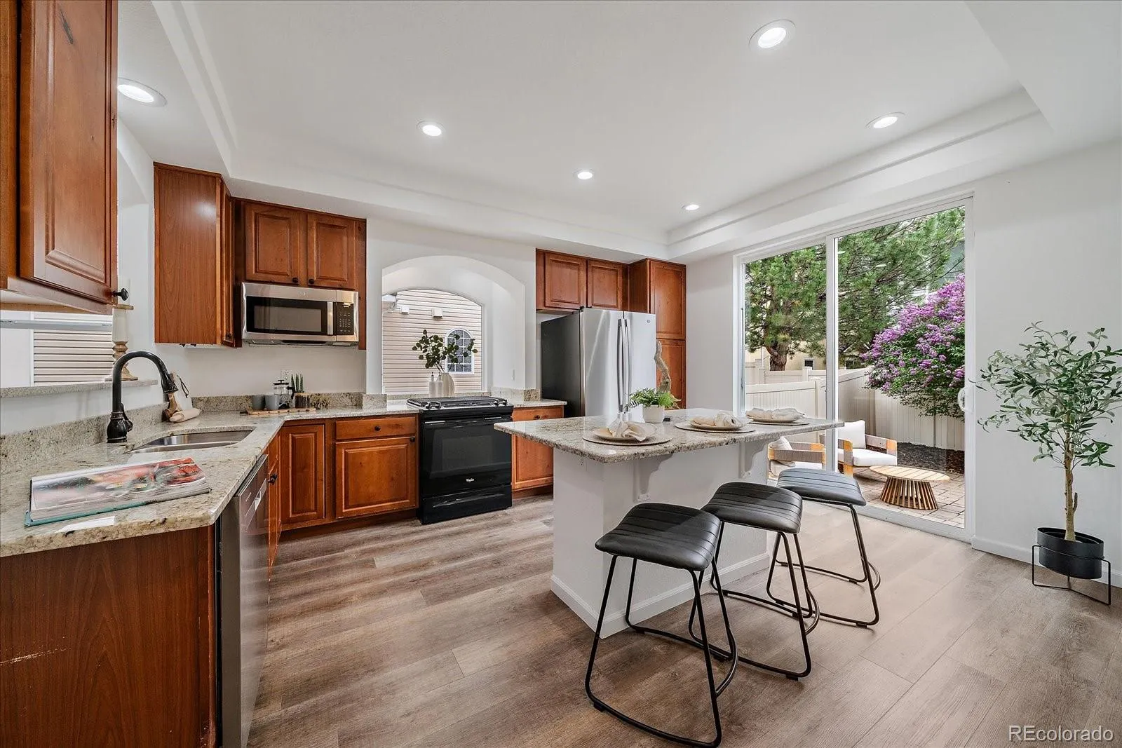 This light, bright, move-in ready home offers thoughtful updates throughout & a desirable, flexible floorplan. Charming arched openings, tray ceilings, & upgraded LED lighting are featured throughout the main level, adding character to the open layout. The kitchen has granite countertops, new SS appliances, a gas range, large island with countertop seating, & ample cabinet space. The open pass-through wall creates a spacious & connected feel to the living room while keeping the kitchen sink & surfaces out of direct view. On the main level there is also a large bathroom with newer vanity & the laundry room with new washer & dryer. Upstairs, there are 2 bedrooms & 2 renovated bathrooms, plus a flex room with a solid wood barn door-giving you the option for a 3rd bedroom, home office, or hobby room. The primary suite has a vaulted ceiling, upgraded lighting, walk-in closet, & en-suite bathroom w/ dual sinks, shower with stylish glass enclosure, matte black fixtures & accents, & tiled walls. The versatile lower level showcases huge windows, new carpet & padding, closet space with built-ins, & 3/4 bathroom, making it ideal for a private guest suite or 4th bedroom – countless possibilities for its use. Central a/c, fresh paint, and newer furnace, water heater, appliances, & engineered hardwood flooring are all additional bonuses. The fully-fenced backyard w/ paver patio just outside the sliding door provides for the perfect blend of indoor/outdoor entertaining. New sod just two years ago. Enjoy a friendly community lifestyle w/ access to parks, trails, 2 pools, 18-hole disc golf course, clubhouse, & fitness center. Riverview PK-8 is located in the community & within walking distance. Thompson River Ranch is conveniently located near coffee shops, restaurants, & great shopping in every direction, w/ unbeatable proximity to I-25 & Hwy 34 to get just about anywhere. Living here means you truly get to enjoy all that Johnstown, Loveland, Ft Collins, & Berthoud have to offer.